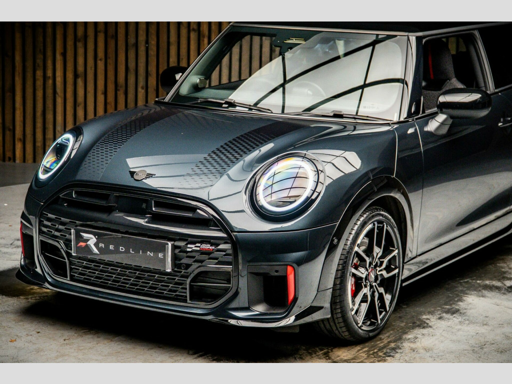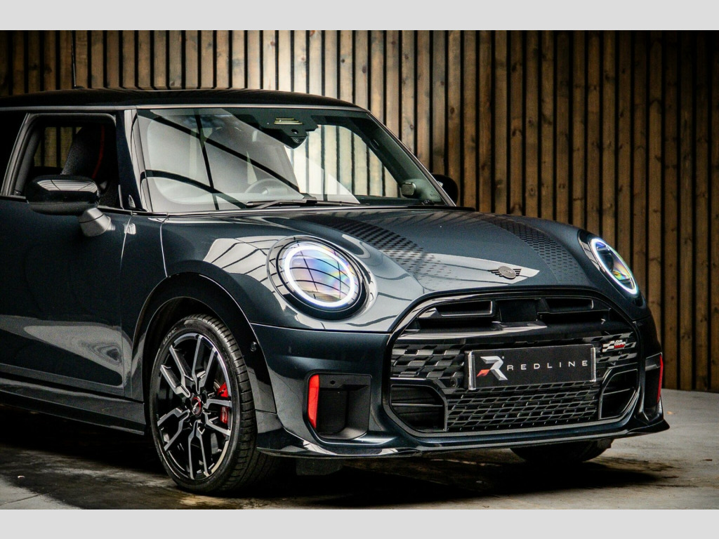 This 2025 MINI Cooper John Cooper Works is a superb example of performance and style. Powered by a potent 2.0 litre petrol engine, this Euro 6 compliant model delivers exhilarating driving dynamics. Its John Cooper Works trim ensures a sporty aesthetic and enhanced driving experience. Key features include a comprehensive Level 2 Pack, offering a Head Up Display, LED headlights, convenient Keyless Entry, a fixed Panoramic Sunroof, heated seats for comfort, and Wireless Phone Charging. Additionally, it boasts automatic air conditioning with climate control, a premium Harman Kardon sound system, and the Level 1 Pack which also includes a Head Up Display, LED headlights, Keyless Entry, heated seats, and Wireless Phone Charging.The performance of this MINI Cooper John Cooper Works truly sets it apart. Its impressive acceleration from 0 to 62 miles per hour in just 6.1 seconds demonstrates its dynamic capabilities, offering a more engaging drive compared to many other vehicles in its class. The inclusion of LED headlights ensures excellent visibility, while the Head Up Display keeps essential information within your line of sight, contributing to a safer and more focused driving experience.. 17in Alloy Wheels - JCW Sprint Spoke, 60-40 Rear Seat Bench, Adaptive Suspension, Air Conditioning - Automatic, Black Lower Band in High Gloss, Black-Red Decorative Dash Strap, Central Exhaust Tailpipe, Circular OLED Screen, Cruise Control - DCC, DAB Digital Radio, Dark Headliner, Dashboard Knit - JCW - Black - Red, Driving Assistant, Floor Mats, Front Armrest, Front ISOFIX - iSize, Front and Rear Apron, Harman Kardon, Headlights - LED, Heated Steering Wheel, High Gloss Hexagonal Patterned Grill Surround, JCW Experience Mode, JCW Sport Brake, Level 1 Pack, Lidded Storage Box in Black-Red Knit, MINI Navigation System, Parking Assistant, Partially Perforated Vescin Steering Wheel with Red Accents - Decorative Strap Black-Red, Pedals - Stainless Steel, Personal E-Sim, Rear Spoiler with Airblades, Rear View Camera, Red Brake Callipers, Shift Paddles on Steering Wheel, Steptronic Sport Transmission, Level 2 Pack, 18in Alloy Wheels - JCW Lap Spoke 2-Tone, Vescin-Cord Combination - JCW Black.