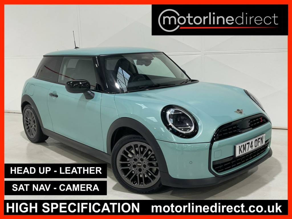FINANCE & PART EXCHANGE AVAILABLE* - Only 8,554 miles from new, 2 KEYS - this superb NEW MODEL MINI COOPER-S AUTOMATIC is finished in stunning sports Ocean Wave Green & is complimented with contrasting 1/2 leather sports trim and extends itself to the following additional features - Mini Cooper S Sports styling, head up display, on board satellite navigation system, reverse camera, wireless phone charger, dual zone climate control / automatic air conditioning, trip computer, cruise control with speed limiter, heated leather trimmed multi function steering wheel, front & rear park distance control, driver & passenger heated front seats, Bluetooth telephone prep, DAB digital radio, media input, Apple CarPlay / Android Auto, voice command, weather, Alexa, keyless entry & start, start / stop, MINI experience modes, speed limit warning, privacy glass, lane depart warning, ambient lighting, electric adjustable & folding exterior mirrors, LED auto headlights, rain sensor, power assisted steering, abs, airbags, electric windows, remote central locking, head restraints, MINI sports alloy wheels, MINI anti theft system. ***FINANCE AVAILABLE - subject to status. T&C's apply.***PART EXCHANGE AVAILABLE***ALL VEHICLES ARE HPI & NATIONAL MILEAGE REGISTER CHECKED***THE AA WARRANTY IS SUBJECT TO TERMS & CONDITIONS AND DOES NOT COVER VEHICLES THAT ARE BEING USED FOR TAXI, PRIVATE HIRE, CHAUFFEURING PURPOSES OR FOR REWARD.***Please note, that the specifications/components/features etc. are generic to that vehicle of the type advertised but may not be included in the specific vehicle that is for sale. It is for the intended purchaser to satisfy themselves of the presence or absence of any specifications/components/features before sale. Please ask if you are uncertain of anything and we will see if we can assist.. 17in Alloy Wheels - U Spoke Dark Grey, Adaptable Light Signatures, Air Conditioning - Automatic, Airbags - Driver, Airbags - Front Passenger, Anti-Lock Braking System - ABS, Circular OLED Screen, Cruise Control, DAB Digital Radio, Driving Assistant, Electric Windows, Floor Mats, Foldable Rear Seats 60-40, Front Armrest, Front Passenger ISOFIX, Heated Steering Wheel, LED Headlights, Level 1 Pack, Light Headliner, MINI Experience Modes, MINI Navigation System, Parking Assistant, Power Steering, Rear View Camera, Roof - Body Colour with Black Mirror Caps, Sport Vescin Steering Wheel - Black - Vibrant Silver Accents, 60-40 Rear Seat Bench, Emergency Call, Forward Collision Warning with Brake Intervention, Front ISOFIX - iSize, Interior Mirror Package, Personal E-Sim, Speed Limit Info and Speed Limit Assist, Tyre Repair Kit, Warning Triangle, Wheel Bolt Protection Lock, Vescin-Cloth - Black-Blue.