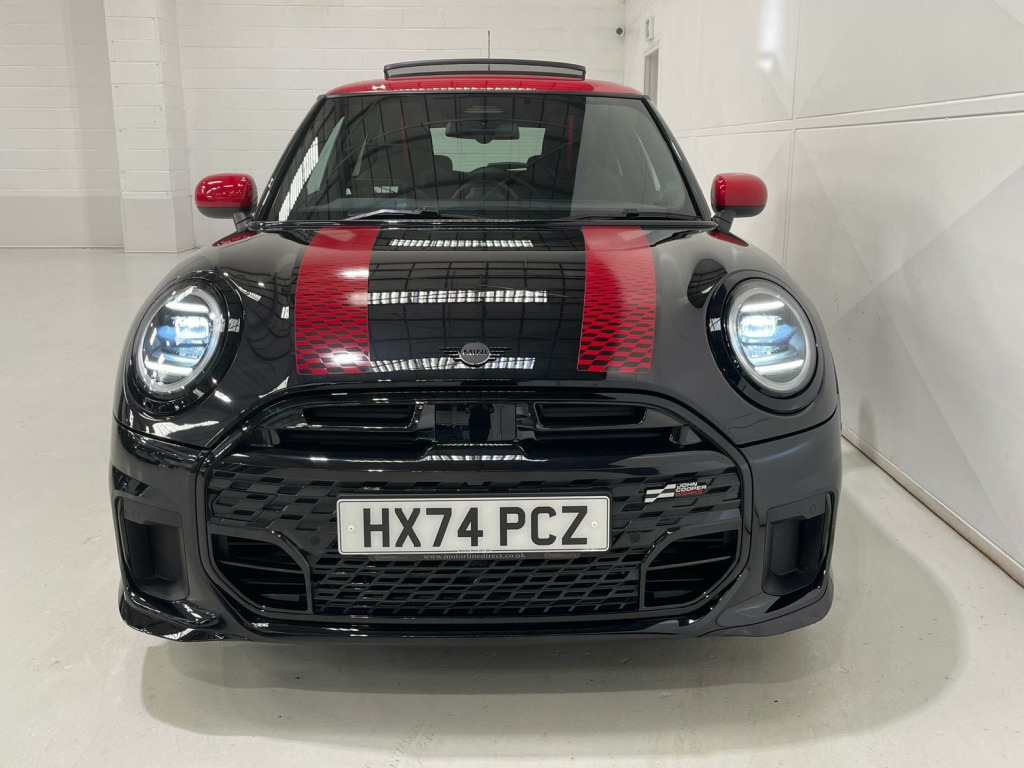 FINANCE & PART EXCHANGE AVAILABLE* - Only 1 registered keeper & 3,625 miles from new, 2 KEYS - this HIGH SPECIFICATION MINI COOPER S SPORT AUTOMATIC WITH PANORAMIC GLASS SUNROOF is finished in stunning sports Midnight Black II & is complimented with contrasting full black leather sports trim and extends itself to the following additional features - Mini John Cooper works Sports styling, head up display, full electric tilt & sliding glass panoramic sunroof, on board satellite navigation system, reverse camera, wireless charger, dual zone climate control / automatic air conditioning, trip computer, cruise control with speed limiter, heated leather trimmed JCW multi function steering wheel with paddle shift, front & rear park distance control, driver & passenger heated front seats, Bluetooth telephone prep, DAB digital radio, media input, Harman Kardon sound system, Apple CarPlay / Android auto, voice command, keyless entry & start, start / stop, MINI experience modes, ambient lighting, privacy glass, roof & mirror caps finished in chili red, sun protection glazing, electric heated & folding exterior mirrors, active guard, drive mode select, speed limit warning, lane departure warning, front collision warning, lane change warning, attentiveness assistant, speed limit assist, LED auto headlights, rain sensor, power steering, abs, airbags, electric mirrors, electric windows, remote central locking, JCW brake callipers finished in sports black, MINI 18'' sports alloy wheels, MINI anti theft system. ***FINANCE AVAILABLE - subject to status. T&C's apply.***PART EXCHANGE AVAILABLE***ALL VEHICLES ARE HPI & NATIONAL MILEAGE REGISTER CHECKED***THE AA WARRANTY IS SUBJECT TO TERMS & CONDITIONS AND DOES NOT COVER VEHICLES THAT ARE BEING USED FOR TAXI, PRIVATE HIRE, CHAUFFEURING PURPOSES OR FOR REWARD.***Please note, that the specifications etc. are generic to that vehicle of the type advertised but may not be included in the specific vehicle that is for sale. It is for the intended purchaser to satisfy themselves of the presence or absence of any specifications before sale.. 18in Alloy Wheels - JCW Lap Spoke 2-Tone, Adaptable Light Signatures, Air Conditioning - Automatic, Airbags - Driver, Airbags - Front Passenger, Anti-Lock Braking System - ABS, Black Lower Band in High Gloss, Black-Red Decorative Dash Strap, Brake Calipers in Black with JCW Badge, Circular OLED Screen, Cruise Control, DAB Digital Radio, Dark Headliner, Driving Assistant, Electric Windows, Floor Mats, Foldable Rear Seats 60-40, Front Armrest, Front Passenger ISOFIX, Front and Rear Apron, Heated Steering Wheel, High Gloss Hexagonal Patterned Grill Surround, JCW Sport Brake, LED Headlights, Level 1 Pack, Lidded Storage Box in Black-Red Knit, MINI Experience Modes, MINI Navigation System, Parking Assistant, Power Steering, Rear Spoiler with Airblades, Rear View Camera, Roof - Body Colour with Black Mirror Caps, Shift Paddles on Steering Wheel, Sport Vescin Steering Wheel - Partially Perforated - Red Accents - Decorative Strap in Black and Red, Steptronic Sport Transmission, 17in Alloy Wheels - JCW Sprint Spoke, 60-40 Rear Seat Bench, Adaptive Suspension, Emergency Call, Forward Collision Warning with Brake Intervention, Front ISOFIX - iSize, Interior Mirror Package, Partially Perforated Vescin Steering Wheel with Red Accents - Decorative Strap Black-Red, Personal E-Sim, Speed Limit Info and Speed Limit Assist, Tyre Repair Kit, Warning Triangle, Wheel Bolt Protection Lock, Level 2 Pack, Vescin-Cord Combination - JCW Black, Roof and Mirror Caps - Chili Red.