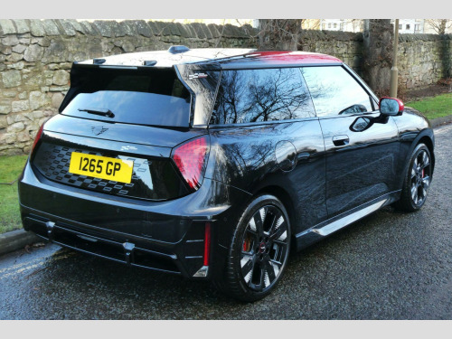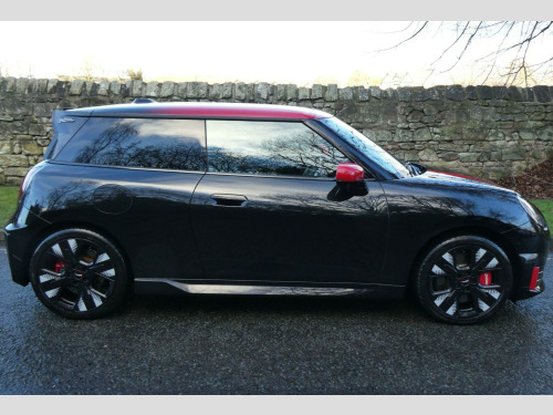 We Are Delighted To Offer This Incredibly High Specification JCW Having All 3 Factory Packs Available Benefiting From Having PPF Fitted & Ceramic Coated. Finished In Midnight Black Metallic With Black Full Leather. For Further Information Or To Arrange A Viewing please Contact Andrew Or Ross You Will Not Be Disappointed. Supplied With Original Book Packs & 2 Sets Of Keys. MINI WARRANTY UNTIL 2028.This 2025 MINI Electric Cooper John Cooper Works is a rare find, boasting exceptionally low mileage of just 2000 miles from its single owner. This electric performance model combines the iconic MINI driving experience with zero emissions, featuring a substantial 54 kWh battery that offers a maximum range of 251 miles on a full charge. Recharging at home with a 7kW charger takes approximately 7 hours and 45 minutes, while rapid public charging can replenish the battery from empty to 80% in as little as 34 minutes. The John Cooper Works trim comes equipped with the comprehensive Level 3 Pack, which includes a branded sound system, Head Up Display, LED headlights, keyless entry, a fixed panoramic sunroof, heated seats, and wireless phone charging. Further enhancing the driving experience are a heated steering wheel, a rear view camera for easier parking, and automatic climate control.The performance of this MINI Electric Cooper John Cooper Works is truly a highlight, with an impressive acceleration of 0 to 62 miles per hour achieved in just 5.9 seconds. This brisk acceleration demonstrates its capability and sporty nature, setting it apart from many other electric vehicles. The inclusion of the Harman Kardon branded sound system ensures an immersive audio experience, while the panoramic sunroof floods the cabin with light, creating an airy and pleasant atmosphere. The combination of its advanced electric powertrain, desirable John Cooper Works specification, and extensive features makes this a compelling choice for those seeking an engaging and stylish electric car.. 11kW AC Charging, 18in Alloy Wheels - JCW Mastery Spoke - Black with Sport Tyres, 60-40 Rear Seat Bench, Acoustic Pedestrian Protection, Air Conditioning - Automatic, Black Lower Band in High Gloss, Black-Red Decorative Dash Strap, Charger Cable Mode 3, Circular OLED Screen, Cruise Control - DCC, DAB Digital Radio, DC Rapid Charging, Dark Headliner, Dashboard Knit - JCW - Black - Red, Driving Assistant, Floor Mats, Front Armrest, Front ISOFIX - iSize, Front and Rear Apron, Harman Kardon, Headlights - LED, Heated Steering Wheel, High Gloss Hexagonal Patterned Grill Surround, JCW Experience Mode, JCW Sport Brake, JCW-Logo Projection, Level 1 Pack, Lidded Storage Box in Black-Red Knit, MINI Navigation System, Parking Assistant, Pedals - Stainless Steel, Perforated Vescin Steering Wheel, Personal E-Sim, Rear JCW Graphic, Rear Spoiler with Airblades, Rear View Camera, Red Brake Callipers, Finished In Midnight Black Metallic With Black Leather, Level 3 Pack, Roof - Multitone Red with Red Mirrors Caps, Vescin-Cord Combination - JCW Black.