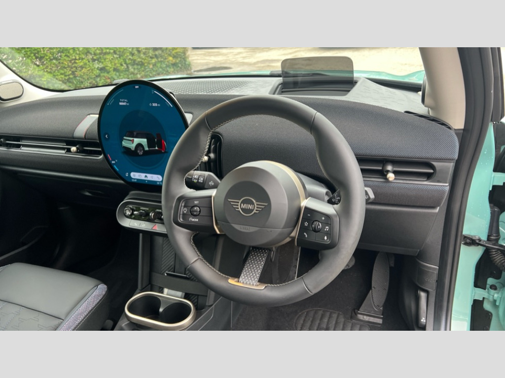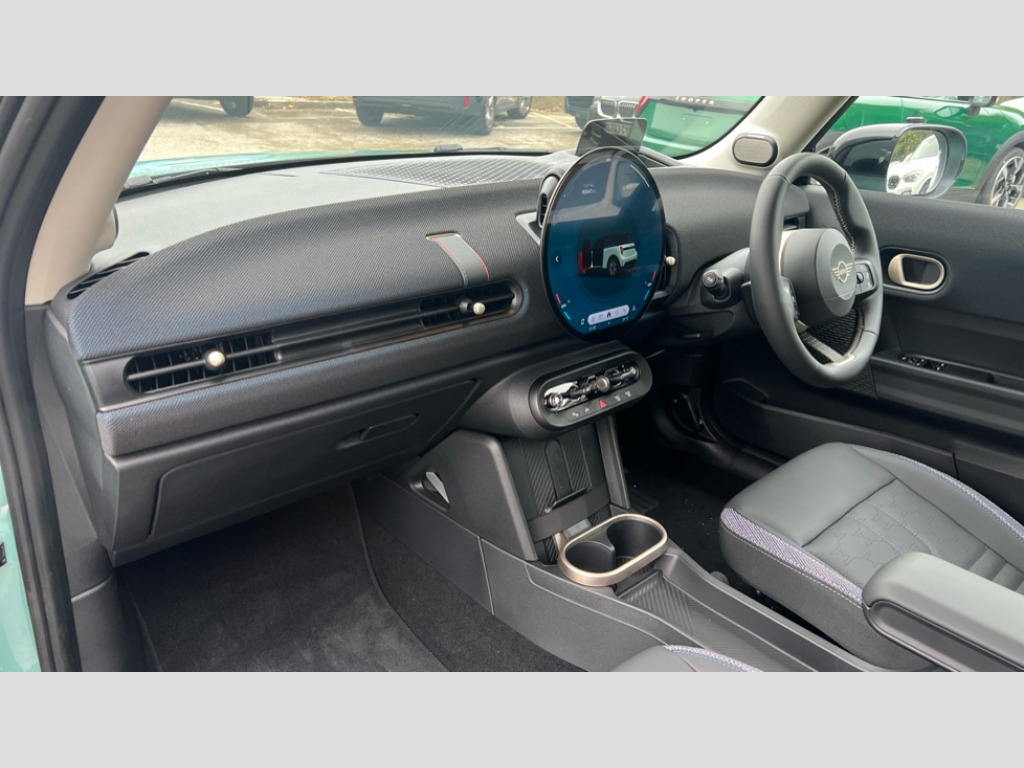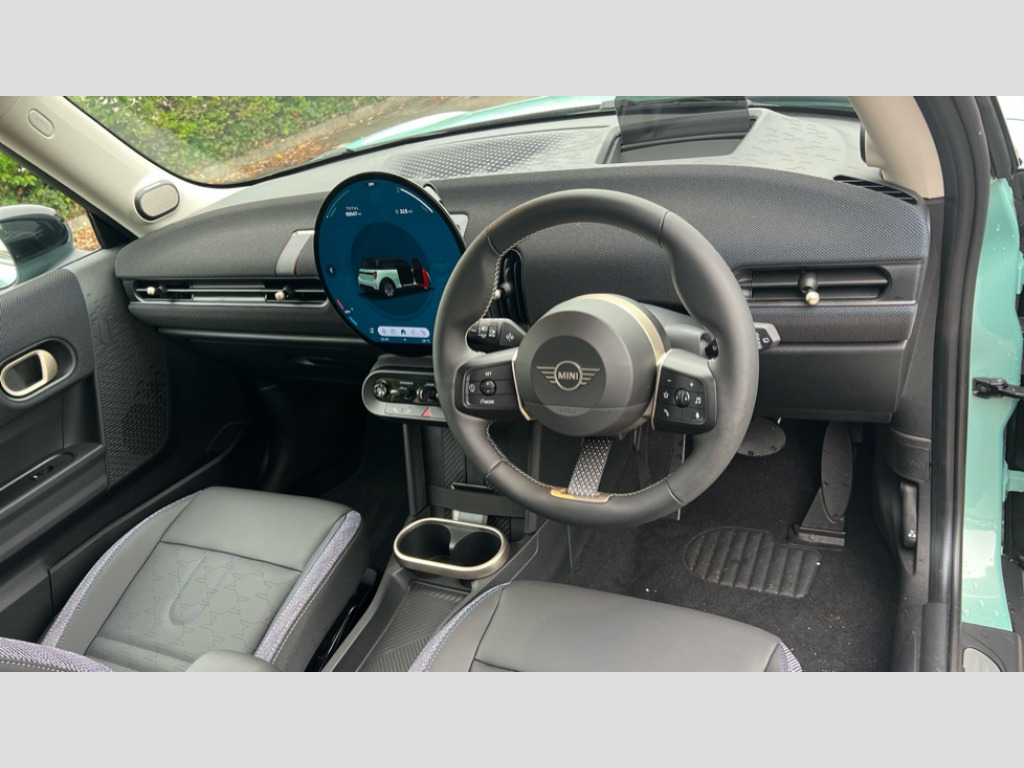 MINI Cooper 1.5 C Classic 3dr Auto Central toggle bar, Circular OLED Screen, Compatible mobile phone bluetooth with audio streaming, Cruise control, Digital instrument cluster, Electro-mechanical speed dependant steering assistance, Emergency call service, MINI Experience Modes, Mini navigation system, On board computer, Service interval indicator, Tailgate, 7 speed steptronic transmission with double clutch, DAB Digital radio, Personal eSim, Auto headlights, Black grille surround, Electric adjustable heated door mirrors, Electric front windows, Heated rear window, Heated windscreen washer jets, LED 3rd brake light, LED daytime running lights, LED indicator lights, LED rear lights, Rain sensor window wipers, Rear fog lights, Rear window wiper, 2 seat bench in second row, 2 zone automatic air conditioning, 60/40 rear seat bench, Ambient lighting, Cupholders, Front and rear head restraints, Front compact armrest, Front floor mats, Heated steering wheel, Height adjustable passenger seat, Light headliner, Luggage compartment lighting, Single front passenger seat, Sport Vescin Steering Wheel black with vibrant silver accents, Sunvisors with vanity mirrors, Vescin/Cloth upholstery includes dash knit in black with blue accents, Driving assistant pack - Cooper Hatchback, Level 2 pack - Mini Hatchback, Park assistant pack - Cooper Hatchback, 3 point seatbelts on all four seats, 6 Airbags - front, side, head and seat belt tensioners, Anti-lock braking system (ABS), DSC - Dynamic Stability Control, Electronic parking brake, Front and rear disc brakes, Front ISOFIX (iSize), Front passenger airbag deactivation, Traction control, Tyre pressure monitoring system, Alarm, Immobiliser, Remote central locking, Tyre repair kit