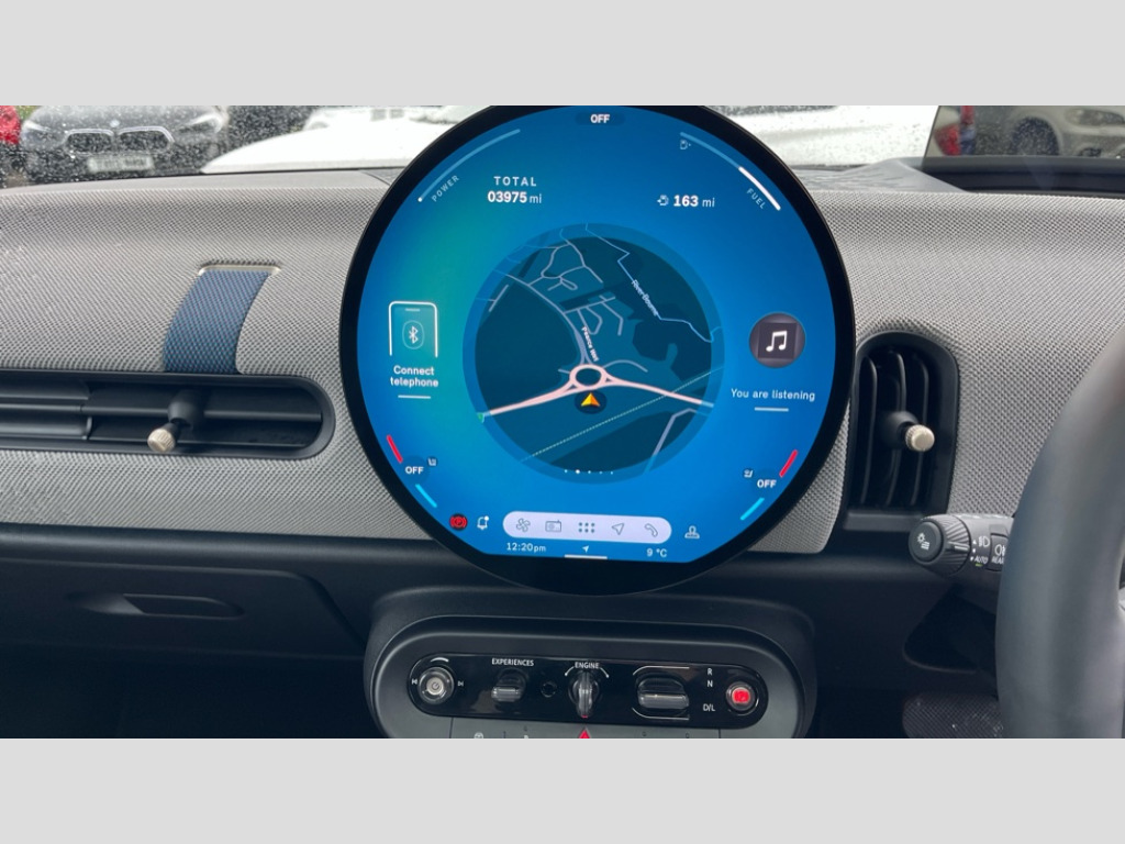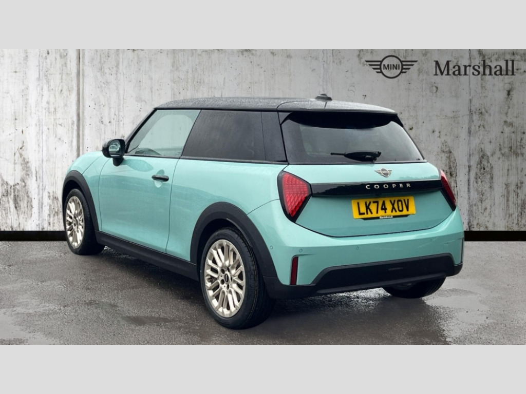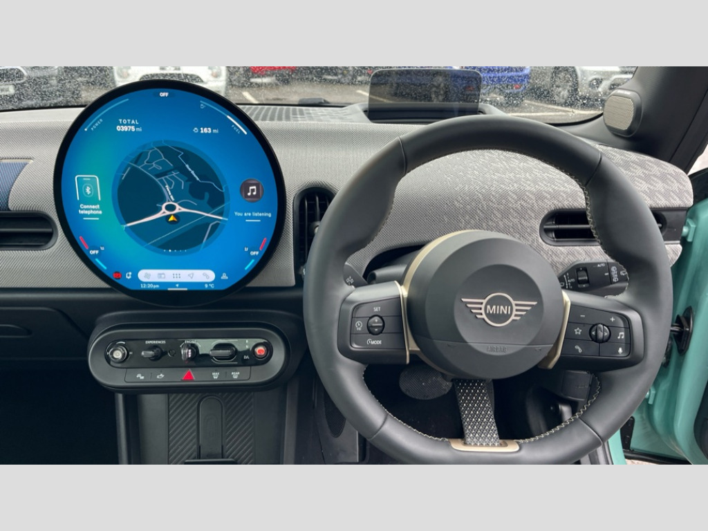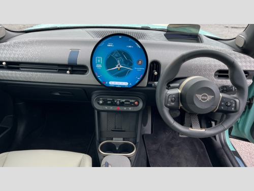 MINI Cooper 1.5 C Exclusive 3dr Auto Central toggle bar, Circular OLED Screen, Compatible mobile phone bluetooth with audio streaming, Cruise control, Digital instrument cluster, Electro-mechanical speed dependant steering assistance, Emergency call service, MINI Experience Modes, Mini navigation system, On board computer, Service interval indicator, 7 speed steptronic transmission with double clutch, DAB Digital radio, Personal eSim, Auto headlights, Electric adjustable heated door mirrors, Electric front windows, Heated rear window, Heated windscreen washer jets, LED daytime running lights, LED Headlights, LED indicator lights, LED rear lights, Logos in Vibrant Silver, Rain sensor window wipers, Rear fog lights, Rear window wiper, Vibrant silver grille surround, 2 seat bench in second row, 2 zone automatic air conditioning, 60/40 rear seat bench, Ambient lighting, Cupholders, Dark headliner, Floor mats, Front and rear head restraints, Front compact armrest, Heated steering wheel, Height adjustable passenger seat, Lidded storage box in grey knit, Luggage compartment lighting, Single front passenger seat, Sport Vescin Steering Wheel, Sunvisors with vanity mirrors, Vescin synthetic leather upholstery, Driving assistant pack - Cooper Hatchback, Park assistant pack - Cooper Hatchback, 3 point seatbelts on all four seats, 6 Airbags - front, side, head and seat belt tensioners, Acoustic pedestrian protection, Anti-lock braking system (ABS), DSC - Dynamic Stability Control, Electronic parking brake, Front and rear disc brakes, Front ISOFIX (iSize), Front passenger airbag deactivation, Traction control, Tyre pressure monitoring system, Alarm, Immobiliser, Remote central locking, Blue decorative dash strap, Light Beige/Grey dash knit, Tyre repair kit