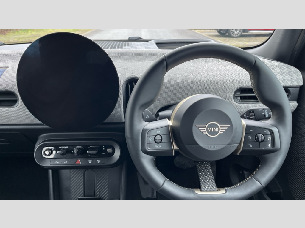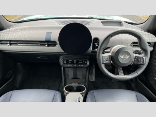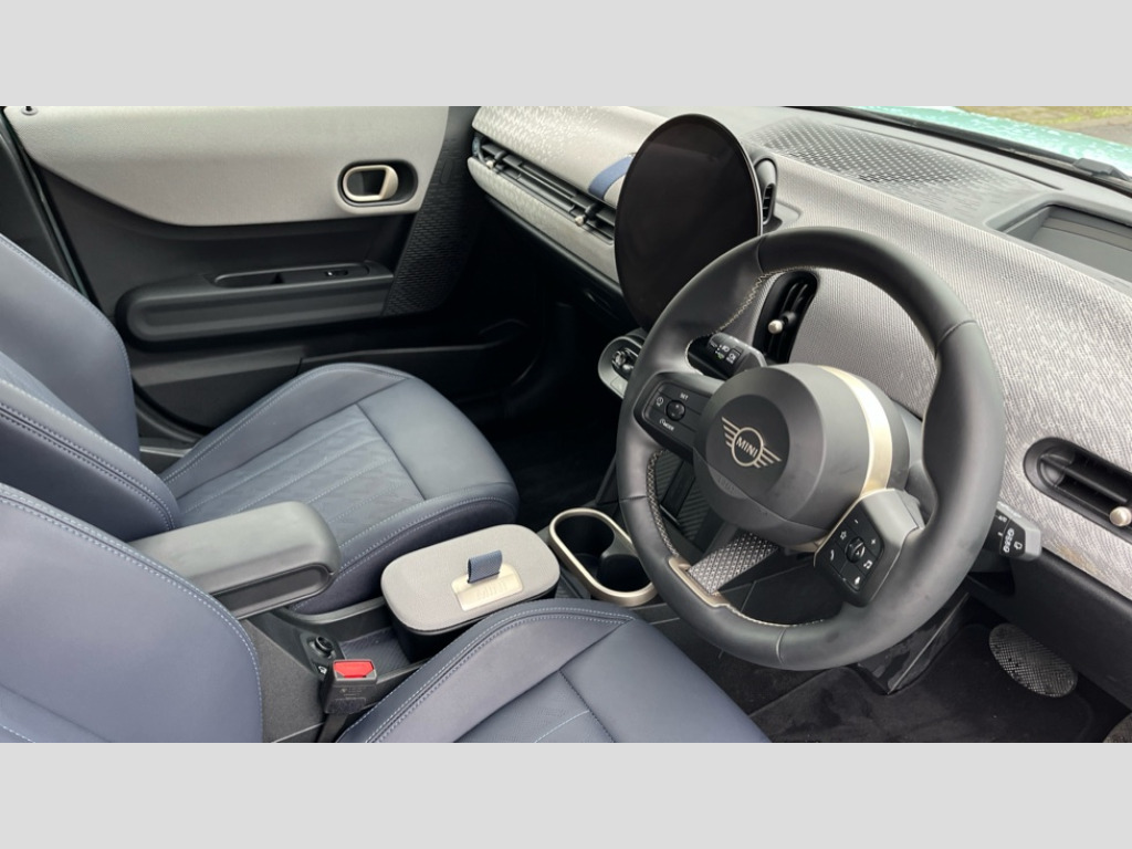 MINI Cooper 1.5 C Exclusive 5dr Auto Central toggle bar, Circular OLED Screen, Compatible mobile phone bluetooth with audio streaming, Cruise control, Digital instrument cluster, Electro-mechanical speed dependant steering assistance, Emergency call service, MINI Experience Modes, Mini navigation system, On board computer, Service interval indicator, Tailgate, 7 speed steptronic transmission with double clutch, DAB Digital radio, Personal eSim, Auto headlights, Electric adjustable heated door mirrors, Electric front+rear windows, Heated rear window, Heated windscreen washer jets, LED 3rd brake light, LED daytime running lights, LED Headlights, LED indicator lights, LED rear lights, Logos in Vibrant Silver, Rain sensor window wipers, Rear fog lights, Rear side wing doors, Rear window wiper, Vibrant silver grille surround, 2 zone automatic air conditioning, 3 seat bench in 2nd row, 60/40 rear seat bench, Ambient lighting, Cupholders, Dark headliner, Front and rear floor mats, Front and rear head restraints, Front compact armrest, Heated steering wheel, Height adjustable passenger seat, Lidded storage box in grey knit, Luggage compartment lighting, Single front passenger seat, Sport Vescin Steering Wheel black with vibrant silver accents, Sunvisors with vanity mirrors, Vescin synthetic leather upholstery includes dash knit in beige with grey accents, Driving assistant pack - Cooper Hatchback, Park assistant pack - Cooper Hatchback, 3 point seatbelts on all five seats, 6 Airbags - front, side, head and seat belt tensioners, Anti-lock braking system (ABS), Child locks on rear doors, DSC - Dynamic Stability Control, Electronic parking brake, Front and rear disc brakes, Front ISOFIX (iSize), Front passenger airbag deactivation, Traction control, Tyre pressure monitoring system, Alarm, Immobiliser, Remote central locking, Blue decorative dash strap, Tyre repair kit