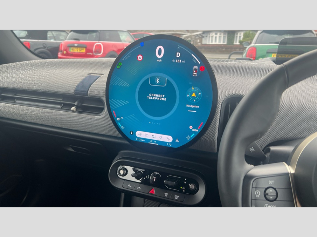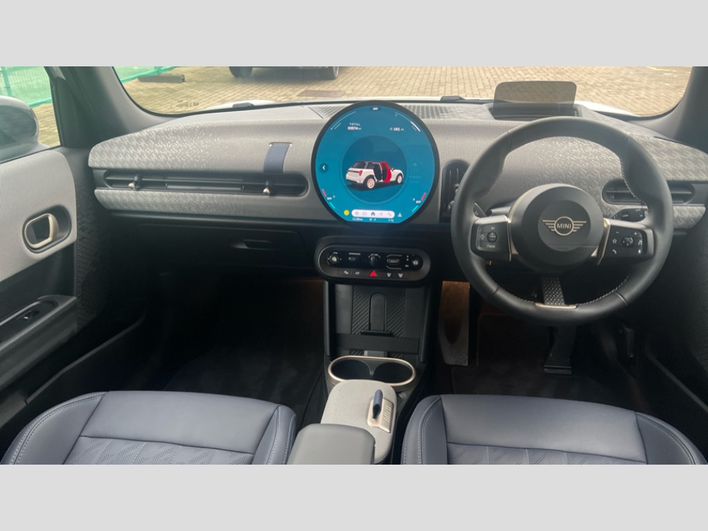 MINI Cooper 1.5 C Exclusive 5dr Auto Central toggle bar, Circular OLED Screen, Compatible mobile phone bluetooth with audio streaming, Cruise control, Digital instrument cluster, Electro-mechanical speed dependant steering assistance, Emergency call service, MINI Experience Modes, Mini navigation system, On board computer, Service interval indicator, Tailgate, 7 speed steptronic transmission with double clutch, DAB Digital radio, Personal eSim, Auto headlights, Electric adjustable heated door mirrors, Electric front+rear windows, Heated rear window, Heated windscreen washer jets, LED 3rd brake light, LED daytime running lights, LED indicator lights, LED rear lights, Logos in Vibrant Silver, Rain sensor window wipers, Rear fog lights, Rear side wing doors, Rear window wiper, Vibrant silver grille surround, 2 zone automatic air conditioning, 3 seat bench in 2nd row, 60/40 rear seat bench, Ambient lighting, Cupholders, Dark headliner, Front and rear floor mats, Front and rear head restraints, Front compact armrest, Heated steering wheel, Height adjustable passenger seat, Lidded storage box in grey knit, Luggage compartment lighting, Single front passenger seat, Sport Vescin Steering Wheel black with vibrant silver accents, Sunvisors with vanity mirrors, Vescin synthetic leather upholstery includes dash knit in beige with grey accents, Driving assistant pack - Cooper Hatchback, Level 1 pack - Mini Hatchback, Park assistant pack - Cooper Hatchback, 3 point seatbelts on all five seats, 6 Airbags - front, side, head and seat belt tensioners, Anti-lock braking system (ABS), Child locks on rear doors, DSC - Dynamic Stability Control, Electronic parking brake, Front and rear disc brakes, Front ISOFIX (iSize), Front passenger airbag deactivation, Traction control, Tyre pressure monitoring system, Alarm, Immobiliser, Remote central locking, Blue decorative dash strap, Tyre repair kit