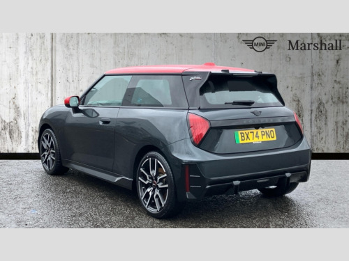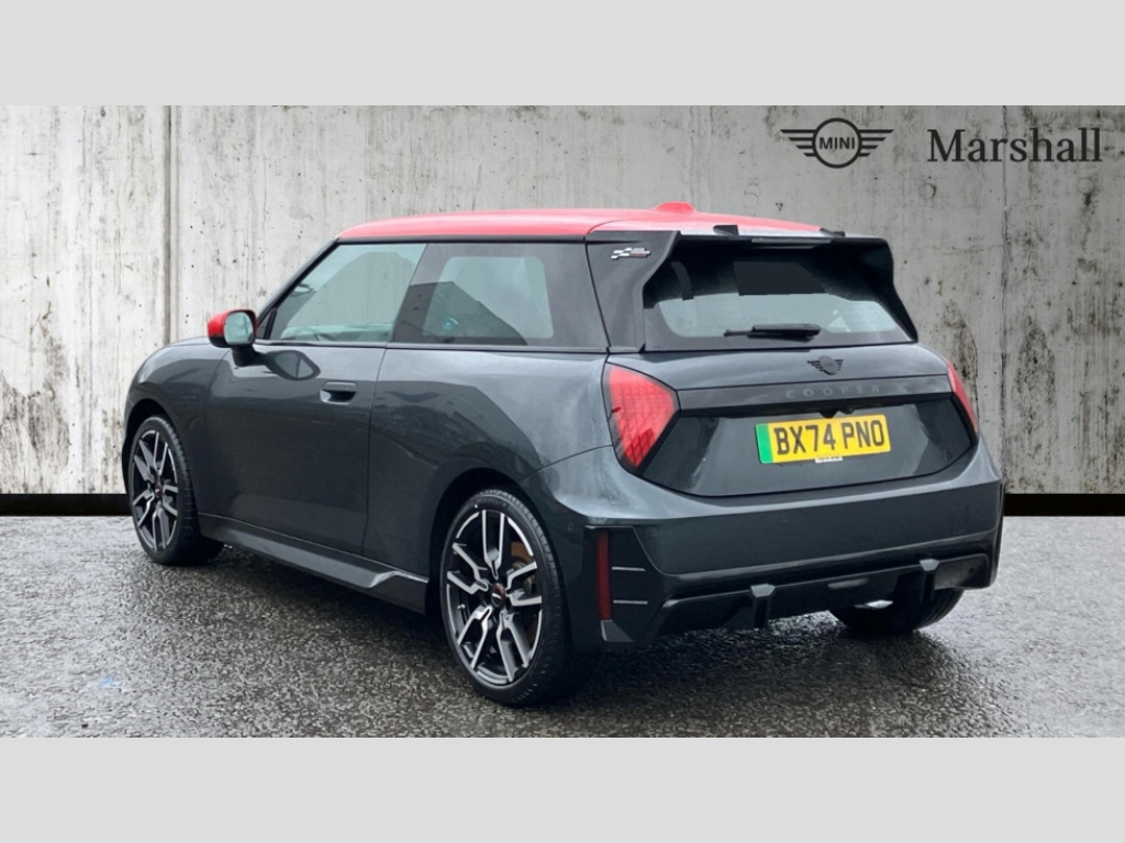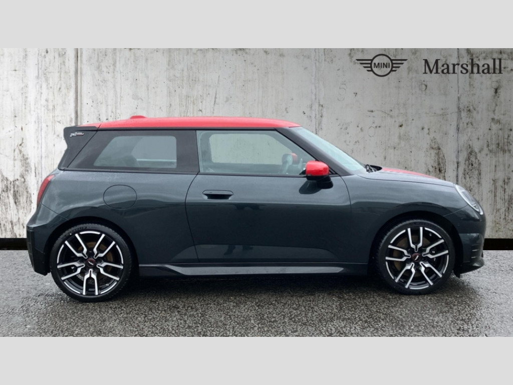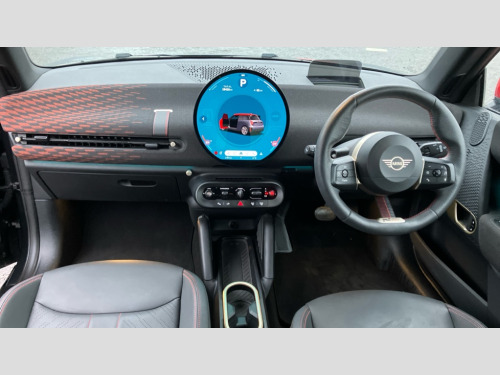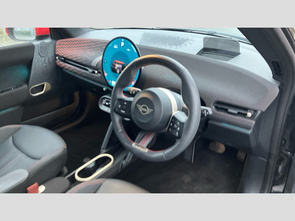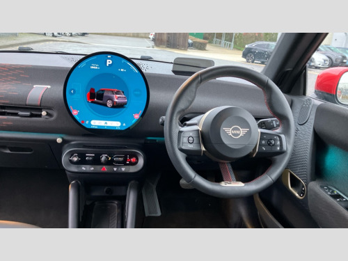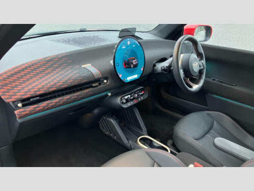 MINI Cooper 135kW E Sport 41kWh 3dr Auto Central toggle bar, Circular OLED Screen, Compatible mobile phone bluetooth with audio streaming, Cruise control, Digital instrument cluster, Electro-mechanical speed dependant steering assistance, Emergency call service, MINI Experience Modes, Mini navigation system, On board computer, Service interval indicator, 11kW AC charging, Automatic transmission, DC Rapid charging, Mode 3 cable, DAB Digital radio, Personal eSim, Auto headlights, Body coloured wheel arches, Electric adjustable heated door mirrors, Electric front+rear windows, Front and rear apron, Heated rear window, Heated windscreen washer jets, High gloss hexagonal patterned grille surround, LED daytime running lights, LED Headlights, LED indicator lights, LED rear lights, Logos in black, Rain sensor window wipers, Rear fog lights, Rear roof spoiler with airblades, Rear window wiper, 2 seat bench in second row, 2 zone automatic air conditioning, 60/40 rear seat bench, Ambient lighting, Black lower band in high gloss, Cupholders, Dark headliner, Fabric strap as 3rd spoke, Floor mats, Front and rear head restraints, Front compact armrest, Heated steering wheel, Height adjustable passenger seat, Lidded storage box in Black/Red knit, Luggage compartment lighting, Perforated Vescin steering wheel, Single front passenger seat, Sunvisors with vanity mirrors, Vescin/Cord upholstery, Driving assistant pack - Cooper Hatchback, Park assistant pack - Cooper Hatchback, 3 point seatbelts on all four seats, 6 Airbags - front, side, head and seat belt tensioners, Acoustic pedestrian protection, Anti-lock braking system (ABS), Brake caliper in Black with JCW badge, DSC - Dynamic Stability Control, Electronic parking brake, Front and rear disc brakes, Front ISOFIX (iSize), Front passenger airbag deactivation, JCW Sport Brakes, Traction control, Tyre pressure monitoring system, Alarm, Immobiliser, Remote central locking, Black/Red decorative dash strap, JCW Black/Red dashboard knit, 18" JCW Lap spoke 2-tone alloy wheels, Tyre repair kit