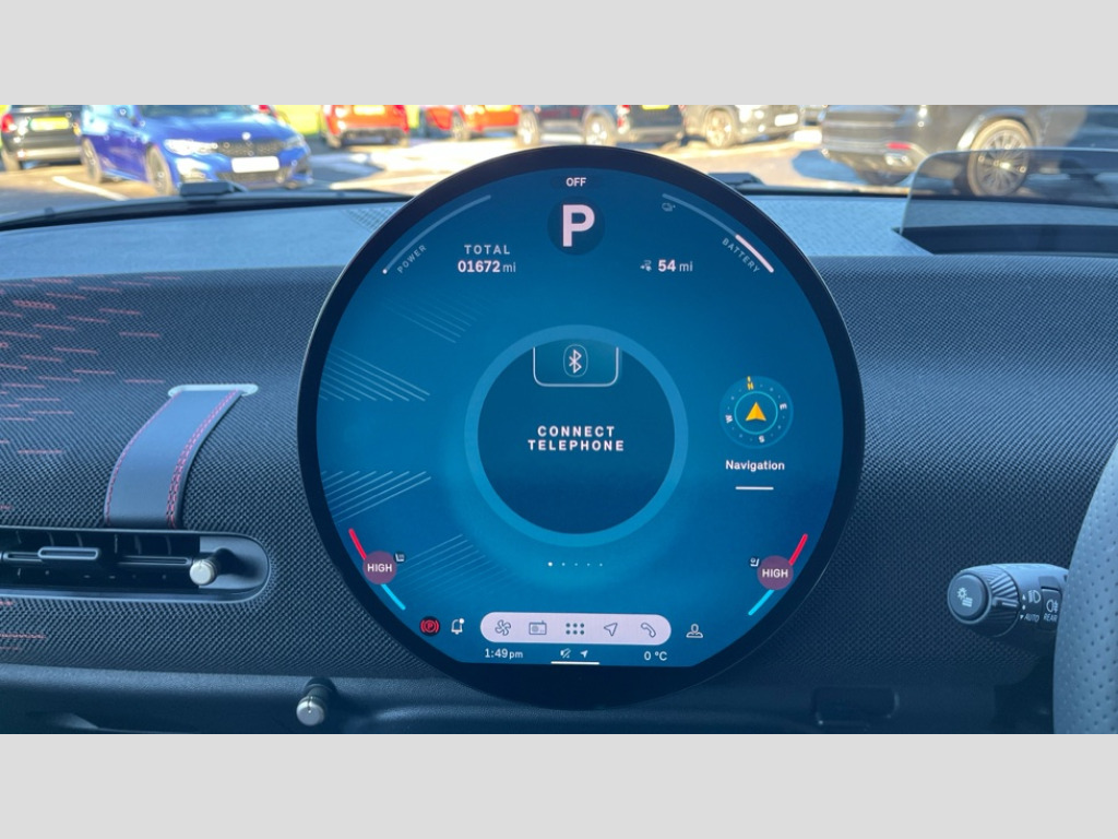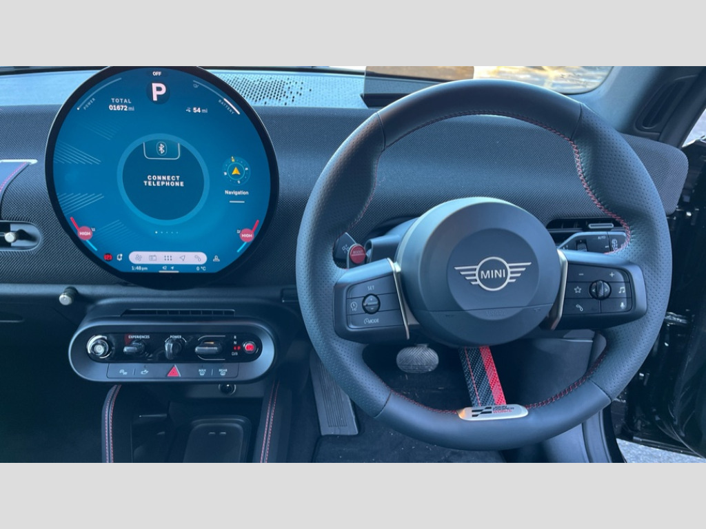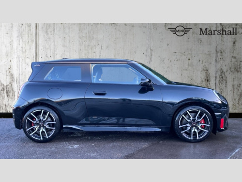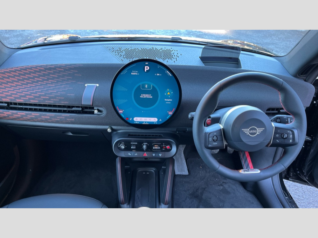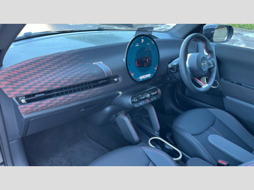 MINI Cooper 190kW John Cooper Works 54kWh 3dr Auto Central toggle bar, Circular OLED Screen, Compatible mobile phone bluetooth with audio streaming, Cruise control, Digital instrument cluster, Driver camera system, Electro-mechanical speed dependant steering assistance, Emergency call service, JCW Experience mode, Mini navigation system, On board computer, Rear JCW graphic, Rear view camera, Service interval indicator, Tailgate, 11kW AC charging, Automatic transmission, DC Rapid charging, Mode 3 cable, DAB Digital radio, Harman Kardon sound system, Personal eSim, Auto headlights, Body coloured wheel arches, Electric adjustable heated door mirrors, Electric front+rear windows, Front and rear apron, Heated rear window, Heated windscreen washer jets, High gloss hexagonal patterned grille surround, JCW logo projection, LED 3rd brake light, LED daytime running lights, LED Headlights, LED indicator lights, LED rear lights, Logos in black, Rain sensor window wipers, Rear fog lights, Rear roof spoiler with airblades, Rear window wiper, 2 seat bench in second row, 2 zone automatic air conditioning, 60/40 rear seat bench, Ambient lighting, Black lower band in high gloss, Cupholders, Dark headliner, Fabric strap as 3rd spoke, Floor mats, Front and rear head restraints, Front compact armrest, Heated steering wheel, Height adjustable passenger seat, Lidded storage box in Black/Red knit, Luggage compartment lighting, Perforated Vescin steering wheel, Single front passenger seat, Stainless steel pedals, Sunvisors with vanity mirrors, Driving assistant pack - Cooper Hatchback, Park assistant pack - Cooper Hatchback, 3 point seatbelts on all four seats, 6 Airbags - front, side, head and seat belt tensioners, Acoustic pedestrian protection, Anti-lock braking system (ABS), DSC - Dynamic Stability Control, Electronic parking brake, Front and rear disc brakes, Front ISOFIX (iSize), Front passenger airbag deactivation, JCW Sport Brakes, Red brake callipers, Traction control, Tyre pressure monitoring system, Alarm, Immobiliser, Remote central locking, Black/Red decorative dash strap, Tyre repair kit