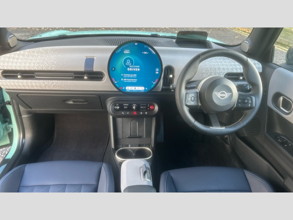 MINI Cooper 2.0 S Exclusive 3dr Auto Central toggle bar, Circular OLED Screen, Compatible mobile phone bluetooth with audio streaming, Cruise control, Digital instrument cluster, Electro-mechanical speed dependant steering assistance, Emergency call service, MINI Experience Modes, Mini navigation system, On board computer, Service interval indicator, 7 speed steptronic transmission with double clutch, DAB Digital radio, Personal eSim, Auto headlights, Electric adjustable heated door mirrors, Electric front windows, Heated rear window, Heated windscreen washer jets, LED daytime running lights, LED indicator lights, LED rear lights, Logos in Vibrant Silver, Rain sensor window wipers, Rear fog lights, Rear window wiper, Vibrant silver grille surround, 2 seat bench in second row, 2 zone automatic air conditioning, 60/40 rear seat bench, Ambient lighting, Cupholders, Dark headliner, Floor mats, Front and rear head restraints, Front compact armrest, Heated steering wheel, Height adjustable passenger seat, Lidded storage box in grey knit, Luggage compartment lighting, Single front passenger seat, Sport Vescin Steering Wheel, Sunvisors with vanity mirrors, Vescin synthetic leather upholstery, Driving assistant pack - Cooper Hatchback, Level 1 pack - Mini Hatchback, Park assistant pack - Cooper Hatchback, 3 point seatbelts on all four seats, 6 Airbags - front, side, head and seat belt tensioners, Acoustic pedestrian protection, Anti-lock braking system (ABS), DSC - Dynamic Stability Control, Electronic parking brake, Front and rear disc brakes, Front ISOFIX (iSize), Front passenger airbag deactivation, Traction control, Tyre pressure monitoring system, Alarm, Immobiliser, Remote central locking, Blue decorative dash strap, Light Beige/Grey dash knit, Tyre repair kit