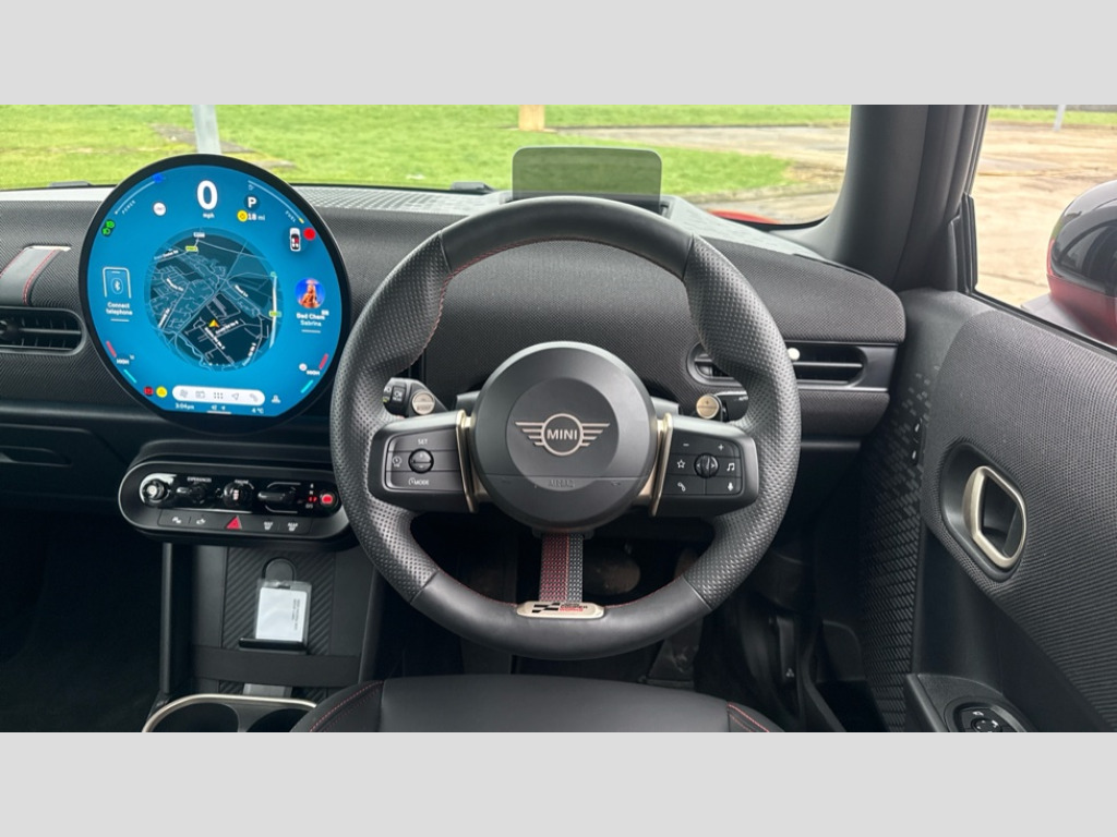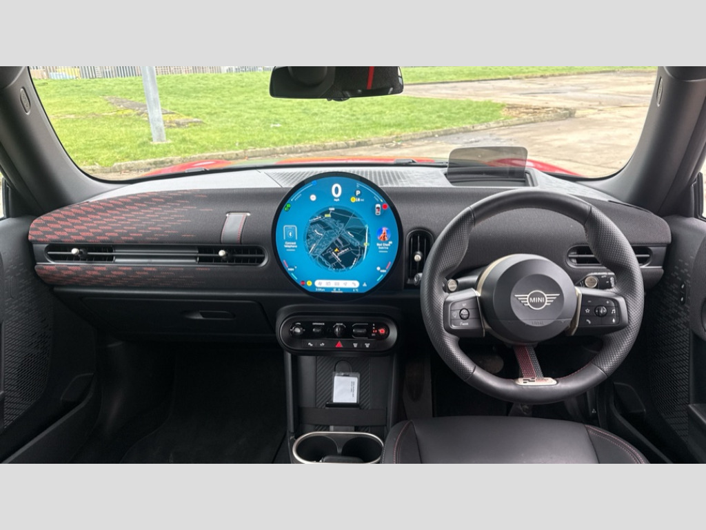 MINI Cooper 2.0 S Sport 3dr Auto Central toggle bar, Circular OLED Screen, Compatible mobile phone bluetooth with audio streaming, Cruise control, Digital instrument cluster, Electro-mechanical speed dependant steering assistance, Emergency call service, Gaming controller with intelligent personal assistant voice update, MINI Experience Modes, Mini navigation system, On board computer, Service interval indicator, Tailgate, 7 speed sport transmission with double clutch, Adaptive suspension, DAB Digital radio, Personal eSim, Rear USB charger, Adaptable light signatures, Auto headlights, Electric adjustable heated door mirrors, Electric front windows, Front and rear apron, Heated rear window, Heated windscreen washer jets, High gloss black wheel arches, High gloss hexagonal patterned grille surround, JCW body kit, Jet black mirror caps, LED 3rd brake light, LED daytime running lights, LED indicator lights, LED rear lights, Rain sensor window wipers, Rear fog lights, Rear roof spoiler with airblades, Rear window wiper, 2 seat bench in second row, 2 zone automatic air conditioning, 60/40 rear seat bench, Ambient lighting, Black lower band in high gloss, Cupholders, Dark headliner, Floor mats, Front and rear head restraints, Front compact armrest, Heated steering wheel, Height adjustable passenger seat, Lidded storage box in Black/Red knit, Luggage compartment lighting, Partially perforated vescin steering wheel with red accent, black/red decorative strap, Single front passenger seat, Steering wheel paddle shift, Sunvisors with vanity mirrors, Vescin/Cord combination JCW upholstery includes dash knit in black with red accents, Driving assistant pack - Cooper Hatchback, Level 1 pack - Mini Hatchback, Park assistant pack - Cooper Hatchback, 3 point seatbelts on all four seats, 6 Airbags - front, side, head and seat belt tensioners, Anti-lock braking system (ABS), Brake caliper in Black with JCW badge, DSC - Dynamic Stability Control, Electronic parking brake, Front and rear disc brakes, Front ISOFIX (iSize), Front passenger airbag deactivation, JCW Sport Brakes, Traction control, Tyre pressure monitoring system, Alarm, Immobiliser, Remote central locking, Black/Red decorative dash strap, Tyre repair kit
