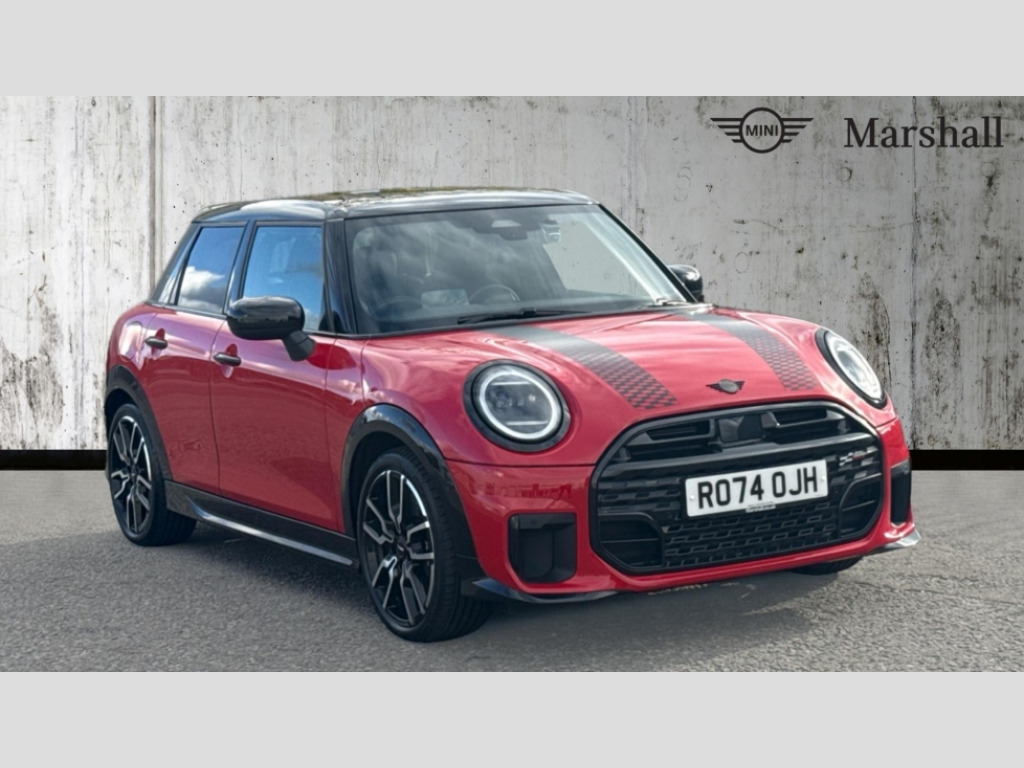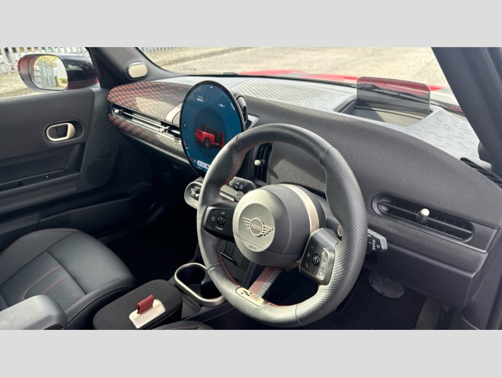 MINI Cooper 2.0 S Sport 5dr Auto Central toggle bar, Circular OLED Screen, Compatible mobile phone bluetooth with audio streaming, Cruise control, Digital instrument cluster, Electro-mechanical speed dependant steering assistance, Emergency call service, MINI Experience Modes, Mini navigation system, On board computer, Service interval indicator, 7 speed steptronic sport transmission with double clutch, Adaptive suspension, DAB Digital radio, Personal eSim, Adaptable light signatures, Auto headlights, Electric adjustable heated door mirrors, Electric front+rear windows, Front and rear apron, Heated rear window, Heated windscreen washer jets, High gloss hexagonal patterned grille surround, LED daytime running lights, LED indicator lights, LED rear lights, Rain sensor window wipers, Rear fog lights, Rear roof spoiler with airblades, Rear side wing doors, Rear window wiper, 2 zone automatic air conditioning, 3 seat bench in 2nd row, 60/40 rear seat bench, Ambient lighting, Black lower band in high gloss, Cupholders, Dark headliner, Floor mats, Front and rear head restraints, Front compact armrest, Heated steering wheel, Height adjustable passenger seat, Lidded storage box in Black/Red knit, Luggage compartment lighting, Partially perforated vescin steering wheel with red accent, black/red decorative strap, Single front passenger seat, Steering wheel paddle shift, Sunvisors with vanity mirrors, Vescin/Cord upholstery, Driving assistant pack - Cooper Hatchback, Level 1 pack - Mini Hatchback, Park assistant pack - Cooper Hatchback, 3 point seatbelts on all five seats, 6 Airbags - front, side, head and seat belt tensioners, Acoustic pedestrian protection, Anti-lock braking system (ABS), Brake caliper in Black with JCW badge, Child locks on rear doors, DSC - Dynamic Stability Control, Electronic parking brake, Front and rear disc brakes, Front ISOFIX (iSize), Front passenger airbag deactivation, JCW Sport Brakes, Traction control, Tyre pressure monitoring system, Alarm, Immobiliser, Remote central locking, Black/Red decorative dash strap, JCW Black/Red dashboard knit, 18" JCW Lap spoke 2-tone alloy wheels, Tyre repair kit