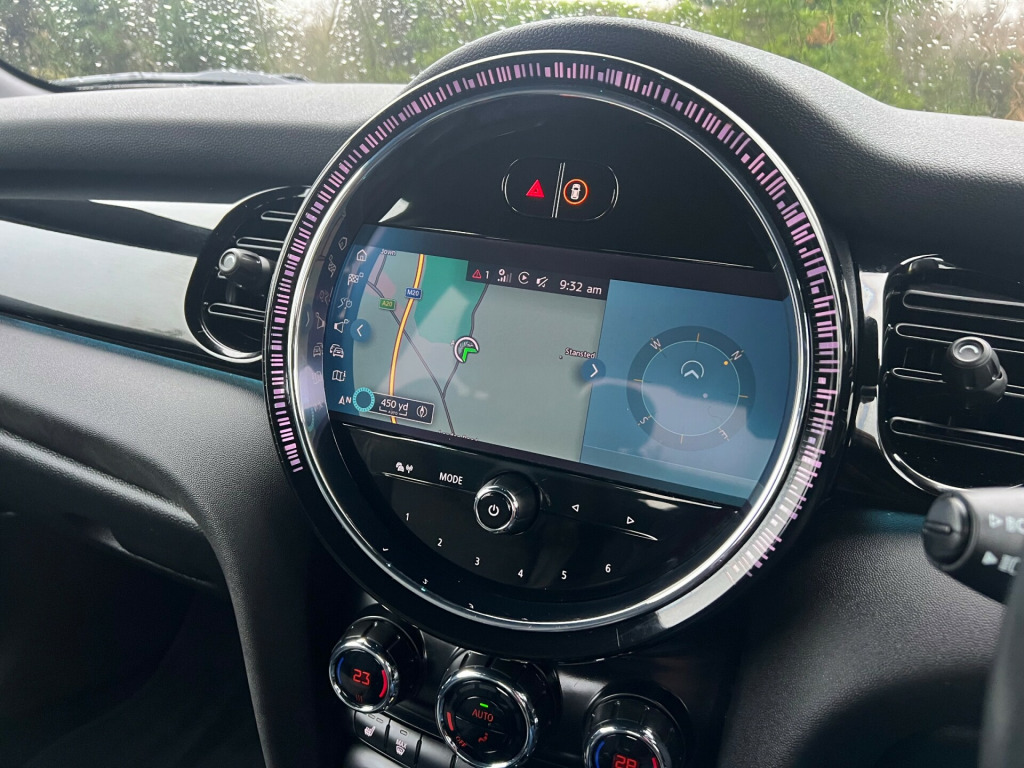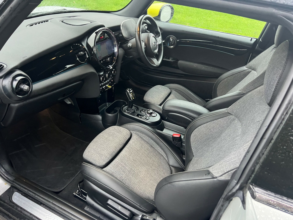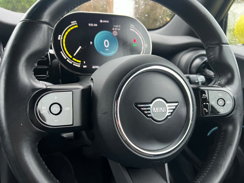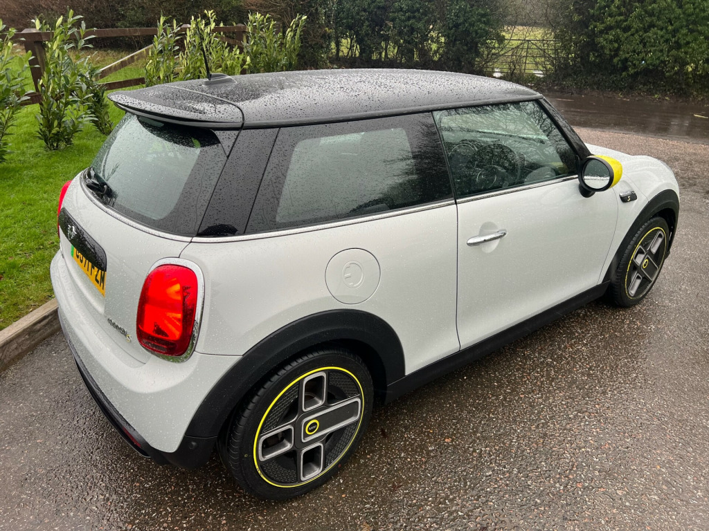 This 2021 Mini Electric Cooper SE 32.6kWh Level 2 Hatchback 3dr Electric Auto (184 ps) has only 40466 miles, ULEZ compliant, perfect for city & local driving. With its sleek design and 3 doors, this electric hatchback is not only stylish but also practical, comfortably seating 4 people. Its MOT is valid until 14/01/2026, ensuring peace of mind for the future. Featuring 17in Alloy Wheels, two-tone Electric Spoke, and striking Yellow Mirror Caps, this Mini stands out on the road. The exterior is finished in White Silver, complemented by Black Roof and Mirror Caps. Inside, the Black Pearl Cloth-Leatherette upholstery adds a touch of luxury to the cabin. Whether zipping through urban streets or cruising on the motorway, this Mini Electric offers a smooth and powerful ride, making it a must-have for eco-conscious drivers seeking a reliable and fun vehicle. Finance available, please call for details., v socket in centre console, 8.8in touchscreen with led ring, bluetooth for compatible mobile phone with audio streaming, fm tuner and dab digital radio, navigation pack, speakers - 4, 17in alloy wheels - tentacle spoke in black, bonnet scoop, electric windows - front, folding and auto dimming mirrors, heated rear window, heated windscreen washer jets, model logo cooper s on right of tailgate, radiator grille including e badge, rear fog light, roof and mirror caps - body-colour, side scuttle panels with integrated indicators - with e badge, white indicator lenses, 3 point seatbelts on all four seats, acoustic pedestrian for protection, airbags - x6 - front - side - head and seatbelt tensioners, alarm system, anti-lock braking system - abs, comfort access system, driving assistant pack, dynamic brake lights, dynamic stability control - dsc, electronic parking brake, electronic vehicle immobiliser, front and rear isofix - including front passenger airbag deactivation, rear window wiper, two-tone horn, warning triangle and first aid kit, 4 lashing eyes in luggage compartment, air conditioning - automatic - with two zone control, ambient lighting, brake energy recuperation toggle switch, charging flap embossed with e logo in body colour, charging flap on drivers side rear panel - embossed with e-logo - includes led light indicating charging status, chrome highlights, cup holders, digital instrument cluster, door sill strips - metal with cooper s, door storage compartments, floor mats, foldable rear seats 60-40, front armrest, glove compartment, headliner - anthracite, interior light pack, interior lighting in front of headliner, interior style - dark, interior trim - piano black, luggage compartment - light, mini excitement pack, mechanical seat adjustment for drivers seat and passengers seat, multifunction steering wheel, seats - heated, sport leather steering wheel, sport seats including manual adjustment for thigh rests, start-stop toggle including keyless go, steering column adjustment - height and length, storage - pockets on back of front seats, storage compartment pack, sun visor with vanity mirrors, tool kit, ac-dc charging, cruise control, driving modes, electro-mechanical steering with speed dependant steering assistance, heat pump, on-board computer, pdc - park distance control - rear, performance control, rear view camera, tpws - tyre pressure warning system, two charging cables, led headlights with closed ring as daytime driving lights, rain sensor and automatic headlight activation, rear led lights with union jack design
