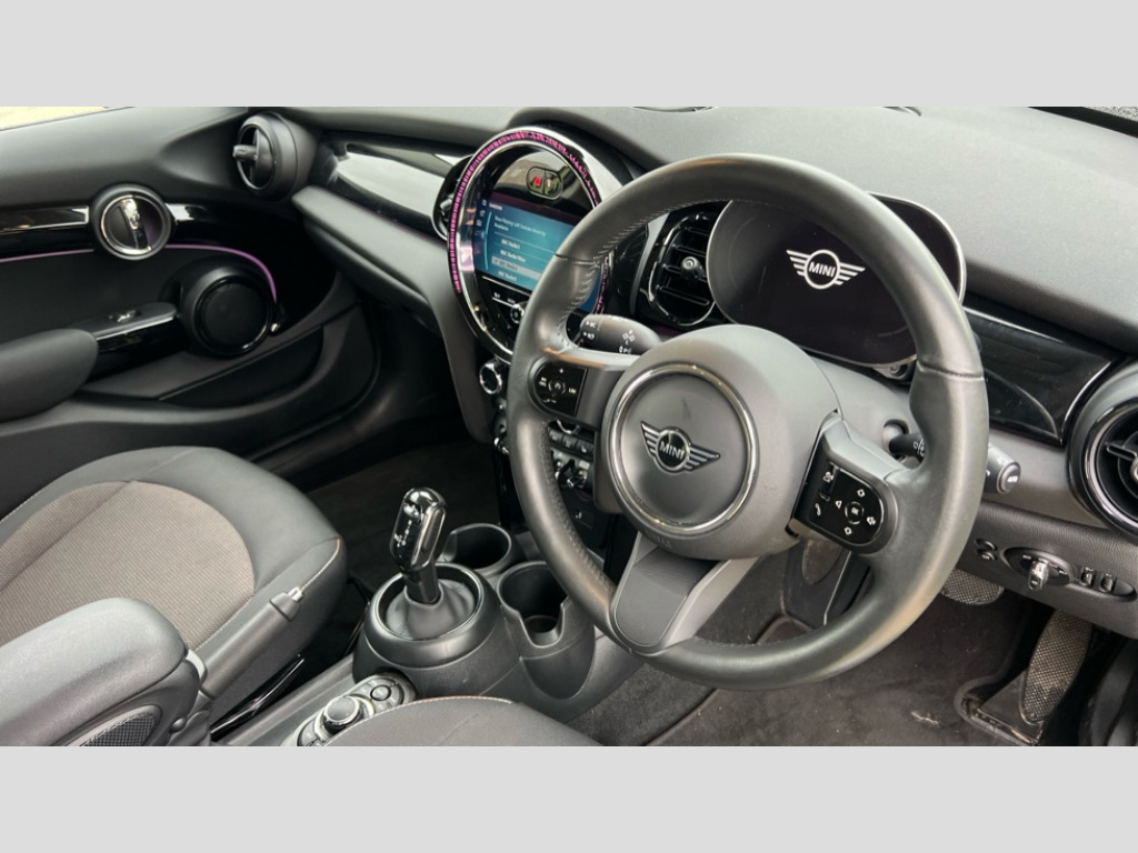 MINI Cooper 1.5 C Classic 5dr Auto Apple CarPlay, Automatic start/stop function with brake energy recuperation, Compatible mobile phone bluetooth with audio streaming, Digital dashboard display, Electro-mechanical speed dependant steering assistance, Flexible car sharing preparation, Instrument cluster, Mini E-call, MINI TeleServices, On board computer, Service interval indicator, Double Vanos system, Fully variable valve control, Gear change indicator display, High precision injection, Performance Control, Steptronic transmission with double clutch, 6 speakers in front door trims and underneath front seats, 8.8" touchscreen with LED ring, FM tuner and DAB digital radio, 3rd brake light, Automatic headlight activation switch, Body colour fuel filler cap, Chrome border high gloss black slats radiator grille, Dynamic brake lights, Electric front+rear windows, Exhaust tailpipe on left with chrome finisher, Heated rear window, Heated windscreen washer jets, LED headlight with closed ring and daytime driving lights, Metal door sill strips with MINI imprint, Model logo Cooper on right of tailgate, Rain sensor window wipers, Rear fog lights, Rear LED lights with union jack design, Rear side wing doors, Rear window wiper, Side scuttle panel with integrated indicator, Sun/heat protection glass, White indicator lenses, 12V Accessory socket in centre console, 3 seat bench in 2nd row, 4 lashing eyes in luggage compartment, 60/40 split folding rear seat, Ambient lighting, Chrome interior highlights, Cupholders, Front and rear head restraints, Front and rear isofix with front passenger airbag deactivation, Front and rear velour floor mats, Glove compartment, Height and length steering column adjustment, Interior lighting with 12 different colours across the dashboard, underneath door bezel with illuminated laser-engraved design on central display, Leatherette gearshift lever and handbrake gaiters, LED reading lights, vanity mirror lights, front foot well light and spotlight on front seats, Mechanical seat adjustment - forward/back & backrest for front seats and driver seat height adjust, Multifunction steering wheel, Satellite grey headlining including grab handles and clothes hooks, Single front passenger seat, Sport leather steering wheel with speed limiter and audio/communication controls, Storage compartments in doors, Sunvisors with vanity mirrors, Driving assistant pack - Mini Hatchback, Premium pack - Hatchback, 3 point seatbelts on all five seats, 6 Airbags - front, side, head and seat belt tensioners, Anti-lock braking system (ABS), Child locks on rear doors, DSC - Dynamic Stability Control, Front and rear disc brakes, Hill start assist, Single tone fanfare horn, Tyre pressure monitoring system, Alarm system with tilt sensor, monitoring doors, bonnet interior and tailgate, Electronic vehicle immobiliser, Start/stop toggle with keyless go, Piano black interior trim, Tool kit, Tyre repair kit