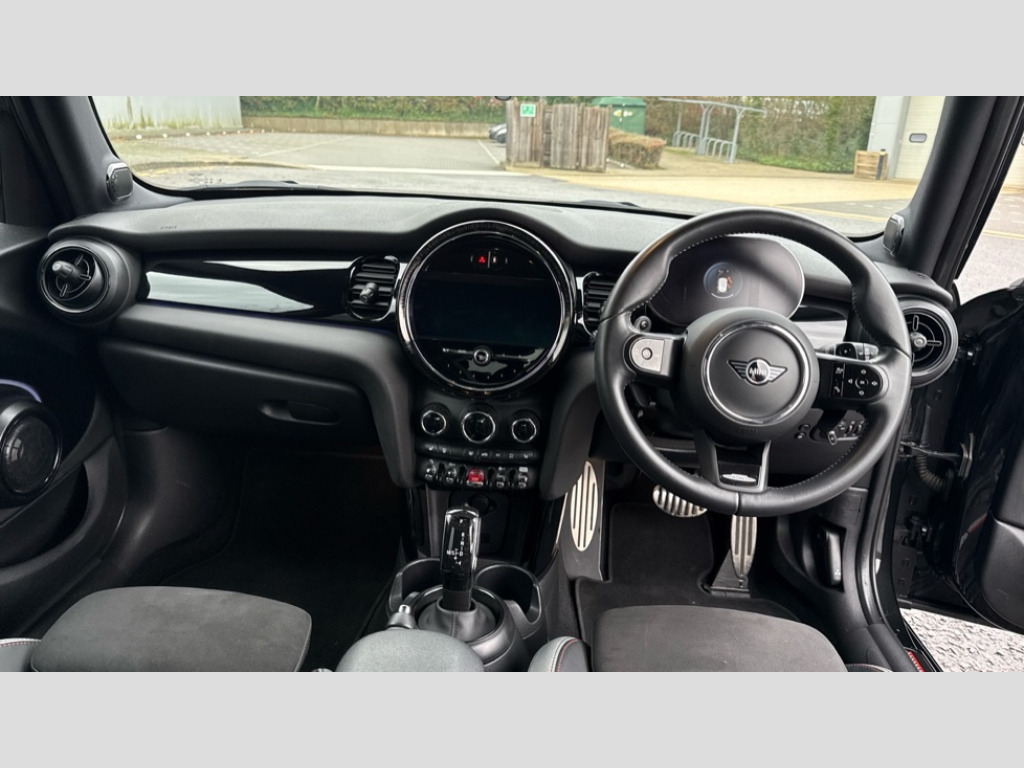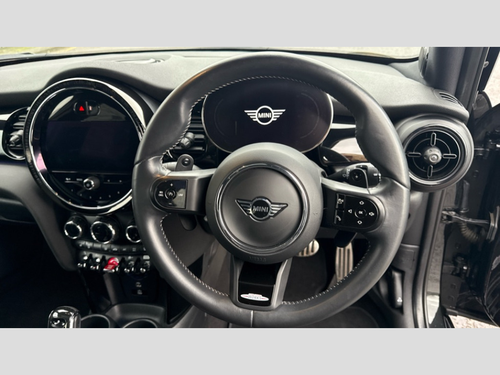 MINI Cooper 2.0 John Cooper Works 3dr Auto Apple CarPlay, Automatic start/stop function with brake energy recuperation, Compatible mobile phone bluetooth with audio streaming, Digital dashboard display, Electro-mechanical speed dependant steering assistance, Flexible car sharing preparation, Instrument cluster, Mini E-call, MINI TeleServices, On board computer, Service interval indicator, Double Vanos system, Fully variable valve control, High precision injection, Performance Control, 4 speakers in front door trims and underneath front seats, 8.8" touchscreen with LED ring, FM tuner and DAB digital radio, 3rd brake light, Automatic headlight activation switch, Bonnet scoop, Dynamic brake lights, Electric front windows, Heated rear window, Heated windscreen washer jets, JCW Aerodynamic kit - Front and rear bumpers with sporty JCW styling and part-painted side sills with MINI John Cooper Works door sill finishers, John Cooper Works logo above an individual grille strut in Chilli Red, John Cooper Works rear spoiler, LED headlight with closed ring and daytime driving lights, Rain sensor window wipers, Rear fog lights, Rear LED lights with union jack design, Rear window wiper, Side scuttle panel with integrated indicator, Side scuttle with MINI John Cooper Works logo in black high-gloss with red border, Sun/heat protection glass, White indicator lenses, 12V Accessory socket in centre console, 2 seat bench in 2nd row, 4 lashing eyes in luggage compartment, 60/40 split folding rear seat, Anthracite headliner including grab handles and clothes hooks, Chrome interior highlights, Cupholders, Front and rear isofix with front passenger airbag deactivation, Front floor mats in velour, Glove compartment, Height and length steering column adjustment, Integrated headrests, adjustable thigh support for seats, Interior lighting with 12 different colours across the dashboard, underneath door bezel with illuminated laser-engraved design on central display, Leatherette gearshift lever and handbrake gaiters, LED reading lights, vanity mirror lights, front foot well light and spotlight on front seats, Mechanical seat adjustment - forward/back & backrest for front seats and driver seat height adjust, Multifunction steering wheel, Passenger seat height adjuster, Rubberised stainless steel pedals, Single front passenger seat, Storage compartments in doors, Storage pocket on back of front seats, Sunvisors with vanity mirrors, Walknappa leather steering wheel with grey seam and John Cooper Works badge on Piano Black lower steering wheel spoke, Driving assistant pack - Mini Hatchback, Piano black exterior pack - JCW, Premium pack - Hatchback JCW, 17" sport brake 4-piston fixed-calliper brakes front, 3 point seatbelts on all four seats, 6 Airbags - front, side, head and seat belt tensioners, Anti-lock braking system (ABS), DSC - Dynamic Stability Control, Front and rear disc brakes, Red brake callipers with John Cooper Works logo, Single tone fanfare horn, Tyre pressure monitoring system, Alarm system with tilt sensor, monitoring doors, bonnet interior and tailgate, Electronic vehicle immobiliser, Start/stop toggle with keyless go, Tool kit