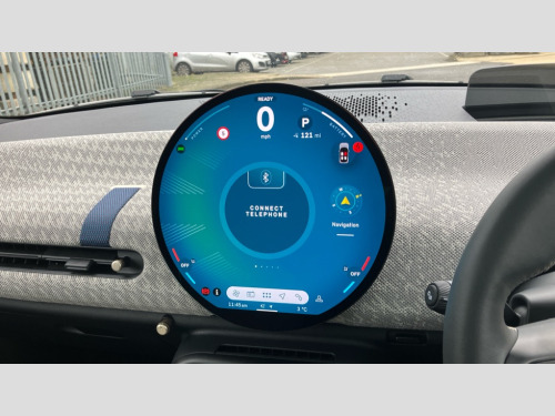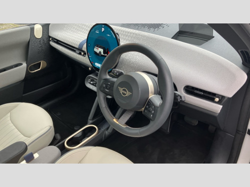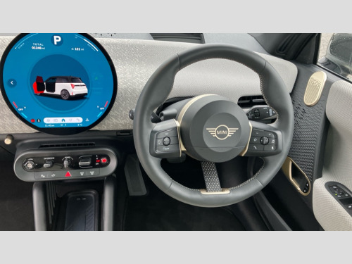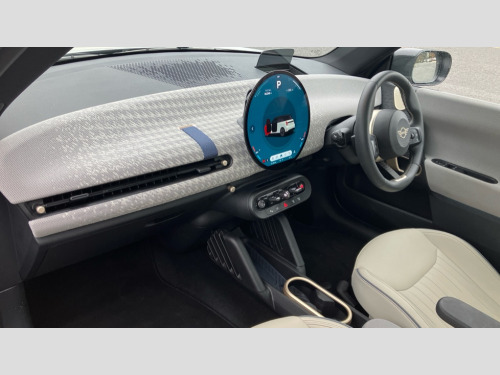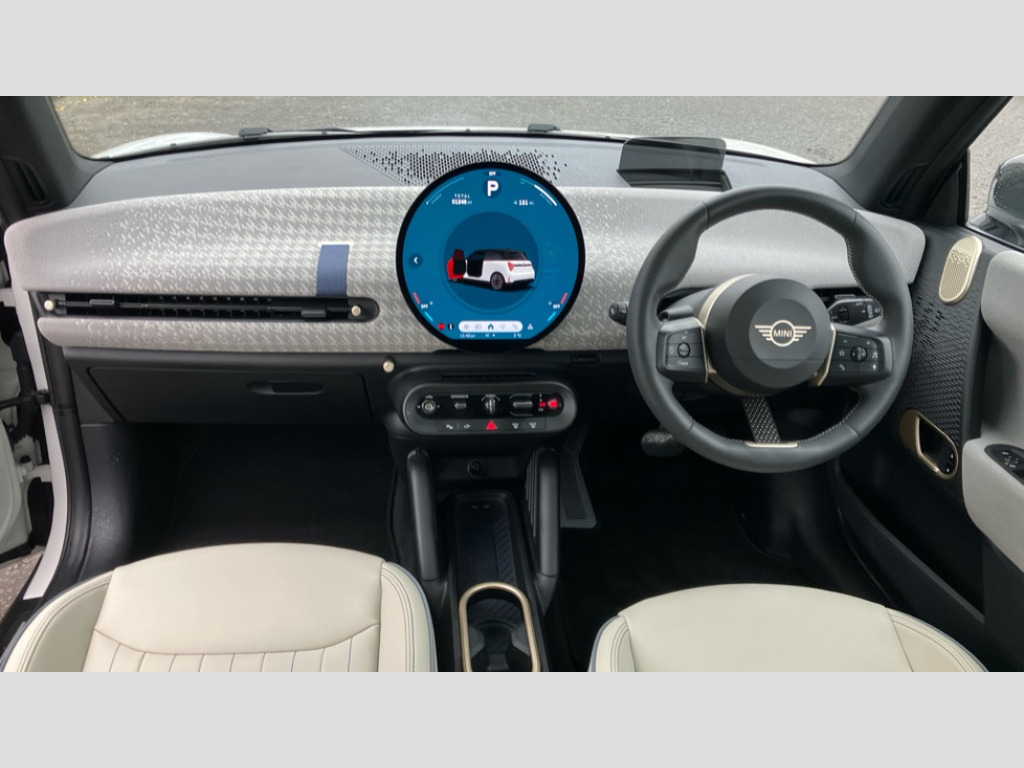 MINI Cooper 160kW SE Exclusive 54kWh 3dr Auto Central toggle bar, Circular OLED Screen, Compatible mobile phone bluetooth with audio streaming, Cruise control, Digital instrument cluster, Electro-mechanical speed dependant steering assistance, Emergency call service, MINI Experience Modes, Mini navigation system, On board computer, Service interval indicator, Tailgate, 11kW AC charging, Automatic transmission, DC Rapid charging, Mode 3 cable, DAB Digital radio, Personal eSim, Adaptable light signatures, Auto headlights, Body coloured wheel arches, Electric adjustable heated door mirrors, Electric front+rear windows, Heated rear window, Heated windscreen washer jets, LED 3rd brake light, LED daytime running lights, LED indicator lights, LED rear lights, Logos in Vibrant Silver, Rain sensor window wipers, Rear fog lights, Rear window wiper, Vibrant silver grille surround, 2 seat bench in second row, 2 zone automatic air conditioning, 60/40 rear seat bench, Ambient lighting, Cupholders, Dark headliner, Fabric strap as 3rd spoke, Floor mats, Front and rear head restraints, Front compact armrest, Heated steering wheel, Height adjustable passenger seat, Lidded storage box in grey knit, Luggage compartment lighting, Single front passenger seat, Sport Vescin Steering Wheel, Sunvisors with vanity mirrors, Vescin synthetic leather upholstery includes dash knit in beige with grey accents, Driving assistant pack - Cooper Hatchback, Level 1 pack - Mini Hatchback, Park assistant pack - Cooper Hatchback, 3 point seatbelts on all four seats, 6 Airbags - front, side, head and seat belt tensioners, Acoustic pedestrian protection, Anti-lock braking system (ABS), DSC - Dynamic Stability Control, Electronic parking brake, Front and rear disc brakes, Front ISOFIX (iSize), Front passenger airbag deactivation, Traction control, Tyre pressure monitoring system, Alarm, Immobiliser, Remote central locking, Blue decorative dash strap, Light Beige/Grey dash knit, Tyre repair kit