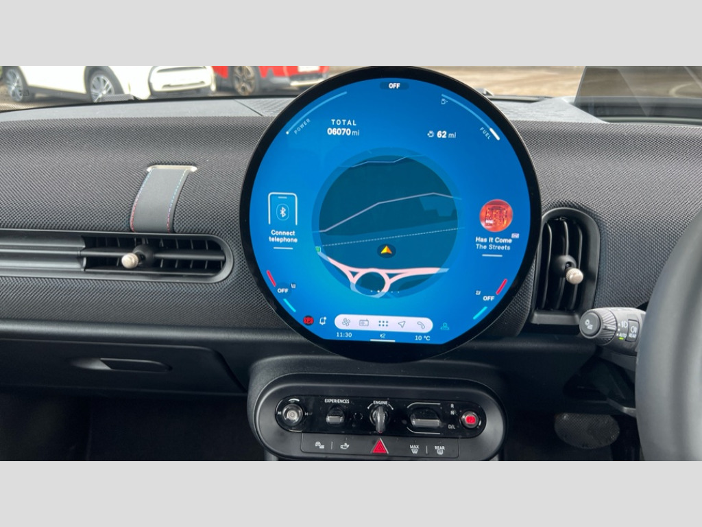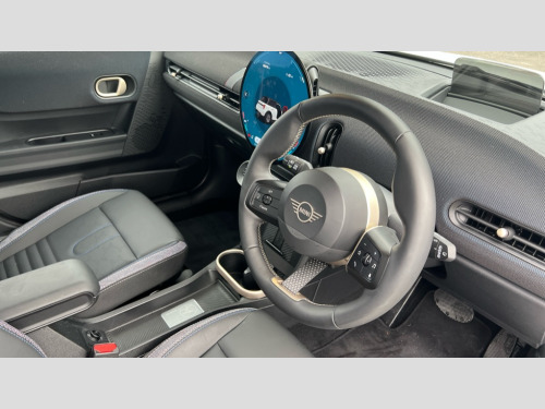 MINI Cooper 1.5 C Classic 5dr Auto Central toggle bar, Circular OLED Screen, Compatible mobile phone bluetooth with audio streaming, Cruise control, Digital instrument cluster, Electro-mechanical speed dependant steering assistance, Emergency call service, MINI Experience Modes, Mini navigation system, On board computer, Service interval indicator, Tailgate, 7 speed steptronic transmission with double clutch, DAB Digital radio, Personal eSim, Auto headlights, Electric adjustable heated door mirrors, Electric front+rear windows, Heated rear window, Heated windscreen washer jets, LED 3rd brake light, LED daytime running lights, LED Headlights, LED indicator lights, LED rear lights, Rain sensor window wipers, Rear fog lights, Rear side wing doors, Rear window wiper, 2 zone automatic air conditioning, 3 seat bench in 2nd row, 60/40 rear seat bench, Ambient lighting, Cupholders, Front and rear floor mats, Front and rear head restraints, Front compact armrest, Heated steering wheel, Height adjustable passenger seat, Light headliner, Luggage compartment lighting, Single front passenger seat, Sport Vescin Steering Wheel black with vibrant silver accents, Sunvisors with vanity mirrors, Vescin/Cloth upholstery includes dash knit in black with blue accents, Driving assistant pack - Cooper Hatchback, Park assistant pack - Cooper Hatchback, 3 point seatbelts on all five seats, 6 Airbags - front, side, head and seat belt tensioners, Anti-lock braking system (ABS), Child locks on rear doors, DSC - Dynamic Stability Control, Electronic parking brake, Front and rear disc brakes, Front ISOFIX (iSize), Front passenger airbag deactivation, Traction control, Tyre pressure monitoring system, Alarm, Immobiliser, Remote central locking, Tyre repair kit