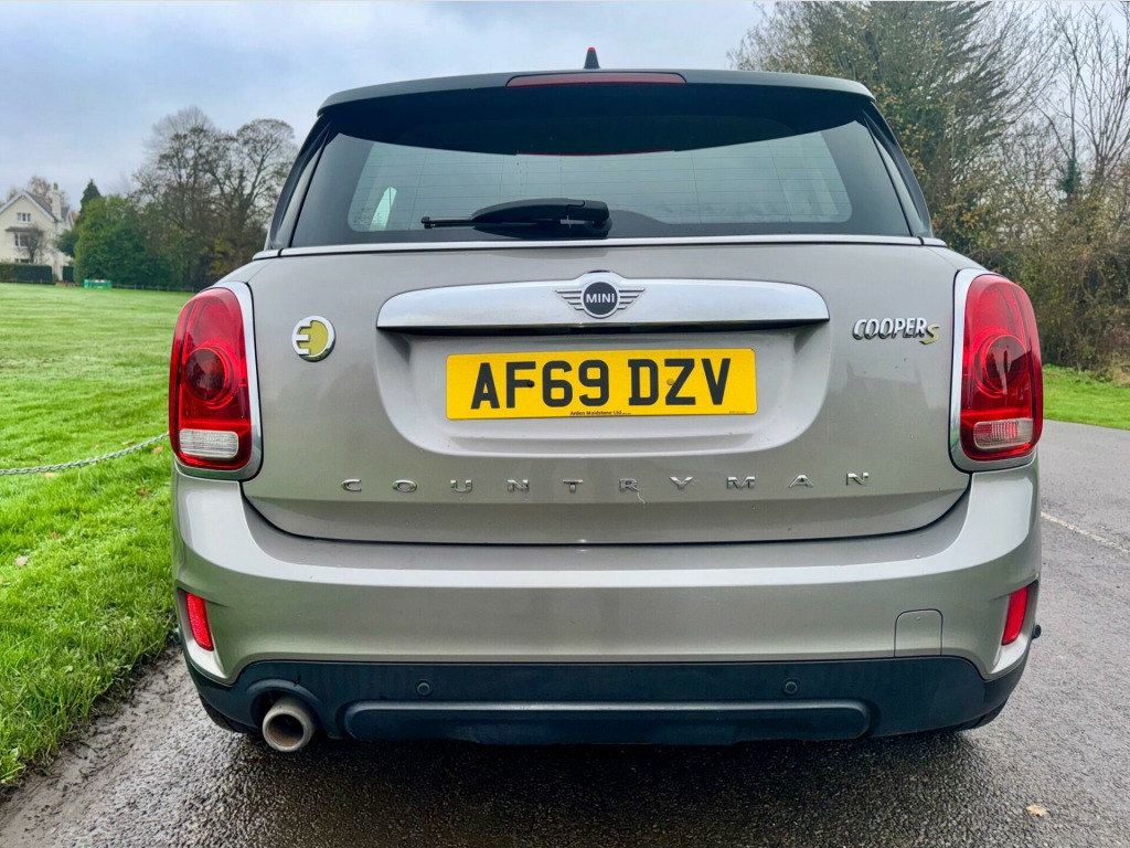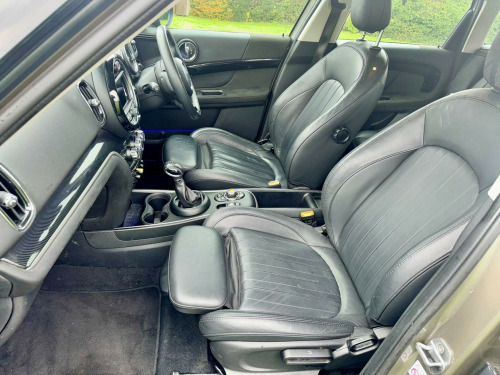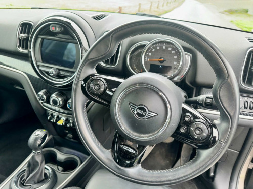 This 2019 MINI Countryman Cooper SE Exclusive boasts exceptionally low mileage for its age, having covered just 42,000 miles. This four wheel drive plug in hybrid model features a 1.5 litre petrol engine and meets Euro 6 emission standards. It comes equipped with stylish black bonnet stripes and practical black roof rails. Inside, you'll find a comprehensive navigation pack that includes Apple CarPlay, along with Bluetooth connectivity for compatible mobile phones, offering seamless audio streaming. The convenience of a rain sensor and automatic headlight activation further enhances the driving experience.The Cooper SE Exclusive trim level signifies a superior offering within the MINI Countryman range. Its plug in hybrid technology provides an efficient and versatile driving experience, combining electric power with a petrol engine for flexibility. The four wheel drive system ensures confident handling in various conditions. These carefully selected features, from the integrated navigation and Bluetooth to the automatic lighting and rain sensing wipers, demonstrate a thoughtful specification designed to enhance both comfort and practicality for everyday journeys. nnet stripes - black, roof rails - black, acoustic pedestrian protection, roof and mirror caps - black, mini yours lounge leather - carbon black, 18in alloy wheels - pair spoke, bluetooth for compatible mobile phone - with audio streaming, 3 point seatbelts on all seats, 4 lashing eyes in luggage compartment, 6 speakers system, active guard - automatic emergency braking, airbags, anti-lock braking system - abs, auto drive away locking, 12v socket in centre console, charging cable, charging flap on front left lower a-panel, chrome highlights, chrome line exterior, chrome line interior, colour line - carbon black, cruise control with brake function, daytime driving lights, dead-locking function, door sill strips - metal with cooper s, door storage compartments, dynamic brake lights, dynamic stability control - dsc, electric windows, electro-mechanical steering with speed dependant steering assistance, electronic handbrake, electronic vehicle immobiliser, fm tuner and dab digital radio, folding rear seats 40-20-40, glove compartment, heated rear window, heated windscreen washer jets, instrument cluster, interior lighting, interior lighting - including reading lights, interior trim - mini yours - piano black illuminated, led reading lights - vanity mirror lights - front footwell lights - spotlights on front seats, leather gearshift lever and handbrake gaiters, mini driving modes, mini e-call, mini excitement pack, mini teleservices, mini yours leather steering wheel, mechanical seat adjustment, model logo, multifunction controls for steering wheel, navigation pack, on-board computer, passenger seat height adjustable, performance control, radiator grille - chrome border with honeycomb structure - including s badge, rain sensor and automatic headlight activation, rear fog light, rear isofix, rear parking distance control, rear window wiper, roof rails - silver, roof and mirror caps - body-colour, security locking wheel bolts, side scuttle panels with integrated indicators, start-stop toggle including keyless go, steering column height and length adjustment, sun visor with vanity mirrors, sun-heat protection glass, tool kit in luggage compartment, twin exhaust tailpipes, tyre pressure monitoring system, white direction indicators lights, edrive button, alarm system, spare key, fsh