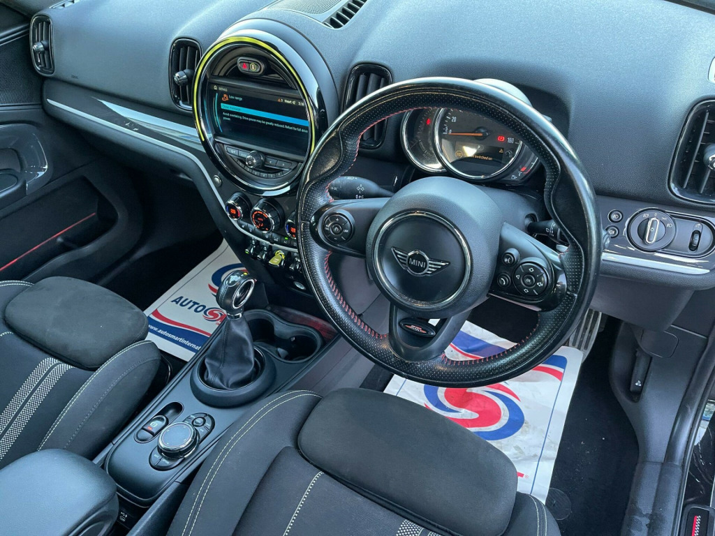 This 2018 MINI Countryman Cooper SE presents a unique opportunity, having been cherished by only one owner from new. This four wheel drive plug in hybrid boasts a 1.5 litre petrol engine and meets Euro 6 emissions standards. It comes with a comprehensive full service history, with the last service completed on 31 October 2025 at 72,629 miles. For your peace of mind, a 12 month MOT will be provided upon purchase, and the vehicle is covered by a 3 month warranty. Notable features include the sporty John Cooper Works Sport Pack and roof spoiler, alongside interior and exterior mirrors with automatic anti-dazzle function.The Navigation Plus Pack, which includes Apple CarPlay and Bluetooth connectivity, ensures you stay connected and on course. Further enhancing convenience is the enhanced Bluetooth system with wireless charging for your phone. These carefully selected features, combined with the vehicle's single owner provenance and meticulous servicing, demonstrate a level of care and specification that sets this MINI Countryman apart from others.12-24 Months AA Warranty Upgrade Available. All Cars, Vans Come with 12 Months Mot Service and Safety checked.. 12 Volt Socket in Front Centre Console, 17in Alloy Wheels - Imprint Spoke, 3 Point Seatbelts on all Seats, 3rd Brake Light, Air Conditioning - Manual, Airbags, Alarm and Immobiliser - Thatcham CAT 1, Anti-Lock Braking System - ABS, Body Coloured Fuel Filler Cap in Rear Right Side Panel, Brake System, Brand Logo Mini, CBC - Cornering Brake Control, Charger Cable Mode 2, Charging Flap in Side Wall - Front Left, Child Seat ISOFIX Attachment, Chrome Contents Exterior, Chrome Contents Interior, Circulating Stainless Steel Waist Seal Finishers, Colour Line - Carbon Black, Condition Based Service, Crash Sensor, Cruise Control with Brake Function, Cupholders - Two in Front Centre Console, DAB Tuner, Daytime Driving Lights, Door Sill Finishers - Metal Look and Model Dependent Lettering, Driving Dynamic Control Systems, Dynamic Brake Lights, Dynamic Stability Control - DSC, EBD - Electronic Brake-Force Distribution, Electric Windows, Electronic Power Steering, Electronic Vehicle Immobiliser, Exhaust Tailpipe - Left and Right with Chrome Finisher, Exterior Mirrors - Aspheric on Drivers Side - Electrically Adjustable, Foldable Rear Backrest 40:20:40, Gear Shift Recommendation, Gear knob - Leather Badge in Black High-gloss and Clasp in Chrome High-gloss, Gearshift-Selector Lever and Handbrake Lever Gaiters in Leatherette, Halogen Lights for Low Beam and High Beam Headlights, Headliner, Headrests - All Seats, Heat Protection - Sun Protection Glazing, Heated Front Windscreen Washer Jets, Heated Rear Window, Heated Windscreen Washer Jets, Instrument Cluster, Interior Light Pack, Interior Mirror - Mechanical Anti-Dazzle, Interior Trim - Hazy Grey, Lashing Eyes in Luggage Compartment, Locking System with Central Locking, MINI Driving Modes, MINI Excitement Pack, Mechanical Seat Adjustment for Drivers Seat and Passengers Seat, Mirror Caps in Body Colour, Model Logo Countryman in Chrome, Multifunction Controls for Steering Wheel, Navigation Pack, On-Board Computer, PDC - Park Distance Control - Rear, Passenger Seat Height Adjustable, Pedals - Rubberised Pad, Performance Control, Personal Profile, Radiator Grille - Chrome Border with Honeycomb Structure in Matt Black with Yellow S Logo, Radio MINI, Rain Sensor and Automatic Headlight Activation, Rear Fog Light, Rear Lights - LED, Rear Window Wiper, Roof Rails - Silver, Roof Spoiler Painted in Roof Colour, Roof in Body Colour, Runflat Indicator, Security Locking Wheel Bolts, Side Scuttle Frame Chrome-plated with MINI E Logo and Integrated Turn Indicator, Sills - Bumper Edges - Wheel Arch Cover in Black Band in Matt Black, Speakers - 2 Central Bass Speakers under the Front Seats, Speakers - 4 Broadband Speakers in the Trim Panels of Each Front and Rear Door, Sport Leather Steering Wheel, Sport Seats for Driver and Front Passenger, Start-Stop Toggle including Keyless Go, Steering Column Adjustment - Infinitely Variable in Height and Length, Storage Options, Tailgate Gas Struts Assist When Opening and Holding In An Opened Position, Tailgate Handle - High Gloss Black, Tool Kit in Luggage Compartment, Two-Tone Horn, Tyre Pressure Indicator, Visual Boost Radio, White Indicators, eDrive Button, John Cooper Works Sport Pack, Navigation Plus Pack, LED Headlights with Cornering Lights, Enhanced Bluetooth with Wireless Charging, John Cooper Works Leather Steering Wheel, Air Conditioning - Automatic Dual Zone, Interior and Exterior Mirrors with Automatic Anti-Dazzle Function, Comfort Access System, Seat Heating for Driver and Front Passenger, Electrically Folding Exterior Mirrors, Storage Compartment Pack, Anthracite Headlining, John Cooper Works Roof Spoiler, Auto-Dimming Interior Rear View Mirror, Front Centre Armrest, Acoustic Pedestrian Protection, 18in Alloy Wheels - JCW Thrill Spoke Anthracite, John Cooper Works Sport Seats, Parking Assistant, Tyre Repair Kit, Dinamica-Cloth - Carbon Black. Full service history