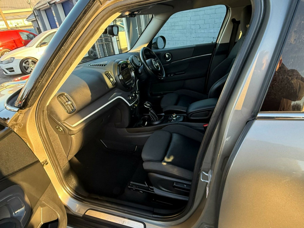 Discover this 2017 MINI Countryman Cooper SE, a distinctive plug in hybrid that offers an engaging driving experience. This four wheel drive model boasts a 1.5 litre petrol hybrid engine and meets Euro 6 emissions standards. It comes equipped with the desirable CHILI Pack, which includes automatic climate control, LED headlights with cornering lights, keyless entry, and heated seats for both driver and front passenger. Further enhancing its appeal is the Comfort Access System, also providing keyless entry, and stylish 18 inch Pin Spoke alloy wheels.The inclusion of the CHILI Pack and Comfort Access System signifies a higher specification, offering greater convenience and comfort compared to many other MINI Countryman models. The LED headlights with cornering lights provide excellent visibility, while the seat heating ensures a pleasant journey in all conditions. This MINI Countryman Cooper SE is a well appointed vehicle designed for those seeking a blend of practicality, efficiency, and MINI's signature driving fun. in alloy wheels - light spoke, 3 point seatbelts on all seats, 3rd brake light, air conditioning - manual, airbags for driver and front passenger, alarm and immobiliser - thatcham cat 1, anti-lock braking system - abs, bluetooth hands free function with usb audio, body coloured fuel filler cap in rear right side panel - linked to central locking, brake pad wear indicator, charger cable mode 2, charging flap in side wall - front left, child seat isofix attachment, chrome bezels around rear lights and headlights, colour line - carbon black, condition based service, crash sensor, cruise control with brake function, cupholders - two in front, dab tuner, dtc - dynamic traction control with edlc - electronic differential lock control, daytime driving lights, decorative rings surrounding round instruments in chrome plated, door handles - chrome plated, door handles - interior - chrome plated, door sill finishers - metal look and model dependent lettering, dynamic brake lights and 3rd brake light in led technology in roof spoiler, dynamic stability control - dsc, electronic parking brake, embellisher at bottom edge of all windows - chrome plated, engine scoop in body colour, exhaust tailpipe - visible - single - round with chrome finisher, exterior mirrors - aspheric on drivers side - electrically adjustable, external visible vin, floor mats, foldable rear backrest 40:20:40, follow me home function, front centre armrest, front fog lights, front passenger isofix and airbag de-activation switch, fuel pump automatic cut-off in crash situation, gearshift-selector lever and handrake lever gaiters in sensatec, halogen lights for low beam and high beam headlights, headlight - beam-throw control electrical with manual adjustment, headliner - satellite grey, headrests for all seats - manually adjustable, heated mirrors and windscreen washer jets, heated rear window with automatic deactivation, heater with mechanical control and recirculating-air button, intelligent emergency calling - e-call, interior light pack, interior lights - integrated into centre front headliner and centre light in headlining, interior mirror - mechanical anti-dazzle, interior trim - hazy grey, lashing eyes in luggage compartment, locking system with central locking, mini central display with led ring, mini connected, mini driving modes, mini excitement pack, mini mobility system, mini navigation system, mini teleservices, minimalism fuel saving technology, mechanical seat adjustment for drivers seat and passengers seat, microfilter, mirror caps in body colour, model logo countryman in chrome, multifunction controls for steering wheel, multiple-control-arm rear axle, non smoker package, on-board computer, pdc - park distance control - rear, passenger seat height adjustable, performance control, personal profile, power steering with servotronic, radiator grille - chrome border with honeycomb structure in matt black with red s logo, rain sensor and automatic headlight activation, rear fog light, rear window wiper, revolution counter, roof rails - silver, roof spoiler painted in roof colour, roof in body colour, security locking wheel bolts, side scuttles chrome-plated with red s lettering with integrated direction indicator white, sills-bumper edges-wheel arches - black with model-specific bumper trims, single joint spring strut front axle, speakers - four mid range in front and rear doors and two woofers under front seats, speedometer on steering column, sport leather steering wheel, sport seats for driver and front passenger, start-stop button with keyless start, steering wheel column adjustment mechanically in height and length, storage options in the trim panels of each front and rear side panel as well as centre console, sun visors with integrated vanity mirrors on drivers and passengers sides, tailgate gas struts assist when opening and holding in an opened position, tailgate handle - high gloss black, tool kit in luggage compartment, twin horns, tyre pressure indicator, visual boost radio, white indicators, window lifts electrical, edrive button, chili pack, led headlights with cornering lights, 18in alloy wheels - pin spoke, air conditioning - automatic dual zone, comfort access system, seat heating for driver and front passenger, storage compartment pack, acoustic pedestrian protection, john cooper works sport seats, roof and mirror caps - black, tyre repair kit, cloth-leather combination cord - carbon black