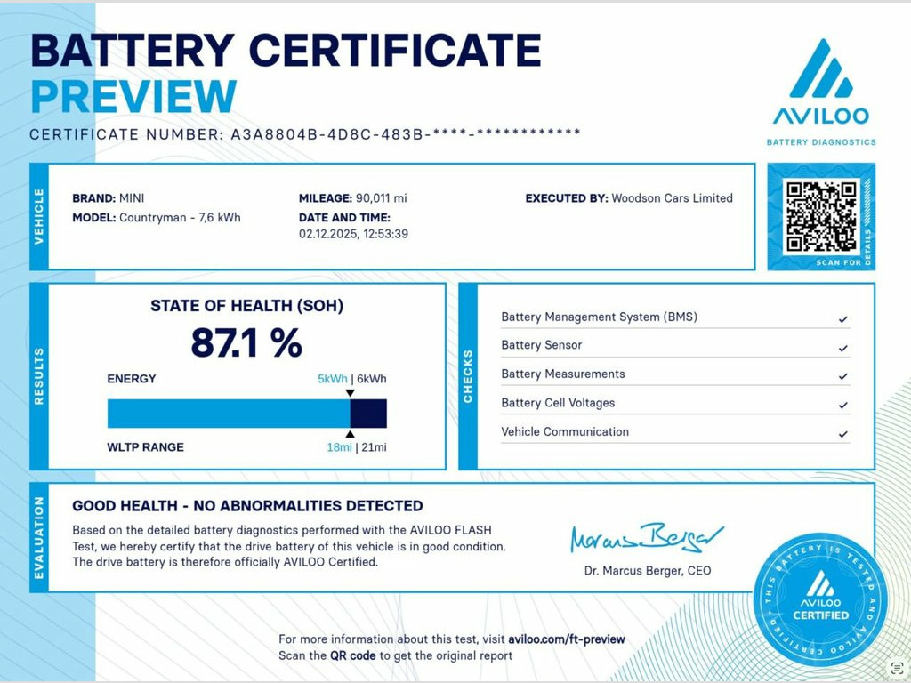 Finance Soft Search Pre Approval. This Mini Countryman 1.5 Cooper SE Petrol Plug in Hybrid 7.6kWh Auto ALL4 Euro 6 (224bhp) has covered 90,000 miles in black with black heated interior. BMW service records at 19k, 34k, 43k, 66k, 82k. Sat nav, DAB radio, bluetooth, isofix, parking sensors, privacy glass, cruise control + much more. *MAIN DEALER PART EXCHANGE* Warranty included. VOSA Mileage History Checked and HPI Clear. Vehicle has received an independent health check with report ++ Any inspection is more than welcome ++ Nationwide Delivery Service Available ++ Credit/Debit Card Accepted ++ Approved Finance Partner with Consumer Credit Licence ++ Call/Message anytime including evenings ++ Facetime/Video Call Available Around Your Schedule ++ Warranty Included. Late Night Appointments Available. Woodson Cars, Manchester. 01618509848 (For Sat Nav use Postcode M44 5AH) 12 Volt Socket in Front Centre Console, 17in Alloy Wheels - Imprint Spoke, 3 Point Seatbelts on all Seats, 3rd Brake Light, Air Conditioning - Manual, Airbags, Alarm and Immobiliser - Thatcham CAT 1, Anti-Lock Braking System - ABS, Body Coloured Fuel Filler Cap in Rear Ri, Brake System, Brand Logo Mini, CBC - Cornering Brake Control, Charger Cable Mode 2, Charging Flap in Side Wall - Front Left, Child Seat ISOFIX Attachment, Chrome Contents Exterior, Chrome Contents Interior, Circulating Stainless Steel Waist Seal F, Colour Line - Carbon Black, Condition Based Service, Crash Sensor, Cruise Control with Brake Function, Cupholders - Two in Front Centre Console, DAB Tuner, Daytime Driving Light