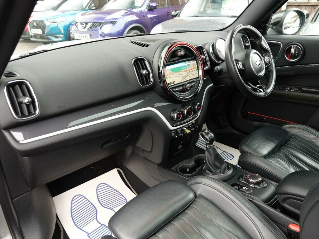 This 2019 MINI Countryman Cooper SE boasts a full service history, with its last service completed on 12th December 2025 at 60,322 miles, offering excellent provenance. This four wheel drive, Euro 6 compliant plug in hybrid model features a 1.5 litre petrol engine and comes with a clear vehicle history check. It is equipped with the desirable John Cooper Works Chili Pack, which includes climate control, LED headlights, and keyless entry. Further enhancing its appeal are electric seat adjustment with driver memory function, the Navigation Plus Pack with Apple CarPlay and Bluetooth, and a panoramic electric glass sunroof, Power and gesture control tailgate, Heated Leather, Adaptive cruise control, Automatic LED Headlamps, Reversing Camera and a lot more. The interior is finished with a MINI Yours Sport leather steering wheel.This MINI Countryman Cooper SE offers a compelling package, with its comprehensive service history and desirable specification setting it apart. The inclusion of the John Cooper Works Chili Pack, Navigation Plus Pack, and electric seat adjustment with memory function demonstrates a higher level of comfort and technology compared to many other vehicles. A 12 month MOT will be provided on purchase, and the vehicle is covered by a 3 month warranty, providing peace of mind for its new owner. hn cooper works chili pack, navigation plus pack, led headlights with cornering lights, seat adjustment - electric with driver memory function, driving assistant pack, panoramic electric glass sunroof, 19in alloy wheels - jcw course spoke with run-flat, harman kardon hi-fi system, mini yours sport leather steering wheel, enhanced bluetooth with wireless charging, air conditioning - automatic dual zone, interior and exterior mirrors with automatic anti-dazzle function, automatic operation of tailgate, comfort access system, rear view camera, darkened rear glass, seat heating for driver and front passenger, centre armrest in rear, electrically folding exterior mirrors, storage compartment pack, anthracite headlining, john cooper works roof spoiler, auto-dimming interior rear view mirror, chrome line interior, front centre armrest, heated front windscreen, acoustic pedestrian protection, acc - active cruise control, parking assistant, roof and mirror caps - black, mini yours lounge leather - carbon black - carbon black, 12 volt socket in front centre console, 17in alloy wheels - imprint spoke, 3 point seatbelts on all seats, 3rd brake light, air conditioning - manual, airbags, alarm and immobiliser - thatcham cat 1, anti-lock braking system - abs, body coloured fuel filler cap in rear right side panel, brake system, brand logo mini, cbc - cornering brake control, charger cable mode 2, charging flap in side wall - front left, child seat isofix attachment, chrome contents exterior, chrome contents interior, circulating stainless steel waist seal finishers, colour line - carbon black, condition based service, crash sensor, cruise control with brake function, cupholders - two in front centre console, dab tuner, daytime driving lights, door sill finishers - metal look and model dependent lettering, driving dynamic control systems, dynamic brake lights, dynamic stability control - dsc, ebd - electronic brake-force distribution, electric windows, electronic power steering, electronic vehicle immobiliser, exhaust tailpipe - left and right with chrome finisher, exterior mirrors - aspheric on drivers side - electrically adjustable, foldable rear backrest 40:20:40, gear shift recommendation, gear knob - leather badge in black high-gloss and clasp in chrome high-gloss, gearshift-selector lever and handbrake lever gaiters in leatherette, halogen lights for low beam and high beam headlights, headliner, headrests - all seats, heat protection - sun protection glazing, heated front windscreen washer jets, heated rear window, heated windscreen washer jets, instrument cluster, interior light pack, interior mirror - mechanical anti-dazzle, interior trim - hazy grey, lashing eyes in luggage compartment, locking system with central locking, mini driving modes, mini excitement pack, mechanical seat adjustment for drivers seat and passengers seat, mirror caps in body colour, model logo countryman in chrome, multifunction controls for steering wheel, navigation pack, on-board computer, pdc - park distance control - rear, passenger seat height adjustable, pedals - rubberised pad, performance control, personal profile, radiator grille - chrome border with honeycomb structure in matt black with yellow s logo, radio mini, rain sensor and automatic headlight activation, rear fog light, rear lights - led, rear window wiper, roof rails - silver, roof spoiler painted in roof colour, roof in body colour, runflat indicator, security locking wheel bolts, side scuttle frame chrome-plated with mini e logo and integrated turn indicator, sills - bumper edges - wheel arch cover in black band in matt black, speakers - 2 central bass speakers under the front seats, speakers - 4 broadband speakers in the trim panels of each front and rear door, sport leather steering wheel, sport seats for driver and front passenger, start-stop toggle including keyless go, steering column adjustment - infinitely variable in height and length, storage options, tailgate gas struts assist when opening and holding in an opened position, tailgate handle - high gloss black, tool kit in luggage compartment, two-tone horn, tyre pressure indicator, visual boost radio, white indicators, edrive button