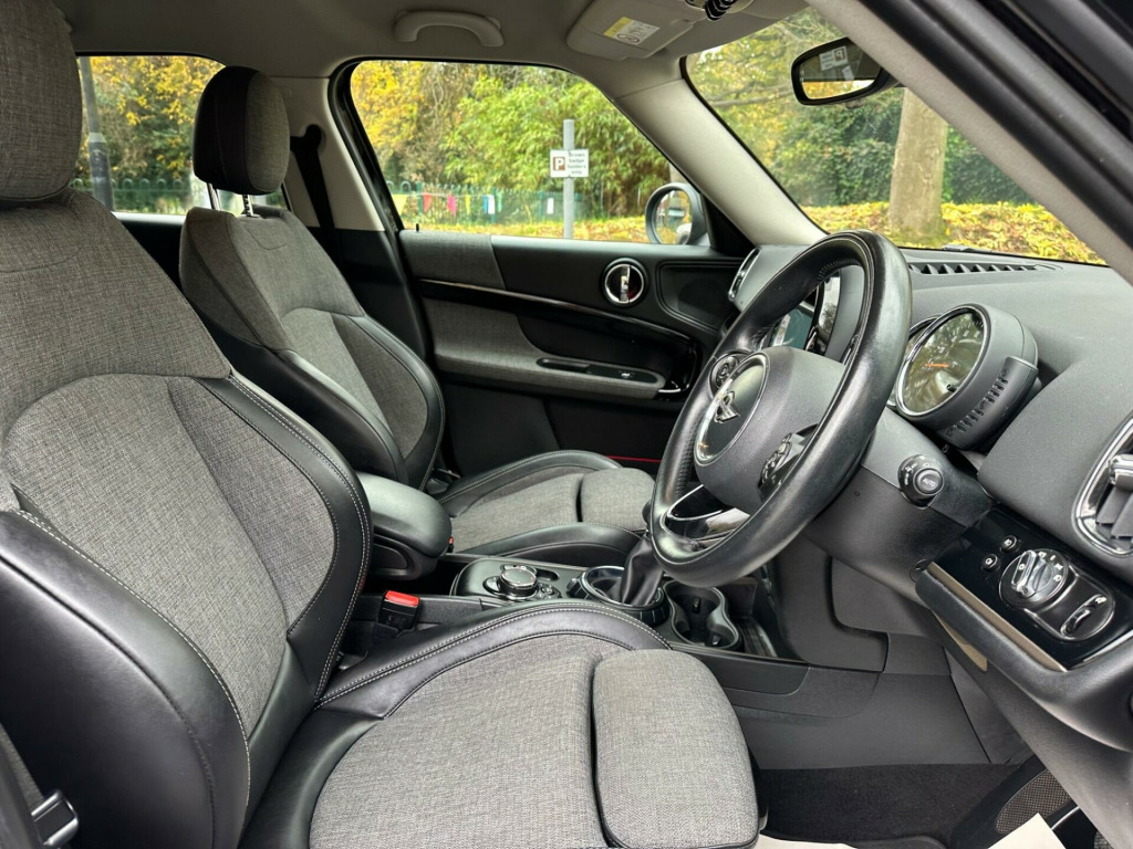 Please call for finance, 6 month warranty included, MOT November 2026, Front and rear parking sensors, Satellite navigation, Bluetooth connectivity with audio playback, Rain sensing wipers, Automatic headlight activation, Sports seats with Bolster Support, USB Connectivity, Dual climate control, Voice control, Cruise control, Bluetooth connectivity, Sun protection glass, Electric mirrors, Electric windows, Remote central locking, ULEZ Compliant, ULEZ Exempt, Euro 6, We are an AA Approved Dealer, This car has been checked by trained technicians and passed a multi-point inspection. All our cars come with a 12 Months free AA Membership as well as a free History Check. Finance options available with no administration fee and low interest rates, subject to status. Please ring for details. Part Exchange Welcome. Extended Warranties Available. HPI Clear, All major cards accepted, Nationwide delivery available, 5 Day drive-away insurance available; T's & C's apply ili pack, led headlights with cornering lights, 17in alloy wheels - channel spoke with run-flat, enhanced bluetooth with wireless charging, air conditioning - automatic dual zone, comfort access system, sliding rear seat bench, darkened rear glass, seat heating for driver and front passenger, mini driving modes, electrically folding exterior mirrors, storage compartment pack, interior surfaces - piano black, chrome line interior, john cooper works sport seats, black pearl cloth-leatherette - carbon black - carbon black, 16in alloy wheels - revolite, 3 point seatbelts on all seats, 3rd brake light, air conditioning - manual, airbags for driver and front passenger, alarm and immobiliser - thatcham cat 1, anti-lock braking system - abs, bluetooth hands free function with usb audio, body coloured fuel filler cap in rear right side panel - linked to central locking, brake pad wear indicator, child seat isofix attachment, chrome bezels around rear lights and headlights, colour line - carbon black, condition based service, crash sensor, cruise control with brake function, cupholders - two in front, dab tuner, dtc - dynamic traction control with edlc - electronic differential lock control, daytime driving lights, decorative rings surrounding round instruments in chrome plated, door handles - chrome plated, door handles - interior - chrome plated, door sill finishers - metal look and model dependent lettering, dynamic brake lights and 3rd brake light in led technology in roof spoiler, dynamic stability control - dsc, electronic parking brake, embellisher at bottom edge of all windows - chrome plated, exhaust tailpipe - visible - single - round with chrome finisher, exterior mirrors - aspheric on drivers side - electrically adjustable, external visible vin, floor mats, foldable rear backrest 40:20:40, follow me home function, front centre armrest, front fog lights, front passenger isofix and airbag de-activation switch, fuel pump automatic cut-off in crash situation, gearshift-selector lever and handrake lever gaiters in sensatec, halogen lights for low beam and high beam headlights, headlight - beam-throw control electrical with manual adjustment, headliner - satellite grey, headrests for all seats - manually adjustable, heated mirrors and windscreen washer jets, heated rear window with automatic deactivation, heater with mechanical control and recirculating-air button, intelligent emergency calling - e-call, interior light pack, interior lights - integrated into centre front headliner and centre light in headlining, interior mirror - mechanical anti-dazzle, interior trim - hazy grey, lashing eyes in luggage compartment, locking system with central locking, mini central display with led ring, mini connected, mini excitement pack, mini mobility system, mini navigation system, mini teleservices, minimalism fuel saving technology, mechanical seat adjustment for drivers seat and passengers seat, microfilter, mirror caps in body colour, model logo countryman in chrome, multifunction controls for steering wheel, multiple-control-arm rear axle, non smoker package, on-board computer, pdc - park distance control - rear, passenger seat height adjustable, personal profile, power steering with servotronic, radiator grille - chrome border and three slats in black high-gloss, rain sensor and automatic headlight activation, rear fog light, rear window wiper, revolution counter, roof rails - silver, roof spoiler painted in roof colour, roof in body colour, security locking wheel bolts, side scuttles black with integrated direction indicator white, sills-bumper edges-wheel arches - black with model-specific bumper trims, single horn, single joint spring strut front axle, speakers - four mid range in front and rear doors and two woofers under front seats, speedometer on steering column, sport leather steering wheel, standard seat for driver and front passenger, start-stop button with keyless start, steering wheel column adjustment mechanically in height and length, storage options in the trim panels of each front and rear side panel as well as centre console, sun visors with integrated vanity mirrors on drivers and passengers sides, tailgate gas struts assist when opening and holding in an opened position, tailgate handle - high gloss black, tool kit in luggage compartment, tyre pressure indicator, visual boost radio, white indicators, window lifts electrical