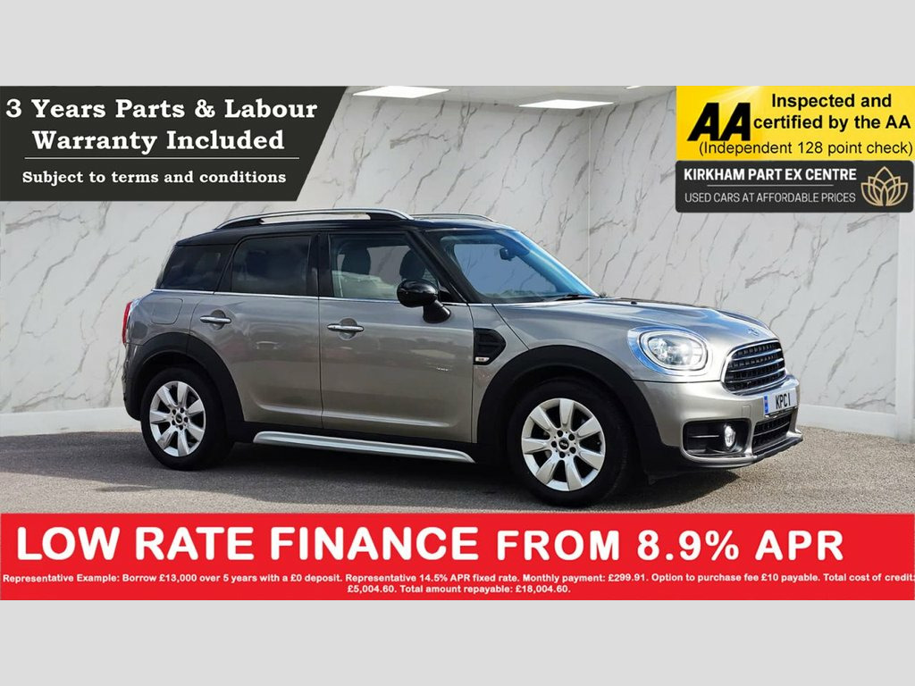 2017 MINI Countryman 1.5 Cooper ALL4 | Silver | £9,695 | Pan Roof | ULEZ Compliant | Warranty | Nil Deposit Finance | AA Inspected  Overview  2017 MINI Countryman 1.5 Cooper ALL4 SUV ~100,674 Miles | 2 Former Keepers | 2 Keys ULEZ Compliant Euro 6 Petrol (136PS) | 6-Speed Manual Finished in Sharp Silver Metallic | Excellent Condition Over £8,000 in Optional Extras MOT Valid Until October 2026 128-Point AA Inspection Completed 12-Month Nationwide Warranty & AA Breakdown Cover  Description  MINI's signature charm meets SUV practicality in this 2017 MINI Countryman Cooper ALL4, finished in Sharp Silver with an outstanding specification list. With just two previous owners and a comprehensive history, it's a well-kept, straight example that's ready to drive away today.  Powered by the 1.5-litre Euro 6 petrol engine (136PS) and MINI's renowned ALL4 all-wheel drive, it blends spirited performance with year-round confidence — whether tackling city streets or Lancashire backroads. Fully ULEZ compliant, it's future-proof for driving through any Clean Air Zone without charge.  Specification Highlights  Over £8,000 of factory extras, including:  CHILI Pack  HDD Satellite Navigation System  Panoramic Glass Roof – bright, airy cabin feel  Rear Parking Sensors  Climate Control & Cruise Control  Multifunction Steering Wheel  ISOFIX Child Seat Points  17" Alloy Wheels & Privacy Glass  The bodywork and alloys present beaut 3 Point Seatbelts on all Seats, 3rd Brake Light, Air Conditioning - Manual, Airbags for Driver and Front Passenger, Alarm and Immobiliser - Thatcham CAT 1, Anti-Lock Braking System - ABS, Bluetooth Hands Free Function with USB A, Body Coloured Fuel Filler Cap in Rear Ri, Brake Pad Wear Indicator, Child Seat ISOFIX Attachment, Chrome Bezels around Rear Lights and Hea, Colour Line - Carbon Black, Condition Based Service, Crash Sensor, Cruise Control with Brake Function, Cupholders - Two in Front, DAB Tuner, DTC - Dynamic Traction Control with EDLC, Daytime Driving Lights, Decorative Rings Surrounding Round Instr, Door Handles - Chrome Plated, Door Handles - Interior - Chrome Plated, Door Sill