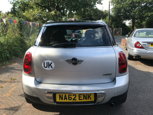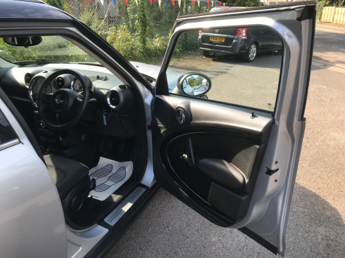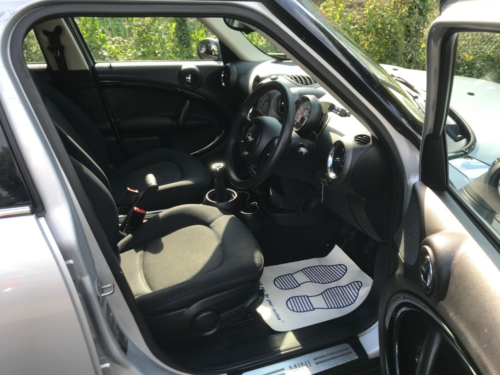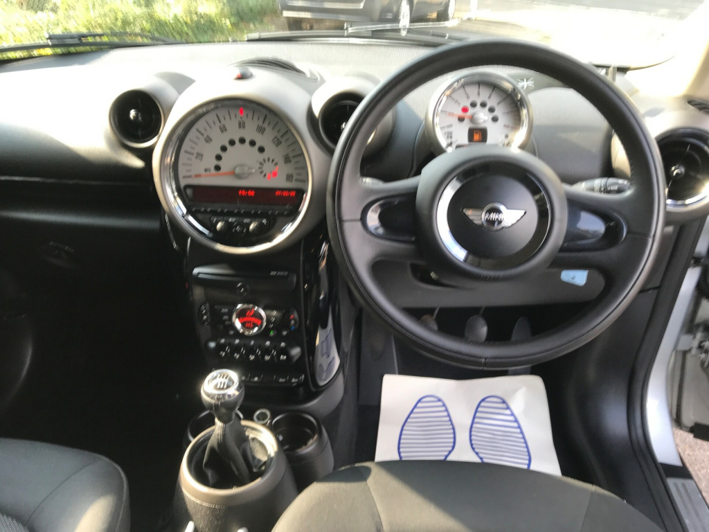 Retro styling of the Iconic MINI COUNTRYMAN, Cooper spec with all the usual refinements - Economic family motoring, only £195 per annum tax and 50 MPG - To be sold with New MOT and Service - Three year comprehensive Warranty available. ake fluid level warning light, brake pad wear indicator warning light, electric power steering, engine start/stop button, exterior temperature gauge, oil level indicator, rear park distance control, run flat indicator, service interval indicator, auxiliary input socket, dab digital radio, radio boost + single slot cd, anti dazzle mirror, bike rack preparation, body colour bumpers, chrome bezels around rear lights and headlights, chrome door handles, chrome exhaust tailpipe, chrome plated trim on bottom edge of window, chrome-plated radiator grille surround, electric front and rear windows + anti trap + one touch, electrically adjustable door mirrors, follow me home headlights, heated door mirrors/heated windscreen washers, heated rear window with automatic switch off, metal look door sill finishers, radiator grille in silver, rear wiper, silver roof rails, 2 cupholders in front centre console, 4 lashing points to secure luggage, 60/40 split sliding rear seats, adjustable headrests, boot light, centre console storage, chrome interior door handles, driver, driver/passenger sunvisors, front reading lights, front seat backrest storage nets, gear knob with chrome ring, gear/selector and handbrake in artificial leather, height/reach adjustable steering column, interior light, isofix child seat preparation, rear grab handles, side sunvisor for driver, storage compartments in doors, vanity mirrors, abs, automatic stability control (asc), cornering brake control (cbc), crash sensor - activates hazard/interior lighting + unlocks doors, driver and passenger airbags, driver and passenger side airbags, dsc - dynamic stability control, electronic brake force distribution, front head airbags, front seatbelt pretensioners with force limiters, hill start assist, passenger airbag deactivation system, tyre pressure warning, automatic door locking, electronic immobiliser, locking wheel bolts, remote central locking + boot release, second remote key, thatcham cat.1 alarm, 16'' Alloys