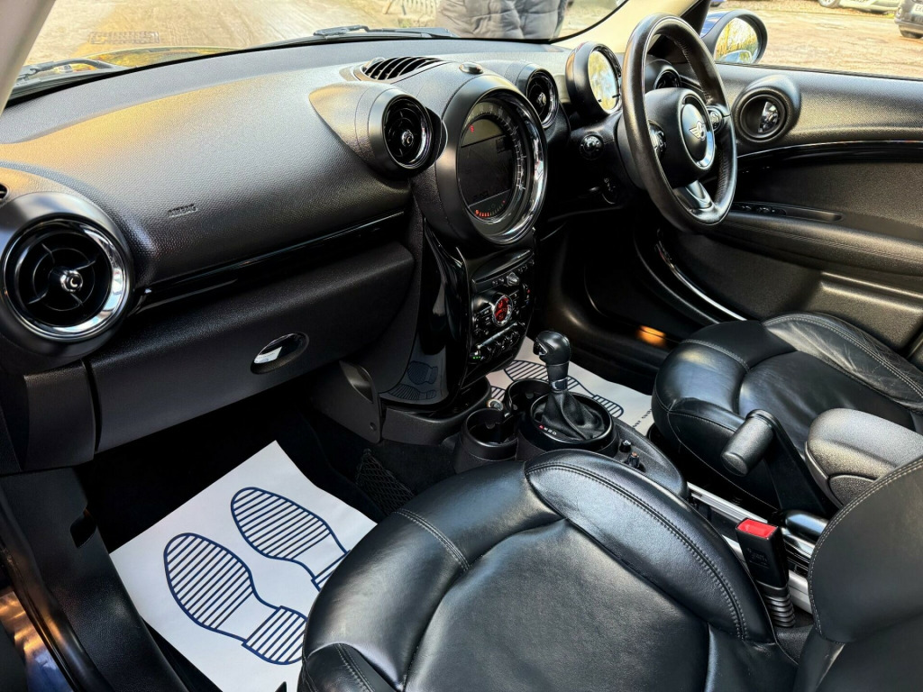 Discover this 2015 MINI Countryman Cooper, a stylish and practical choice for any driver. This Euro 6 compliant model boasts a responsive 1.6L petrol engine, ensuring an enjoyable driving experience. Inside, you'll find luxurious Gravity Leather upholstery in Carbon Black, complemented by a Panoramic Electric Glass Sunroof that floods the cabin with natural light. For convenience and connectivity, it features a MINI Navigation System, full Bluetooth telephone preparation with USB audio, and seat heating for both the driver and front passenger.The inclusion of these premium features, such as the opening panoramic sunroof and the advanced MINI Navigation System, sets this Countryman Cooper apart from other vehicles in its class. The heated seats offer added comfort during colder months, while the comprehensive Bluetooth system allows for seamless integration of your phone for calls and music. This MINI Countryman Cooper is designed to offer a refined and well equipped driving experience. ili pack, media pack, mini navigation system, panoramic electric glass sunroof, full bluetooth telephone preparation with usb audio, air conditioning - automatic, seats - sports front, seat heating for driver and front passenger, voice control, electrically folding exterior mirrors, mini connected, multifunction controls for steering wheel, darkened rear glass, 3-spoke sport leather steering wheel, door ellipse and downtubes - piano black, interior light pack, flat load floor, front centre armrest, rain sensor and automatic headlight activation, chrome line interior, run-flat tyres, storage compartment pack, white direction indicators lights, bluetooth telephone audio connection, interior world - carbon black, gravity leather - carbon black, 16in alloy wheels - 5-star single spoke light, 3rd brake light, asc+t - automatic stability control and traction, air conditioning - manual, airbags - driver, airbags - front passenger, airbags - front passenger with deactivation switch, airbags - front side, airbags - head, alarm - thatcham cat1, anti-lock braking system - abs, aux-in connection, basic bluetooth function with usb audio, bike rack preparation at rear, brake assist, brake pad wear indicator, cbc - cornering brake control, car jack, central bass hi-fi system, central locking - activated at 10mph, central locking - remote, centre rail, child seat isofix attachment, cooled glovebox, cupholders - two in front, dab tuner, door handles - chrome plated, door handles - interior - chrome plated, door mirrors - electrically adjustable and heated, dynamic stability control - dsc, ebd - electronic brake-force distribution, electric windows - one touch up and down front and rear, electronic power steering, embellisher at bottom edge of all windows - chrome plated, frame chrome-plated radiator-grille bars silver, grab handles, halogen lights for low beam and high beam headlights, headlight - beam-throw control electrical with manual adjustment, headlights - chrome bezels, headlights - follow me home, headlining - beige, heated front windscreen washer jets, hill assist, interior lights - integrated into centre front headliner including two reading lights, lashing eyes in luggage compartment, mini mobility system, minimalism fuel saving technology, microfilter, mirror caps in body colour, pdc - park distance control - rear, radio boost cd, roof rails - silver, roof in body colour, seats - 40:20:40 split rear backrests, seats - height adjustable drivers, second radio remote key, security locking wheel bolts, side scuttles with integrated indicators, steering column height and length adjustment, sun visors with integrated vanity mirrors on drivers and passengers sides, tpws - tyre pressure warning system