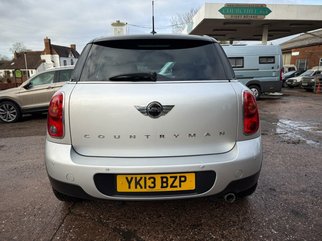 NEW CLUTCH + TIMING CHAIN in October 2023 with receipt. MOT 16th November 2026 and had 2 new rear tyres as they were advised. 3 RAC warranty included. Very high specification 4 wheel drive model that we took in part exchange from a repeat customer and offers great value for money. Hpi clear. This 2013 MINI Countryman Cooper D offers excellent peace of mind with its MOT valid until November 2026 and a clear vehicle history check. This four wheel drive model, featuring a 1.6L diesel engine, benefits from a partial service history, with the last service completed on 23 August 2025. It also comes with a 3 month warranty for added reassurance. Inside, youll find a refined cabin with Piano Black trim for the dashboard, door ellipses, and downtubes, complemented by electrically folding exterior mirrors and auto dimming interior and exterior rear view mirrors. Connectivity is enhanced with full Bluetooth telephone preparation and USB audio. This MINI Countryman Cooper D stands out with its impressive fuel economy, achieving a remarkable 58 miles per gallon, which indicates it is more economical than many similar vehicles. Furthermore, its low insurance group and low CO2 emissions highlight its cost effectiveness and environmental consideration compared to other cars in its class. CHRISTMAS CLOSURE 20/12/2025 to 04/01/2026 inclusive MERRY CHRISTMAS AND A HAPPY NEW YEAR FROM CHURCHILL 4X4