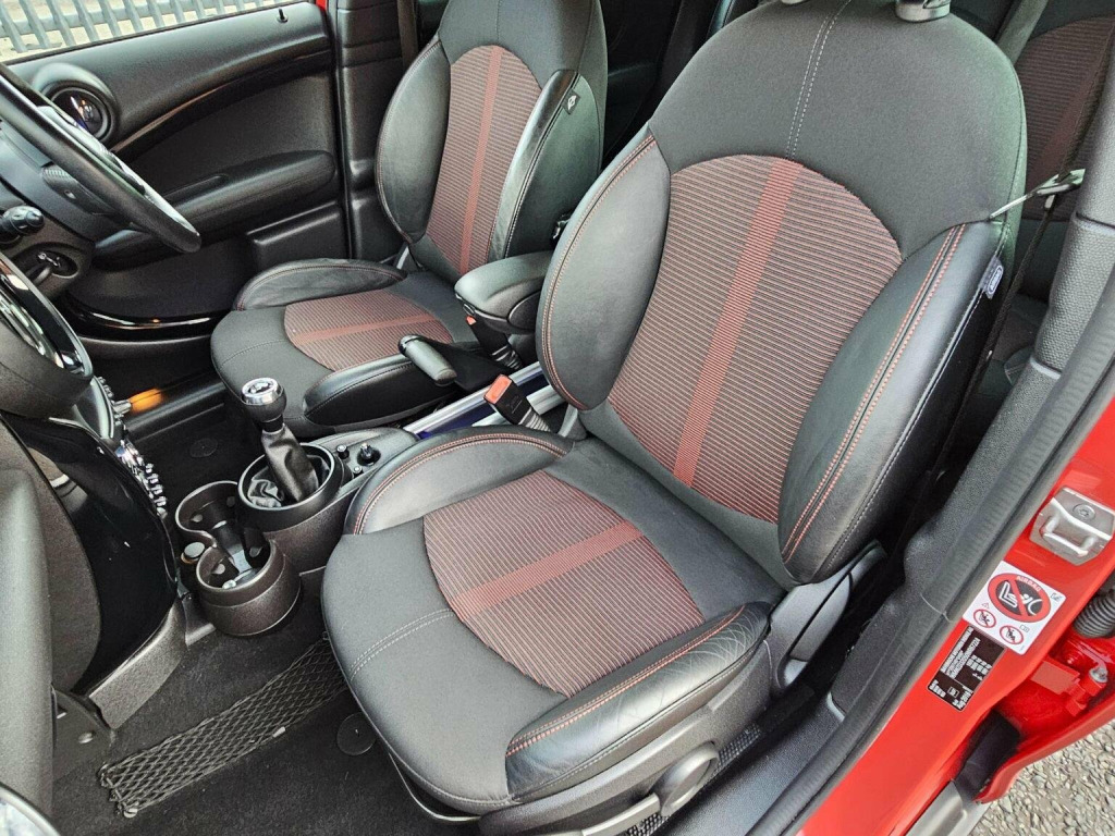 THIS GOOD CONDITION VERSATILE MINI CLUBMAN COOPER D IS PRESENTED IN RED WITH CHROME & GLOSS BLACK ACCENTS COMPLEMENTED BY 17 SILVER ALLOY WHEELS. THE RELIABLE AND VERY ECONOMICAL 1.6D ENGINE IS CONNECTED TO A MANUAL GEARBOX, MAKING THIS CAR COMFORTABLE AND FUN TO DRIVE OVER ANY DISTANCE, LOCAL OR MOTORWAY. THE INTERIOR IS UPHOLSTERED IN PART BLACK LEATHER WITH RED STITCHING WITH FRONT HEATED SEATS AND MATCHING LEATHER-TRIMMED STEERING WHEEL WITH CARBON BLACK AND CHROME ACCENTS TO THE CABIN/DASHBOARD. EQUIPMENT INCLUDES AIR-CONDITIONING, SATNAV, RADIO WITH CENTRAL BASS HI FI SYSTEM , BLUETOOTH TELEPHONE PREPARATION AND USB INPUT, REAR PARKING SENSORS, ELECTRIC WINDOWS, TRIP COMPUTER AND MUCH MORE YET TO BE DISCOVERED. WE HAVE FULLY INSPECTED AND SERVICED THIS CAR, SO THE ONLY ISSUE FOR ITS NEW OWNER WILL BE WHERE THE NEXT TRIP SHOULD BE. PLEASE CALL 0161 761 3452 (OPTION 2) TO ARRANGE A VIEWING, TO RESERVE THE CAR OR FOR MORE INFORMATION. WHILST EVERY EFFORT HAS BEEN MADE TO ENSURE THAT THE STATED SPECIFICATION IS ACCURATE, PLEASE CHECK WITH A MEMBER OF THE SALES TEAM IF A PARTICULAR SPECIFICATION/FEATURE IS IMPORTANT TO YOU.