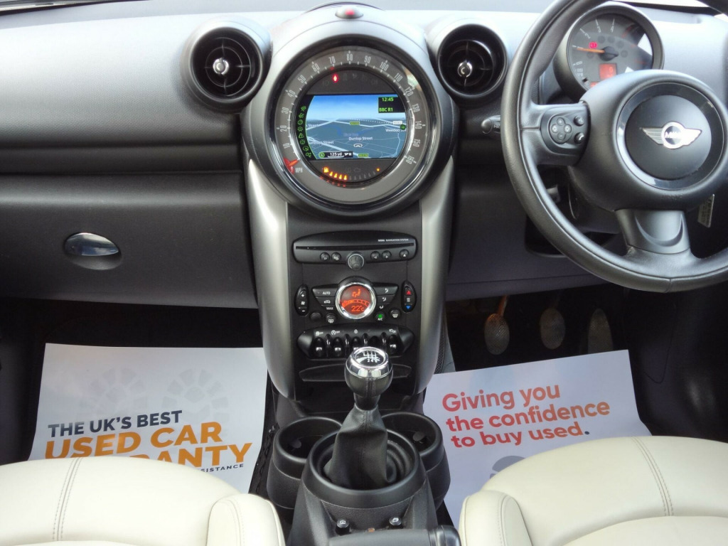 MASSIVE SPECIFICATION WITH THOUSANDS OF POUNDS WORTH OF FACTORY FITTED OPTIONS. FULL SERVICE HISTORY, NEW CLUTCH AND DUAL MASS FLYWHEEL FITTED! 6 MONTHS WARRANTYWhat a car! Incredible spec with all the desirable and rare options including- Sat Nav, Full Leather Interior, LED Daytime Running Lights, Cruise Control, Parking Sensors, Advanced Bluetooth with USB,DAB, Auto headlights, Rain Sensing Wipers, Voice Control, Rear Bike Rack Preparation, Roof Rails, Piano Black Pack Exterior Trim, Interior Light Package (colour changing interior mood lights), Clear Indicators, Digital Air Con, Pepper Pack, Front Arm Rest, Mini Spot Lights and much more.FULLY HPI CLEAR AND NEVER BEEN SMOKED IN. This car has also had the Clutch and Dual Mass Flywheel replaced. This saves the new owner a cost of circa £1,500 as when they get to around the 80k miles mark theyre usually getting ready for a change. Taken in part exchange at the main dealer then supplied directly to ourselves. An exceptionally nice car in a stunning colour combination. Drives superb. One not to be missed. Will come with 6 Month Warrantywise Warranty free of charge. Only £35 to tax for the year and will give superb fuel economy. An excellent family car thats just a bit special compared to everything else. Exceptionally well maintained by its current keeper who has had it for the last 4 years. 6 Months Warrantywise Warranty, 12 Months MOT, Ready to drive away. 16in Alloy Wheels - 5-Star Single Spoke Light, 3rd Brake Light, ASC+T - Automatic Stability Control and Traction, Air Conditioning - Manual, Airbags - Driver, Airbags - Front Passenger, Airbags - Front Passenger with Deactivation Switch, Airbags - Front Side, Airbags - Head, Alarm - Thatcham CAT1, Anti-Lock Braking System - ABS, Aux-In Connection, Basic Bluetooth Function with USB Audio, Bike Rack Preparation at Rear, Brake Assist, Brake Pad Wear Indicator, CBC - Cornering Brake Control, Car Jack, Central Bass Hi-Fi System, Central Locking - Activated At 10mph, Central Locking - Remote, Centre Rail, Child Seat ISOFIX Attachment, Cooled Glovebox, Cupholders - Two in Front, DAB Tuner, Door Handles - Chrome Plated, Door Handles - Interior - Chrome Plated, Door Mirrors - Electrically Adjustable and Heated, Dynamic Stability Control - DSC, EBD - Electronic Brake-Force Distribution, Electric Windows - One Touch Up and Down Front and Rear, Electronic Power Steering, Embellisher at Bottom Edge of All Windows - Chrome Plated, Frame Chrome-Plated Radiator-Grille Bars Silver, Grab Handles, Halogen Lights for Low Beam and High Beam Headlights, Headlight - Beam-Throw Control Electrical with Manual Adjustment, Headlights - Chrome Bezels, Headlights - Follow Me Home, Headlining - Beige, Heated Front Windscreen Washer Jets, Hill Assist, Interior lights - Integrated into Centre Front Headliner including Two Reading Lights, Lashing Eyes in Luggage Compartment, MINI Mobility System, MINIMALISM Fuel Saving Technology, Microfilter, Mirror Caps in Body Colour, PDC - Park Distance Control - Rear, Radio BOOST CD, Roof Rails - Silver, Roof in Body Colour, Seats - 40:20:40 Split Rear Backrests, Seats - Height Adjustable Drivers, Second Radio Remote Key, Security Locking Wheel Bolts, Side Scuttles with Integrated Indicators, Steering Column Height and Length Adjustment, Sun Visors with Integrated Vanity Mirrors on Drivers and Passengers Sides, TPWS - Tyre Pressure Warning System, Bluetooth Telephone Audio Connection, Full Bluetooth Telephone Preparation with USB Audio, MINI Connected, MINI Navigation System, Media Pack, Voice Control, Roof and Mirror Caps - Black, White Direction Indicators Lights, 3-Spoke Sport Leather Steering Wheel, Air Conditioning - Automatic, Front Centre Armrest, Gravity Leather - Polar Beige, Interior World - Carbon Black, Multifunction Controls for Steering Wheel, Interior Light Pack, Front Fog Lights, PEPPER Pack, Storage Compartment Pack, Rain Sensor and Automatic Headlight Activation, Radio VISUAL BOOST, 17in Alloy Wheels - 5-Star Double Spoke Light, Passenger Seat Height Adjustable, Seats - Sports Front, On-Board Computer, Door Ellipse and Downtubes - Dark Silver, Floor Mats - Velour, Bike Rack Preparation, Mini Spot Lights, DTC - Dynamic Traction Control, Black Headlight Reflectors, Cosmos Cloth - Carbon Black. Full service history