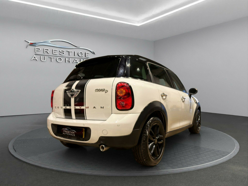 Proudly presenting our stunning Mini Countryman D, now available.This vehicle has been meticulously maintained since new, with full service history. Ensure peace of mind with our complementary warranty from our industry leading warranty partner. Key features and specification:- Full Service History- Stunning White With Black Contrasting Styling- Only £35 A Year Road TaxInterior Specification:- Half Leather Interior- Ambient Lighting- Air ConditioningWith us, your new car undergoes a meticulous preparation process, including a three-stage hand wash, application of a protective hydrophobic coating. All of this only after our team have prepared and tested the vehicle mechanically and it's deemed ready for sale.Vehicle HistoryNone of our vehicles have any hidden stories. Enjoy peace of mind with a free HPI Check, providing you with a detailed history of your vehicle. Welcome to our Prestige AutoHaus. Setting a new standard for aftercare, we are always on hand to ensure your experience through your purchase is second to none.We offer Part exchange / Delivery / Finance / Payment by cash, bank transfer or crypto / Flexible viewings including evenings and more.Please call us on 07777 226687 in alloy wheels - 5-star single spoke light, 3rd brake light, asc+t - automatic stability control and traction, air conditioning - manual, airbags - driver, airbags - front passenger, airbags - front passenger with deactivation switch, airbags - front side, airbags - head, alarm - thatcham cat1, anti-lock braking system - abs, aux-in connection, basic bluetooth function with usb audio, bike rack preparation at rear, brake assist, brake pad wear indicator, cbc - cornering brake control, car jack, central bass hi-fi system, central locking - activated at 10mph, central locking - remote, centre rail, child seat isofix attachment, cooled glovebox, cupholders - two in front, dab tuner, door handles - chrome plated, door handles - interior - chrome plated, door mirrors - electrically adjustable and heated, dynamic stability control - dsc, ebd - electronic brake-force distribution, electric windows - one touch up and down front and rear, electronic power steering, embellisher at bottom edge of all windows - chrome plated, frame chrome-plated radiator-grille bars silver, grab handles, halogen lights for low beam and high beam headlights, headlight - beam-throw control electrical with manual adjustment, headlights - chrome bezels, headlights - follow me home, headlining - beige, heated front windscreen washer jets, hill assist, interior lights - integrated into centre front headliner including two reading lights, lashing eyes in luggage compartment, mini mobility system, minimalism fuel saving technology, microfilter, mirror caps in body colour, pdc - park distance control - rear, radio boost cd, roof rails - silver, roof in body colour, seats - 40:20:40 split rear backrests, seats - height adjustable drivers, second radio remote key, security locking wheel bolts, side scuttles with integrated indicators, steering column height and length adjustment, sun visors with integrated vanity mirrors on drivers and passengers sides, tpws - tyre pressure warning system, chili pack, 17in alloy wheels - 5-star double spoke light in black, air conditioning - automatic, seats - sports front, multifunction controls for steering wheel, darkened rear glass, 3-spoke sport leather steering wheel, interior light pack, flat load floor, rain sensor and automatic headlight activation, chrome line interior, storage compartment pack, white direction indicators lights, interior world - carbon black, roof and mirror caps - black, cloth-leather parallel lines - light tobacco