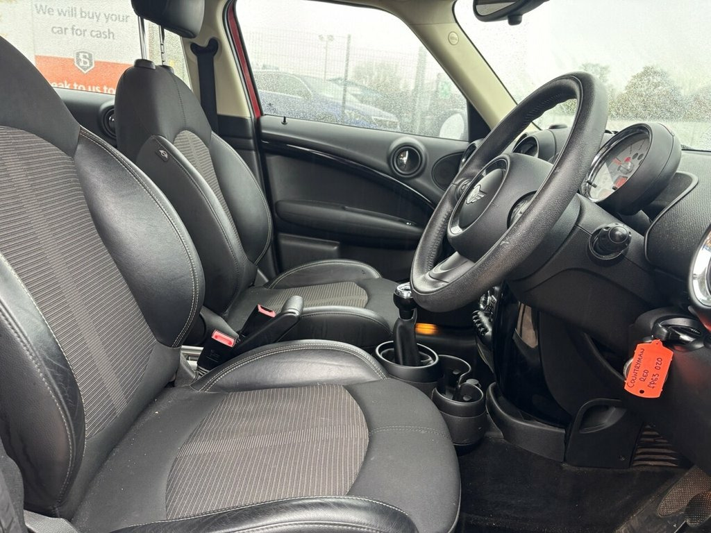 Scott's of Leeds used Car Sales are pleased to offer this MINI COUNTRYMAN 1.6 Cooper D SUV 5 Door Diesel Manual in Red. The car is in good condition throughout, in a lovely colour combination and a great specification including Cruise control, DAB radio, Bluetooth, AUX and USB, Rear parking sensors, automatic lights and automatic wipers, alloy wheels, isofix, CD player, Electric windows, and much much more. The car will be supplied with an up to date service record having just been serviced in our Workshop, an MOT until November 2026 and 2 Keys ready to drive away. 3 MONTH NATIONWIDE WARRANTY provided with all vehicles. NATIONWIDE DELIVERY also available. A guaranteed 12 Months MOT can be added for an extra £100. DISCLAIMER: The above specification is true and correct. Any other specification listed elsewhere can sometimes be incorrect. Please check with Sales Executive to clarify this if needed prior to purchase. 16in Alloy Wheels - 5-Star Single Spoke , 3rd Brake Light, Air Conditioning - Manual, Airbags - Driver, Airbags - Front Passenger, Airbags - Front Passenger with Deactivat, Airbags - Front Side, Airbags - Head, Alarm - Thatcham CAT1, Anti-Lock Braking System - ABS, Aux-In Connection, Basic Bluetooth Function with USB Audio, Bike Rack Preparation at Rear, Brake Assist, Brake Pad Wear Indicator, CBC - Cornering Brake Control, Car Jack, Central Bass Hi-Fi System, Central Locking - Activated At 10mph, Central Locking - Remote, Centre Rail, Child Seat ISOFIX Attachment, Cooled Glovebox, Crash Sensor - Fuel Cut-Off, Crash Sensor - Unlocking Doors, Cupholders - Front x2, DAB Tuner, DTC - Dynamic Tr