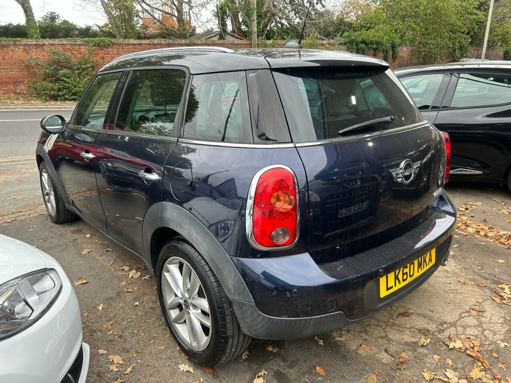 Here at Essex cars for less, we are pleased to offer this 2010 Mini Countryman Cooper 1.6 Diesel, finished in blue, and having just covered just 42K miles from new! Comes with all the extras you'd expect from Mini, including full electrics pack, air conditioning, parking sensors, twin sunroofs, white leather interior 6 speed gearbox, 4WD, alloy wheels ect. Very spacious interior that fits 4 very comfortably, and thanks to the 1.6 litre Diesel engine, offers great value, fun motoring! Test drives and P/X welcome. all our vehicles come with minimum 6 Months MOT, fully valeted and with minimum 3 months warranty (subject to £99.00 administration fee). extended 6, 12, and 24 month warranties are available, please speak to one of our sales team for more information. Please note, every effort has been made to ensure the accuracy of the above information, but errors may occur. Please check with a salesperson. 16in 5 star Alloy Wheels, 2 Part mini centre rail, 2 Rear Seats, 2Spoke Steering Wheel, 3 Point Seatbelts on all Seats, 3 Rear Seats, 6 Speakers, Air Conditioning, Alloy Wheels - Black, Alloy Wheels - Silver, Alloy Wheels painted White, Basic Bluetooth function with USB Audio, Bike rack preparation, Black roof & mirror caps, Body colour door mirrors, Body colour roof, Colour line- Carbon Black, Colour line- Polar Beige, Interior world - Dark Tobacco, Interior world- Carbon Black, Interior world- Polar Beige, MINI centre rail, MINI mobility System, Model designation deletion, No smoker Package, Orange indicator Lights, Radiator grille in Silver, Telephone USB Audio interface, Voice Contro