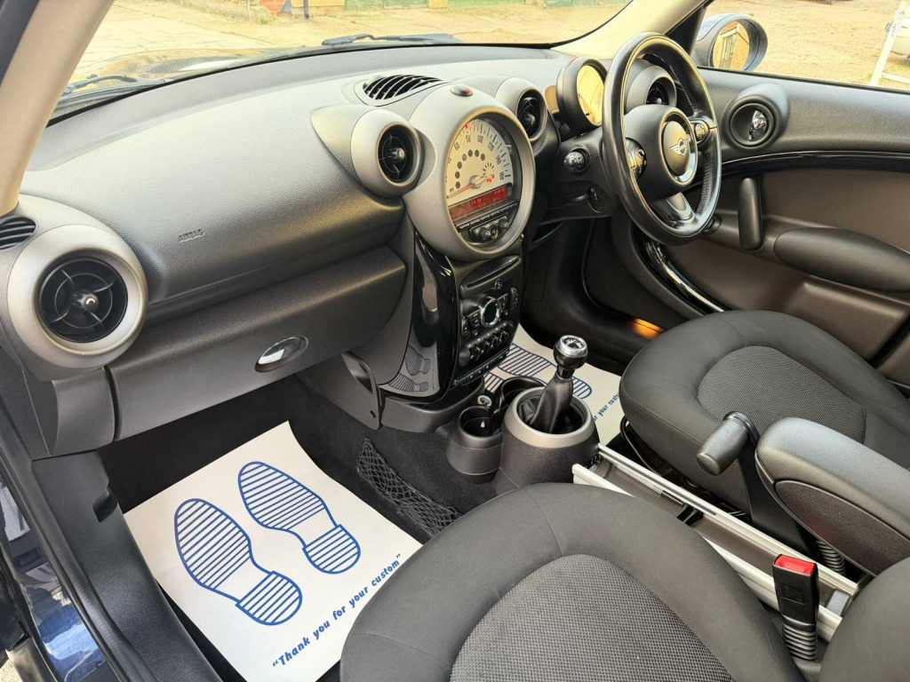 This 2011 MINI Countryman Cooper boasts a full service history, ensuring its excellent provenance and care. This stylish model features a responsive 1.6L petrol engine and is presented with 12 months MOT for your peace of mind. Inside, you'll find practical features like multifunction controls on the steering wheel, a front centre armrest, and air conditioning to keep you comfortable on every journey. The exterior is enhanced by 17in 5-Star Double Spoke light alloy wheels and practical run-flat tyres.The MINI Countryman Cooper offers several advantages over similar vehicles. Its impressive fuel economy of 47 mpg means fewer trips to the petrol station, and its low CO2 emissions contribute to a more environmentally friendly drive. Furthermore, this model sits in a low insurance group, making it an economical choice for many drivers. in 5 star alloy wheels, 2 part mini centre rail, 2 rear seats, 2spoke steering wheel, 3 point seatbelts on all seats, 3 rear seats, 6 speakers, air conditioning, alloy wheels - black, alloy wheels - silver, alloy wheels painted white, basic bluetooth function with usb audio, black roof & mirror caps, body colour door mirrors, body colour roof, colour line- carbon black, colour line- polar beige, interior world - dark tobacco, interior world- carbon black, interior world- polar beige, mini centre rail, mini mobility system, model designation deletion, no smoker package, orange indicator lights, telephone usb audio interface, traction control, voice control system when with bluetooth telephone preparation, white roof & mirror caps, panoramic electric glass sunroof, 17in alloy wheels - 5-star double spoke light, air conditioning - automatic, multifunction controls for steering wheel, 3-spoke sport leather steering wheel, door ellipse and downtubes - piano black, interior light pack, flat load floor, front centre armrest, front fog lights, rain sensor and automatic headlight activation, run-flat tyres, storage compartment pack, white direction indicators lights, alloy wheels in silver, colour line - dark tobacco, interior world - carbon black, mirror caps in body colour, cloth cosmos - carbon black