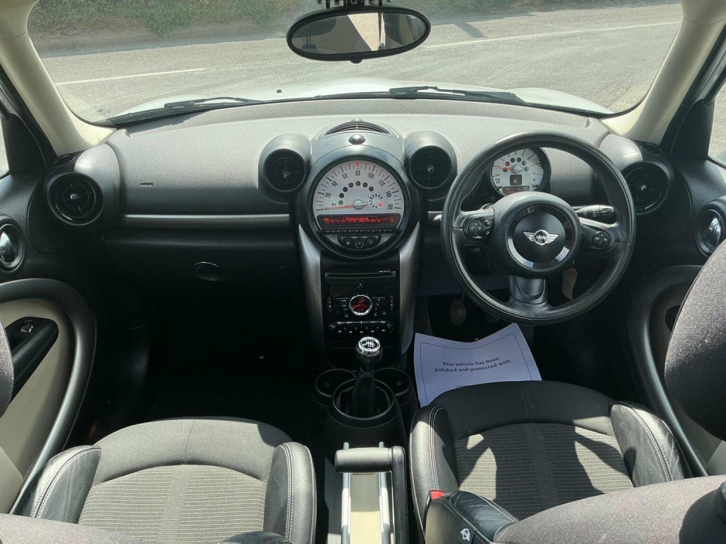 2013 (62) MINI Countryman 1.6 Cooper Euro 6 (s/s) 5dr presented in White with black half leather interior and cream accents / Fantastic service history - serviced on 23k, 32k, 39k, 44k, 46k, 50k, 52k, 56k, & 63k / One previous owner from new - last since 2016 / 2 keys / New MOT with no advisories / USB input / Bluetooth / Cruise control / Rear parking sensors / Climate control / Automatic lights / Twin Sunroof / Electric windows / Alloy wheels / Trip computer / Drive away today / All of our Cars are supplied with FREE NEW MOT with no advisories, FREE Interim service, FREE HPI Check, FREE MOT History Check, FREE 3 months Nationwide Parts and Labour Warranty and a FREE professional valet. Please call us to arrange a viewing and test drive or for any further information about this car.