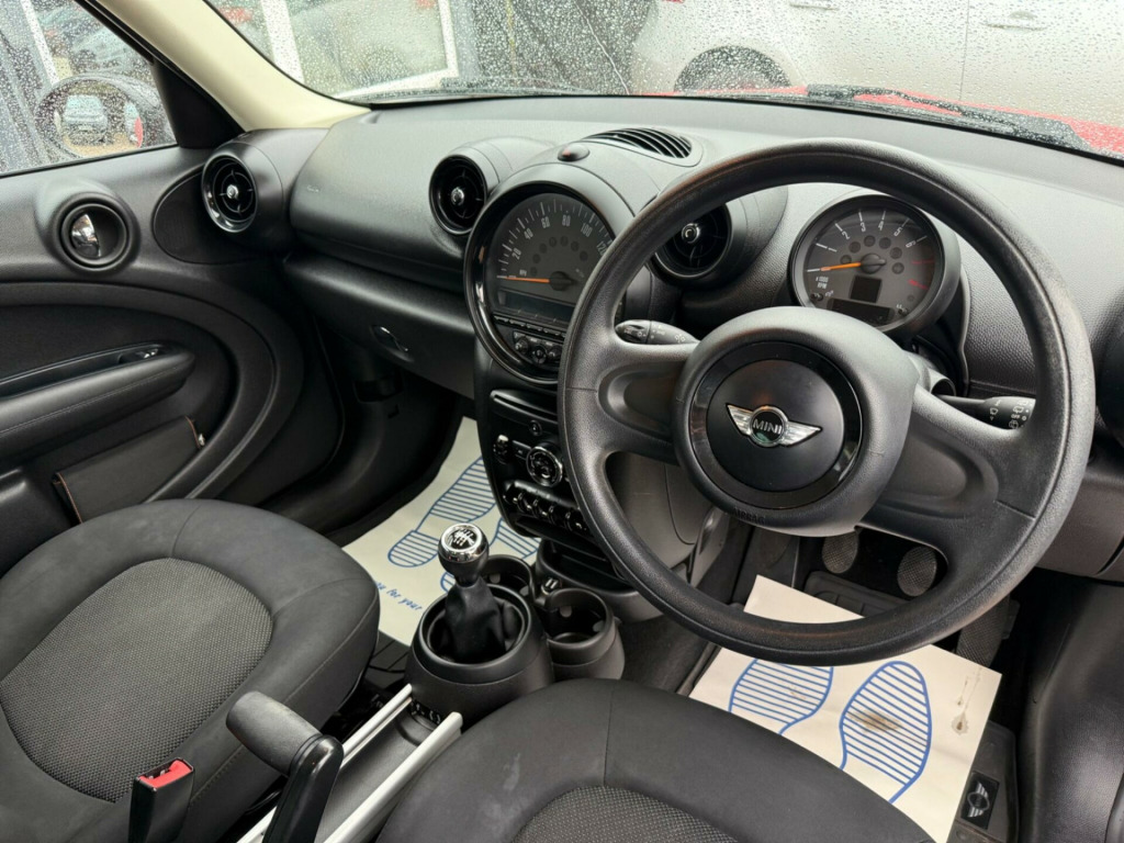 This MINI Countryman Cooper from 2014 offers excellent value with only two previous owners and a clear vehicle history check. It features a responsive 1.6L petrol engine and meets Euro 6 emissions standards. For your convenience, this model includes rear parking sensors to assist with manoeuvring, manual air conditioning to keep you comfortable, and basic Bluetooth functionality with USB audio for your entertainment needs.This particular Countryman Cooper stands out with its impressive fuel economy of 47 miles per gallon, which is better than many similar vehicles. Its low CO2 emissions and low insurance group also contribute to lower running costs, making it a sensible choice. This well maintained MINI Countryman is ready for its next owner.. 16in Alloy Wheels - 5-Star Single Spoke Light, 3rd Brake Light, ASC+T - Automatic Stability Control and Traction, Air Conditioning - Manual, Airbags - Driver, Airbags - Front Passenger, Airbags - Front Passenger with Deactivation Switch, Airbags - Front Side, Airbags - Head, Alarm - Thatcham CAT1, Anti-Lock Braking System - ABS, Aux-In Connection, Basic Bluetooth Function with USB Audio, Bike Rack Preparation at Rear, Brake Assist, Brake Pad Wear Indicator, CBC - Cornering Brake Control, Car Jack, Central Bass Hi-Fi System, Central Locking - Activated At 10mph, Central Locking - Remote, Centre Rail, Child Seat ISOFIX Attachment, Cooled Glovebox, Cupholders - Two in Front, DAB Tuner, Door Handles - Chrome Plated, Door Handles - Interior - Chrome Plated, Door Mirrors - Electrically Adjustable and Heated, Dynamic Stability Control - DSC, EBD - Electronic Brake-Force Distribution, Electric Windows - One Touch Up and Down Front and Rear, Electronic Power Steering, Embellisher at Bottom Edge of All Windows - Chrome Plated, Frame Chrome-Plated Radiator-Grille Bars Silver, Grab Handles, Halogen Lights for Low Beam and High Beam Headlights, Headlight - Beam-Throw Control Electrical with Manual Adjustment, Headlights - Chrome Bezels, Headlights - Follow Me Home, Headlining - Beige, Heated Front Windscreen Washer Jets, Hill Assist, Interior lights - Integrated into Centre Front Headliner including Two Reading Lights, Lashing Eyes in Luggage Compartment, MINI Mobility System, MINIMALISM Fuel Saving Technology, Microfilter, Mirror Caps in Body Colour, PDC - Park Distance Control - Rear, Radio BOOST CD, Roof Rails - Silver, Roof in Body Colour, Seats - 40:20:40 Split Rear Backrests, Seats - Height Adjustable Drivers, Second Radio Remote Key, Security Locking Wheel Bolts, Side Scuttles with Integrated Indicators, Steering Column Height and Length Adjustment, Sun Visors with Integrated Vanity Mirrors on Drivers and Passengers Sides, TPWS - Tyre Pressure Warning System, White Direction Indicators Lights, Interior World - Carbon Black, Roof and Mirror Caps - Black, Cosmos Cloth - Carbon Black.