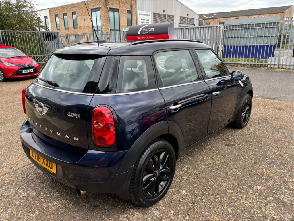 Enjoy peace of mind with a full 12 months MOT and a comprehensive 12 months warranty included with this 2016 MINI Countryman Cooper. This stylish vehicle is powered by a 1.6 litre petrol engine, meeting Euro 6 emissions standards, and features desirable 17 inch 5 Star Double Spoke light alloy wheels in black. Inside, you'll find comfortable Gravity leather upholstery in Carbon Black, a MINI Navigation system to guide your journeys, and seat heating for both the driver and front passenger. For seamless connectivity, it also boasts full Bluetooth telephone preparation with USB audio.!!..PLEASE CALL BEFORE TRAVELLING OT ADVIOD DESAPPOINTMENT !!. AT VITAL CARS WE GUARANTEE QUALITY AND CONFIDENCE IN THE ROAD AHEAD,IF ITS SMALL LOW INSURANCE CARS YOU ARE LOOKING FOR THEN VISIT OUR WEBSITE WE HAVE A GREAT RANGE TO CHOOSE FROM.This MINI Countryman Cooper offers a refined driving experience, enhanced by its premium features. The inclusion of the MINI Navigation system and Bluetooth connectivity with USB audio demonstrates a higher level of specification compared to many other vehicles in its class, ensuring you stay connected and on the right path. The combination of the practical Countryman body style, the efficient 1.6L engine, and the luxurious interior appointments makes this a well rounded and appealing choice. uetooth telephone audio connection, full bluetooth telephone preparation with usb audio, mini connected, mini navigation system, media pack, on-board computer, sport button, voice control, 17in alloy wheels - 5-star double spoke light in black, chili pack, chrome line exterior, heated front windscreen, roof and mirror caps - black, white direction indicators lights, 3-spoke sport leather steering wheel, air conditioning - automatic, auto-dimming interior rear view mirror, colour line - carbon black, flat load floor, front centre armrest, gravity leather - carbon black, interior light pack, interior world - carbon black, multifunction controls for steering wheel, seat heating for driver and front passenger, storage compartment pack, rain sensor and automatic headlight activation, 16in alloy wheels - 5-star single spoke light, 3rd brake light, asc+t - automatic stability control and traction, air conditioning - manual, airbags - driver, airbags - front passenger, airbags - front passenger with deactivation switch, airbags - front side, airbags - head, alarm - thatcham cat1, anti-lock braking system - abs, aux-in connection, basic bluetooth function with usb audio, bike rack preparation at rear, brake assist, brake pad wear indicator, cbc - cornering brake control, car jack, central bass hi-fi system, central locking - activated at 10mph, central locking - remote, centre rail, child seat isofix attachment, cooled glovebox, cupholders - two in front, dab tuner, door handles - chrome plated, door handles - interior - chrome plated, door mirrors - electrically adjustable and heated, dynamic stability control - dsc, ebd - electronic brake-force distribution, electric windows - one touch up and down front and rear, electronic power steering, embellisher at bottom edge of all windows - chrome plated, frame chrome-plated radiator-grille bars silver, grab handles, halogen lights for low beam and high beam headlights, headlight - beam-throw control electrical with manual adjustment, headlights - chrome bezels, headlights - follow me home, headlining - beige, heated front windscreen washer jets, hill assist, interior lights - integrated into centre front headliner including two reading lights, lashing eyes in luggage compartment, mini mobility system, minimalism fuel saving technology, microfilter, mirror caps in body colour, pdc - park distance control - rear, radio boost cd, roof rails - silver, roof in body colour, seats - 40:20:40 split rear backrests, seats - height adjustable drivers, second radio remote key, security locking wheel bolts, side scuttles with integrated indicators, steering column height and length adjustment, sun visors with integrated vanity mirrors on drivers and passengers sides, tpws - tyre pressure warning system