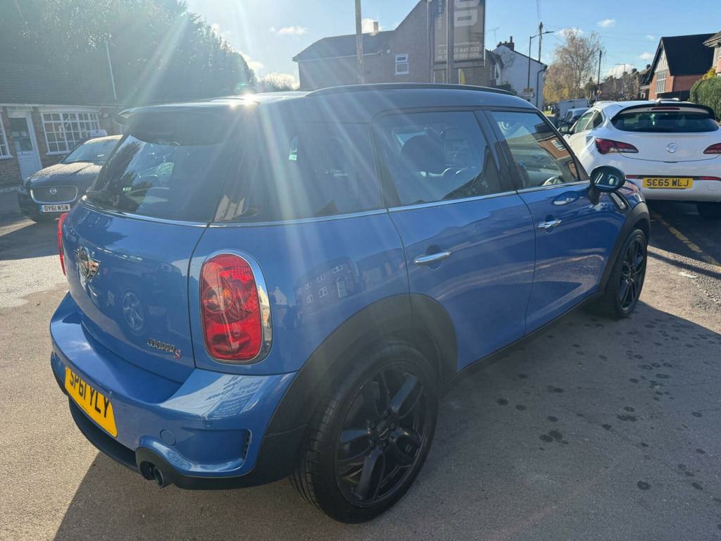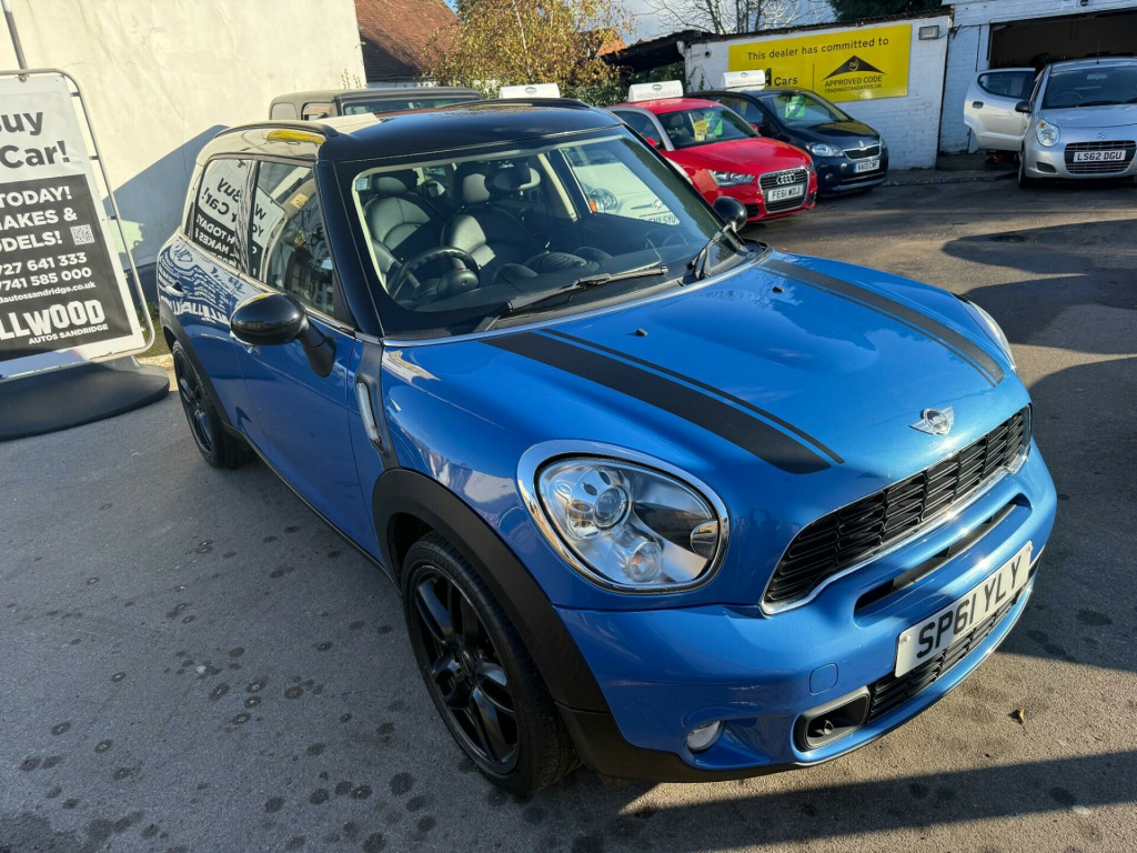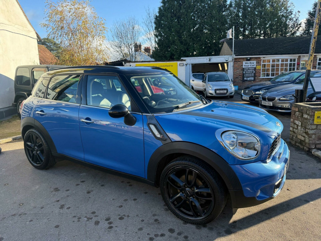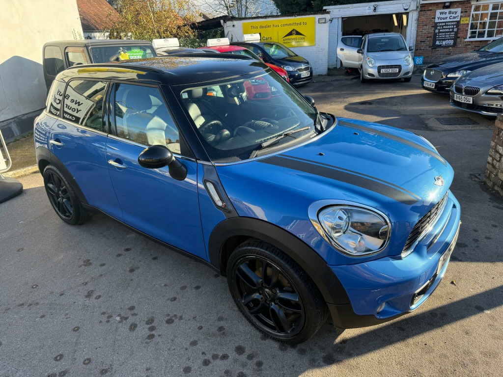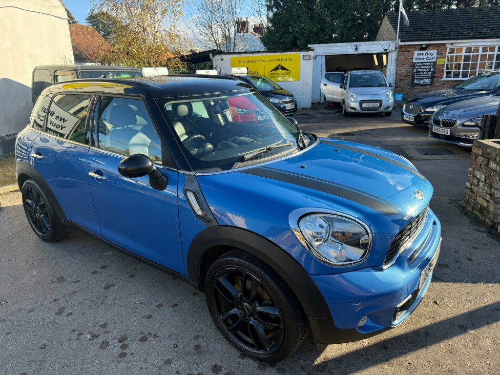 Allwood of Sandridge are pleased to bring to market the great value and great driving MINI Countryman 1.6 Cooper S. The car benefits from a fantastic service record and specification. With Mini BMW main dealer history for the first three years followed by specialist independent servicing there after. Holding records for 8 service visits plus a timing chain replacement in 2024. The vehicle has also had a recent water pump and high pressure fuel pump replaced which are all documented in the cars extensive paperwork. The current MOT also runs through till 14/10/26 for yet further peace of mind. 2 keys are equipped with the car and this Mini is fully HPI clear free from accidents and finance with verification of the cars miles and owners. In striking Blue with black 18 inch turbo fan wheels strips and trims the car really does look great on the road, inside we have a full black leather interior in nice condition. in alloy wheels - turbo fan light, headlights - bi-xenon, air conditioning - automatic, seat heating for driver and front passenger, multifunction controls for steering wheel, darkened rear glass, interior light pack, front fog lights, dashboard trim - piano black, bonnet stripes - black, door ellipse and downtubes - piano black, run-flat tyres, storage compartment pack, alloy wheels in anthracite, colour line - carbon black, interior world - carbon black, roof and mirror caps - black, leather gravity - carbon black, 17in 5 star double spoke alloy wheels, 2 part mini centre rail, 2 rear seats, 3 point seatbelts on all seats, 3 rear seats, 6 speakers, air conditioning, alloy wheels - black, alloy wheels - silver, alloy wheels in anthracite, alloy wheels painted white, basic bluetooth function with usb audio, bike rack preparation, black roof, black roof & mirror caps, body colour door mirrors, body colour roof, colour line- carbon black, colour line- polar beige, interior world - dark tobacco, interior world- carbon black, interior world- polar beige, mini centre rail, mini mobility system, model designation deletion, no smoker package, telephone usb audio interface, voice control system when with bluetooth telephone preparation, white roof & mirror caps