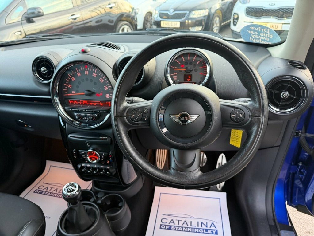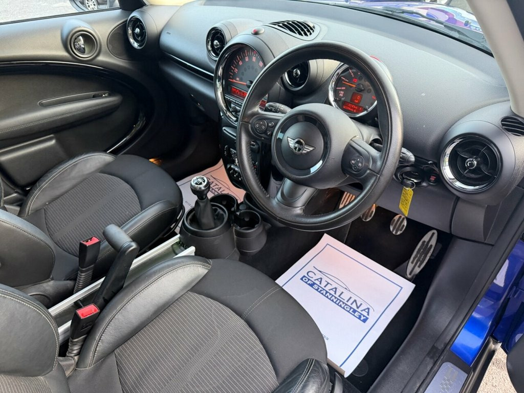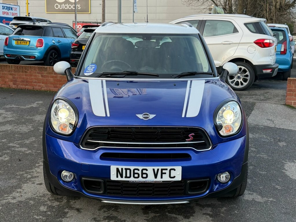 MINI Countryman 1.6 Cooper S ALL4 – Very Low Miles | Just Serviced | 4WD Petrol | Manual | ALL4 | Euro 5 | 184 PS | 41,383 Miles | MOT Until 18-01-2027 This MINI Countryman 1.6 Cooper S ALL4 is a stunning, very low-mileage example of MINI's sporty and practical compact SUV. With just 41,383 miles from new, freshly serviced by us, and a long MOT until January 2027, it is ready to drive away with confidence. Powered by the lively 1.6-litre turbo petrol engine producing 184 PS, it delivers strong performance with the added reassurance of ALL4 four-wheel drive, making it capable in all conditions while remaining great fun to drive. Finished in striking blue with a dark half-leather interior, this Cooper S model looks fantastic and offers a sporty yet comfortable cabin. A superb, low-mileage example of the MINI Countryman Cooper S ALL4 — combining performance, traction, and iconic MINI styling. Vehicle Preparation & Warranty Every vehicle is supplied with a minimum of 6 months MOT. If the remaining MOT is less than 6 months at point of sale, the car will receive a FREE 12-month MOT prior to collection. All vehicles are fully up to date with servicing where required. We include a FREE 3-month engine warranty, provided on a return-to-base basis. For additional peace of mind, we offer comprehensive nationwide warranty upgrades covering both parts and labour. These policies can include cover for major components such as the engine, gearbox, turbo, electrics, 17in Alloy Wheels - 5-Star Double Spoke , 3-Spoke Sport Leather Steering Wheel, 3rd Brake Light, Air Conditioning - Manual, Air Scoop Integrated between Bumper and , Airbags - Driver, Airbags - Front Passenger, Airbags - Front Passenger with Deactivat, Airbags - Front Side, Airbags - Head, Alarm - Thatcham CAT1, Anti-Lock Braking System - ABS, Aux-In Connection, Basic Bluetooth Function with USB Audio, Bike Rack Preparation at Rear, Brake Assist, Brake Pad Wear Indicator, CBC - Cornering Brake Control, Car Jack, Central Bass Hi-Fi System, Central Locking - Activated At 10mph, Central Locking - Remote, Centre Rail, Child Seat ISOFIX Attachment, Cooled Glovebox, Cupholders - Two in Front, DAB