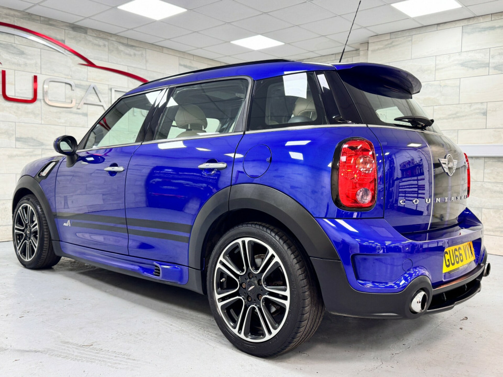 A fantastic opportunity to purchase a very well spec'd Mini Countryman with highly desirable JCW Sport pack!This 2016 '66' Mini Countryman Cooper S All4 is finished in Starlight Blue with Polar Beige leather interior.SPECIFICATION - JCW Sport Pack BiXenon lights Pan Roof Ambient lighting Heated seats Folding mirrors Parking Senors Privacy Glass 18'' JCW Alloy Wheels & much more!MAINTENANCE -The car will come with a new MOT, full health check & Service all included within the price. It also has a comprehensive service history with 6 documented services (9k,14k,17k,22k,33k,40k)MORE ABOUT THE CAR - The car is lovely throughout. The spec is great, and the overall condition is excellent & of course it drives without fault.WHATS INCLUDED - The car will come with a new MOT, fully valeted & 3 Months Ultimate Warranty included. We have 2 keys, clear HPI report and all paperwork.VIDEO - https://youtu.be/tmFt6guHzKUFINANCE AVAILABLE - We are fully regulated by the FCA & work with multiple brokers & lenders.R U Cars Loughborough is a family run business, selling quality used vehicles since 2013. Visit www.RUCARS.co.uk for more information in alloy wheels - 5-star double spoke light, air scoop integrated between bumper and radiator grille-frame in body colour, door handles - chrome plated, door mirrors - electrically adjustable and heated, electric windows - one touch up and down front and rear, embellisher at bottom edge of all windows - chrome plated, exhaust tailpipe - visible double round left and right with chrome finishers, frame chrome-plated radiator-grille in honeycomb black, headlights - chrome bezels, heated front windscreen washer jets, mini mobility system, mirror caps in body colour, roof rails - dark anthracite, roof in body colour, security locking wheel bolts, side scuttles with integrated indicators, spoiler - roof, white direction indicators lights, 3-spoke sport leather steering wheel, air conditioning - manual, bike rack preparation at rear, car jack, centre rail, cooled glovebox, cupholders - two in front, door handles - interior - chrome plated, footrest and pedals in stainless steel, grab handles, headlining - beige, interior surfaces - dark anthracite decorative trim finishers on centre console and door ring, interior lights - integrated into centre front headliner including two reading lights, lashing eyes in luggage compartment, microfilter, seats - 40:20:40 split rear backrests, seats - height adjustable drivers, seats - sports front, steering column height and length adjustment, sun visors with integrated vanity mirrors on drivers and passengers sides, 3rd brake light, halogen lights for low beam and high beam headlights, headlight - beam-throw control electrical with manual adjustment, headlights - follow me home, airbags - driver, airbags - front passenger, airbags - front passenger with deactivation switch, airbags - front side, airbags - head, alarm - thatcham cat1, anti-lock braking system - abs, brake assist, cbc - cornering brake control, central locking - activated at 10mph, central locking - remote, child seat isofix attachment, dtc - dynamic traction control, dynamic stability control - dsc, ebd - electronic brake-force distribution, hill assist, second radio remote key, aux-in connection, basic bluetooth function with usb audio, central bass hi-fi system, dab tuner, radio boost cd, brake pad wear indicator, electronic power steering, minimalism fuel saving technology, pdc - park distance control - rear, sport button, tpws - tyre pressure warning system