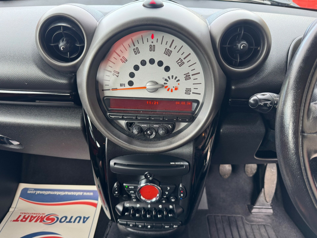 Mini Countryman1.6 Cooper SUV 5dr Petrol Manual Euro 5 (s/s) (122 ps)Mileage 89856• 3 Months warranty• Manual• 5 Seats• Lovely looking car• Clean interior • Fresh 12 months mot • Just been serviced • A/C• Alloy wheels• Good tyres• 2 Keys• USB port• Bluetooth Finance can be arrangedAny questions call on 07875446778 01752262895 Px's welcomeNationwide delivery available. Www.dcautosrepairs.co.uk in alloy wheels - 5-star single spoke light, door mirrors - electrically adjustable and heated, electric windows - front - one touch up and down, electric windows - one touch up and down front and rear, heated mirrors and windscreen washer jets, heated rear window with automatic deactivation, mini mobility system, roof rails, roof in body colour, 3 seat rear bench, air conditioning - manual, bike rack preparation at rear, car jack, cupholders - two in front, non smoker package, seats - 40:20:40 split rear backrests, seats - height adjustable drivers, steering column height and length adjustment, airbags - driver, airbags - front passenger, airbags - front passenger with deactivation switch, airbags - head, airbags - head and thorax, alarm - thatcham cat1, anti-lock braking system - abs, central locking - remote, child seat isofix attachment, crash sensor - fuel cut-off, dynamic stability control - dsc, remote controlled alarm system, second radio remote key, aux-in connection, basic bluetooth function with usb audio, dab tuner, radio boost cd, brake energy regeneration- igr, electronic power steering - speed related, pdc - park distance control - rear, tpws - tyre pressure warning system
