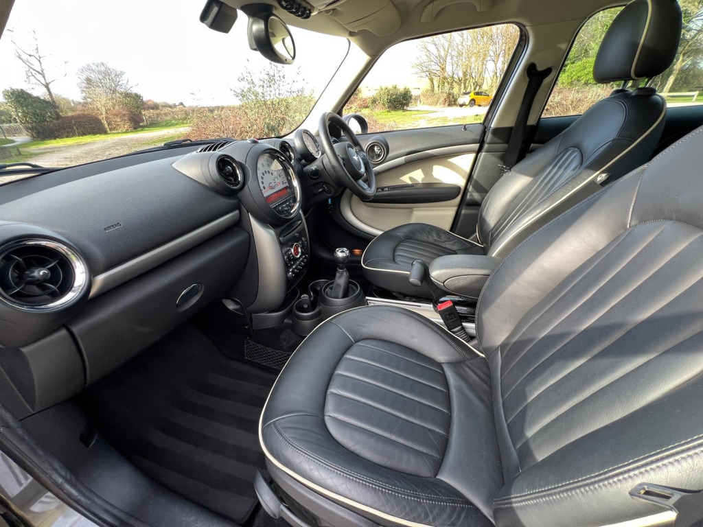 Nice example 2013 Mini Countryman Cooper 1.6 petrol, in alloy wheels - 5-star single spoke light, door handles - chrome plated, door mirrors - electrically adjustable and heated, electric windows - front - one touch up and down, embellisher at bottom edge of all windows - chrome plated, heated front windscreen washer jets, heated rear window with automatic deactivation, mini mobility system, mirror caps in body colour, multi-link rear axle, orange indicators, radiator grille - silver with frame chrome plated, roof rails - silver, roof in body colour, security locking wheel bolts, sills-bumper edges-wheel arches - black with model-specific bumper trims, tailgate release incorporated within mini badge, 3rd brake light, halogen lights for low beam and high beam headlights, headlight - beam-throw control electrical with manual adjustment, headlights - follow me home, asc+t - automatic stability control and traction, airbags - driver, airbags - front passenger, airbags - front passenger with deactivation switch, airbags - front side, airbags - head, alarm - thatcham cat1, anti-lock braking system - abs, brake assist, cbc - cornering brake control, central locking - activated at 10mph, central locking - remote, child seat isofix attachment, crash sensor - fuel cut-off, crash sensor - unlocking doors, dynamic stability control - dsc, ebd - electronic brake-force distribution, hill assist, personal profile functions for each remote key, second radio remote key, air conditioning - manual, bike rack preparation at rear, car jack, centre rail, cooled glovebox, cupholders - front x2, door handles - interior - chrome plated, door sill finishers - metal look and model dependent lettering, gearshift lever knob plastic with chrome ring, gearshift and selector lever gaiters in artificial leather, grab handles, headlining - beige, headrests for all seats - manually adjustable, interior lights - integrated into centre front headliner including two reading lights, lashing eyes in luggage compartment, luggage compartment - light, microfilter, non smoker package, seats - 40:20:40 split rear backrests, seats - 60:40 split for fore-aft base adjustment, seats - height adjustable drivers, start-stop button, steering column height and length adjustment, steering wheel - 2-spoke plastic, storage options in the trim panels of each front panel as well as centre console, sun visors with integrated vanity mirrors on drivers and passengers sides, aux-in connection, basic bluetooth function with usb audio, central bass hi-fi system, dab tuner, radio boost cd, usb audio connection, brake pad wear indicator, electronic power steering, pdc - park distance control - rear, single joint spring strut front axle, tpws - tyre pressure warning system