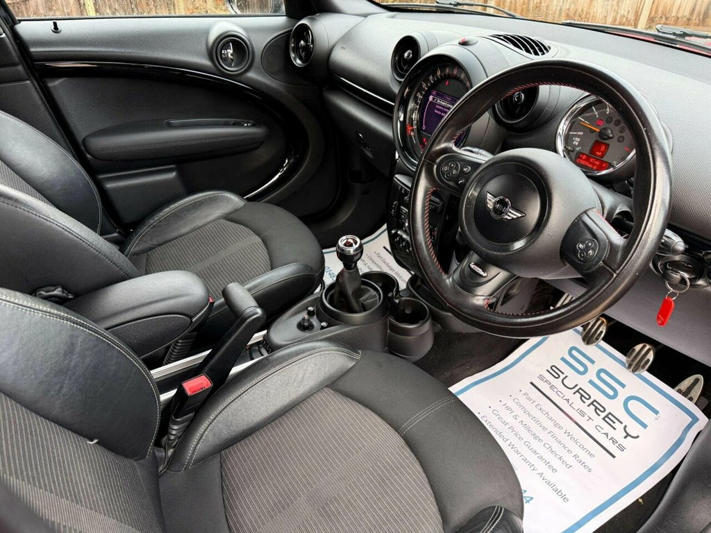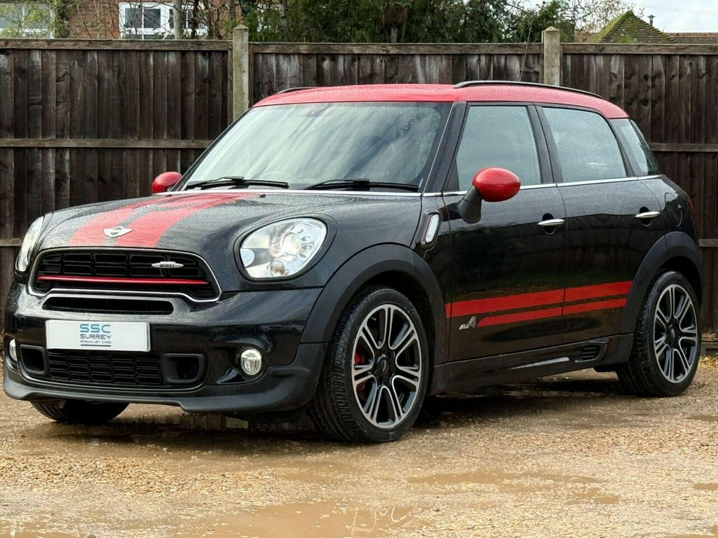 Surrey Specialist Cars are proud to present our lovely Mini Countryman 1.6 Countryman John Cooper Works 4WD 5dr in sleek Black finish. This premium vehicle comes fully loaded with extras including Absolute Black, Air Conditioning - Automatic, Bluetooth Telephone Audio Connection, CHILI Pack, Cloth-Leather Parallel Lines in Light Tobacco, and Front Centre Armrest. This amazing car comes with Full Service History and Long MOT until October 2026 so it is ready to go. Experience luxury and convenience with features such as Full Bluetooth Telephone Preparation with USB Audio, Headlights - Bi-Xenon, Interior Light Pack, MINI Connected, MINI Navigation System, Media Pack, Rain Sensor with Automatic Headlight Activation, and Roof and Mirror Caps in striking Red. Stay comfortable with Seat Heating for Driver and Front Passenger, while turning heads with Sport Stripes in Red. Keep organized with the Storage Compartment Pack and stay connected on the go with Voice Control. Don't miss out on this opportunity to own a top-of-the-line Mini Countryman with all the bells and whistles. Upgrade your driving experience today! 18in Alloy Wheels - Twin Spoke Burnished, 3rd Brake Light, Air Conditioning - Manual, Air Scoop Integrated between Bumper and , Airbags - Driver, Airbags - Front Passenger, Airbags - Front Passenger with Deactivat, Airbags - Front Side, Airbags - Head, Alarm - Thatcham CAT1, Anthracite Headlining, Anti-Lock Braking System - ABS, Aux-In Connection, Basic Bluetooth Function with USB Audio, Brake Assist, Brake Pad Wear Indicator, CBC - Cornering Brake Control, Car Jack, Central Bass Hi-Fi System, Central Locking - Activated At 10mph, Central Locking - Remote, Centre Rail, Child Seat ISOFIX Attachment, Cooled Glovebox, Cupholders - Two in Front, DAB Tuner, DTC - Dynamic Traction Control, Dashboa