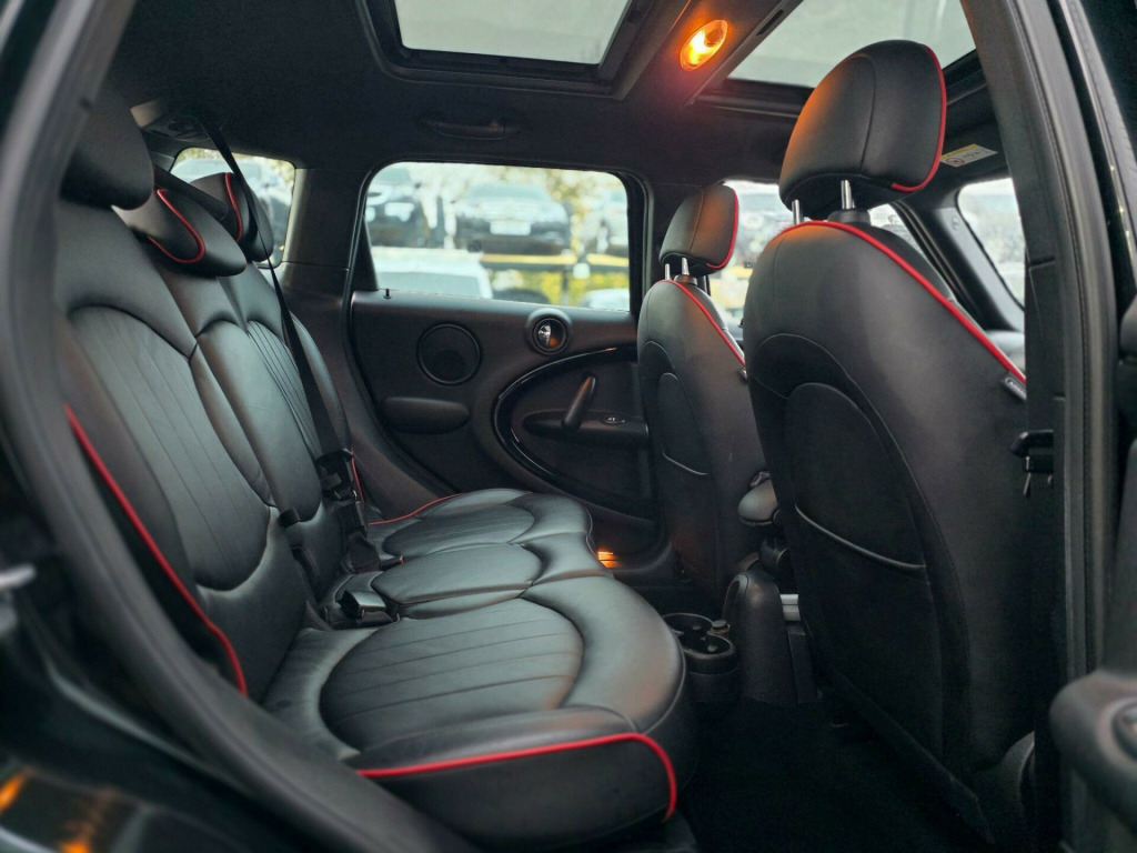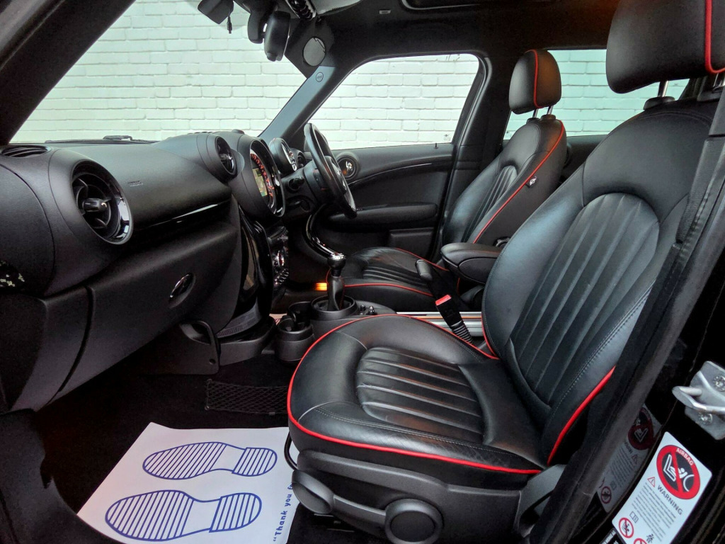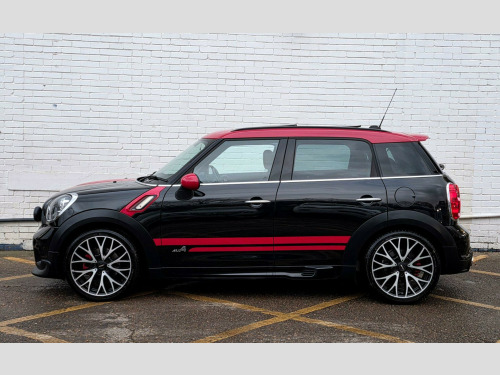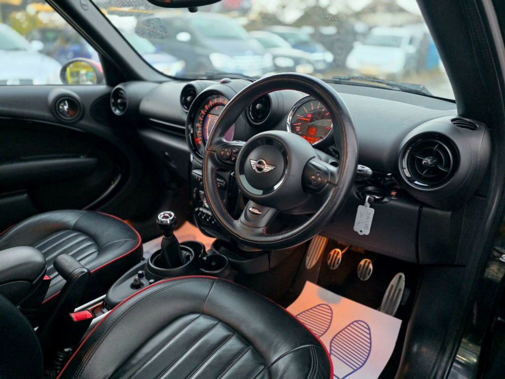 WE ARE THRILLED TO PRESENT THIS MINI COUNTRYMAN JOHN COOPER WORKS IN ABSOLUTE BLACK METALLIC WITH RED SPORT STRIPS ++ FULL BLACK LOUNGE LEATHER PACKAGE WITH CHAMPIONSHIP RED PIPPING ++ PANORAMIC SUNROOF ++ FULL SERVICE HISTORY ++ RECENTLY BEEN SERVICED 58K MILES ++ MOT UNTIL 25-08-2026 ++ 2 KEYS ++ SATELLITE NAVIGATION SYSTEM ++ XENON HEAD LAMPS ++ EXTENDED LEATHER PACKAGE ++ HEATED SEATS ++ SPORT SEATS ++ FACTORY CROSS SPOKE CRUSHER ALLOY WHEELS ++ JCW AERODYNAMIC BODY STYLING (KIT) ++ PARK DISTANCE CONTROL (REAR PARKING SENSORS) ++ MEDIA PACKAGE ++ DAB (DIGITAL RADIO) ++ DMB (DIGITAL MULTI MEDIA BROADCASTING) ++ AUX INPUT ++ TELEPHONE PREP ++ BLUETOOTH CONNECTIVITY ++ PIANO BLACK INTERIOR SURFACE ++ CARBON BLACK COLOUR LINE ++ PIANO BLACK COCKPIT SURFACE ++ SUN PROTECTION GLASS ++ SPORT BUTTON ++ FACTORY VELOUR FLOOR MATS ++ ANTHRACITE HEAD LINING ++ LIGHT PACKAGE ++ MINI CONNECTED ++ CLIMATE CONTROL ++ JCW ++ SAT NAV ++ HPI CLEAR AND CERTIFIED ++ NATIONWIDE DELIVERY AVAILABLE ++ ULEZ COMPLIANT ++ rome line interior, media pack, chili pack, mini navigation system, panoramic electric glass sunroof, 19in alloy wheel - cross spoke crusher black light, headlights - bi-xenon, air conditioning - automatic, seat heating for driver and front passenger, voice control, mini connected, full bluetooth telephone preparation with usb audio, darkened rear glass, interior light pack, flat load floor, front centre armrest, rain sensor and automatic headlight activation, black headlight reflectors, run-flat tyres, storage compartment pack, bluetooth telephone audio connection, colour line - carbon black, interior world - carbon black, roof and mirror caps - red, sport stripes - red, leather lounge - championship red, leather lounge - carbon black, 18in alloy wheels - twin spoke burnished black, 3 seat rear bench, 3rd brake light, 6 speakers system, asc+t - automatic stability control and traction, air conditioning - manual, air scoop integrated between bumper and radiator grille-frame in body colour, airbags - driver, airbags - front passenger, airbags - front passenger with deactivation switch, airbags - front side, airbags - head, anthracite headlining, anti-lock braking system - abs, aux-in connection, basic bluetooth function with usb audio, brake pad wear indicator, cbc - cornering brake control, car jack, central bass hi-fi system, central locking - remote, centre rail, child seat isofix attachment, crash sensor - fuel cut-off, crash sensor - hazard warning flashers and interior light, crash sensor - unlocking doors, cruise control, cupholders - two in front, dab tuner, dtc - dynamic traction control, dashboard trim - piano black, door ellipse and downtubes - piano black, door handles - chrome plated, door handles - interior - chrome plated, door mirrors - electrically adjustable and heated, door sill finishers - metal look and model dependent lettering, dynamic stability control - dsc, ebd - electronic brake-force distribution, electric windows - one touch up and down front and rear, electronic power steering, embellisher at bottom edge of all windows - chrome plated, exhaust tailpipe - visible double round left and right stainless steel, floor mats, floor mats - velour, footrest and pedals in stainless steel, gearshift and selector lever gaiters in artificial leather, grab handles, halogen lights for low beam and high beam headlights, headlight - beam-throw control electrical with manual adjustment, headlights - chrome bezels, headlights - follow me home, headrests for all seats - manually adjustable, heated rear window with automatic deactivation, hill assist, interior mirror - mechanical anti-dazzle, interior surfaces - dark anthracite decorative trim finishers on centre console and door ring, interior lights - integrated into centre front headliner including two reading lights, john cooper works aerodynamic kit, lashing eyes in luggage compartment, luggage compartment - light, mini mobility system, minimalism fuel saving technology, microfilter, multi-link rear axle, multifunction controls for steering wheel, pdc - park distance control - rear, personal profile functions for each remote key, radiator grille - honeycomb-black with chrome surround, radio boost cd, rev counter, roof rails - dark anthracite, roof in body colour, seats - 40:20:40 split rear backrests, seats - height adjustable drivers, seats - sports front, second radio remote key, security locking wheel bolts, side scuttles with integrated indicators - red stripe design and john cooper works emblem, sills-bumper edges-wheel arches - black with model-specific bumper trims, single joint spring strut front axle, speedometer centred in instrument panel, spoiler - roof, sport button, sport suspension, steering column height and length adjustment, steering wheel - 3-spoke sport leather with red stiching and emblem for mini jcw, storage options in the trim panels of each front panel as well as centre console, sun visors with integrated vanity mirrors on drivers and passengers sides, tpws - tyre pressure warning system, tailgate release incorporated within mini badge, white direction indicators lights