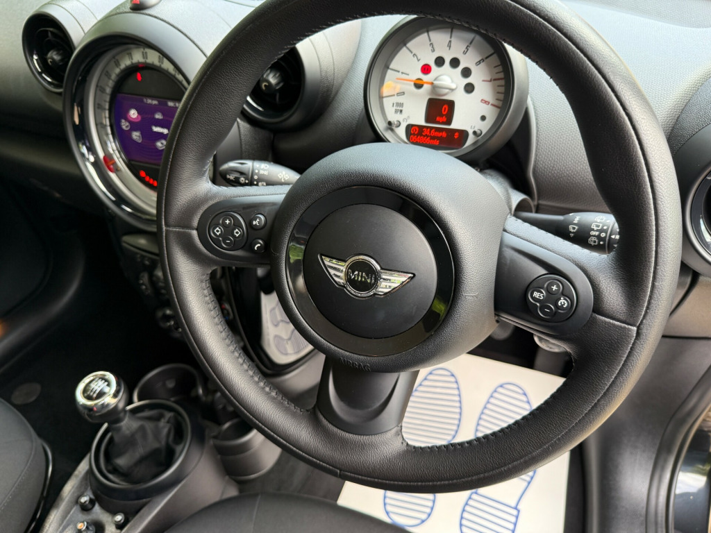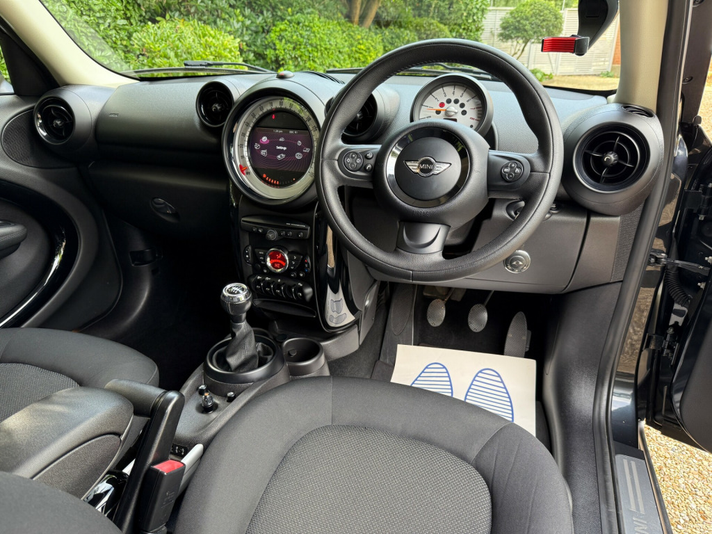 This 2014 Mini Countryman 1.6 One 5dr hatchback is the perfect city car, benefitting from having a recent Full service and a fresh MoT with under 65000 miles on the clock, powered by a petrol engine and boasting 5 spacious seats and 5 convenient doors, making it ideal for families or for a road trip with friends. The MOT is valid until 29/08/2026 and it is ULEZ compliant, giving you peace of mind when driving in the city. With only 1 previous registered keeper, this car is equipped with features such as brake fluid level warning light, brake pad wear indicator warning light, electric power steering, engine start/stop button, and an exterior temperature gauge, ensuring a safe and comfortable driving experience. Don't miss the chance to own this reliable and efficient car. We sold this car to the previous keeper so the car is well know to us! ake fluid level warning light, brake pad wear indicator warning light, electric power steering, engine start/stop button, exterior temperature gauge, oil level indicator, rear park distance control, run flat indicator, service interval indicator, auxiliary input socket, dab digital radio, radio boost + single slot cd, anti dazzle mirror, bike rack preparation, body colour bumpers, body colour roof, chrome bezels around rear lights and headlights, chrome door handles, chrome exhaust tailpipe, chrome plated trim on bottom edge of window, chrome-plated radiator grille surround, electric front and rear windows + anti trap + one touch, electrically adjustable door mirrors, follow me home headlights, heated door mirrors/heated windscreen washers, heated rear window with automatic switch off, metal look door sill finishers, rear wiper, silver roof rails, 2 cupholders in front centre console, 3 rear seats, 4 lashing points to secure luggage, 60/40 split sliding rear seats, adjustable headrests, boot light, centre console storage, chrome interior door handles, driver, driver/passenger sunvisors, front reading lights, front seat backrest storage nets, gear knob with chrome ring, gear/selector and handbrake in artificial leather, height/reach adjustable steering column, interior light, isofix child seat preparation, mini centre rail, rear grab handles, side sunvisor for driver, storage compartments in doors, vanity mirrors, 3-point rear centre seat belt, abs, automatic stability control (asc), cornering brake control (cbc), crash sensor - activates hazard/interior lighting + unlocks doors, driver and passenger airbags, driver and passenger side airbags, dsc - dynamic stability control, electronic brake force distribution, front head airbags, front seatbelt pretensioners with force limiters, hill start assist, passenger airbag deactivation system, tyre pressure warning, automatic door locking, electronic immobiliser, remote central locking + boot release, second remote key, thatcham cat.1 alarm, 2 keys, dab, parking sensors, stop/start technology, ulez compliant, cruise, 16'' Steel