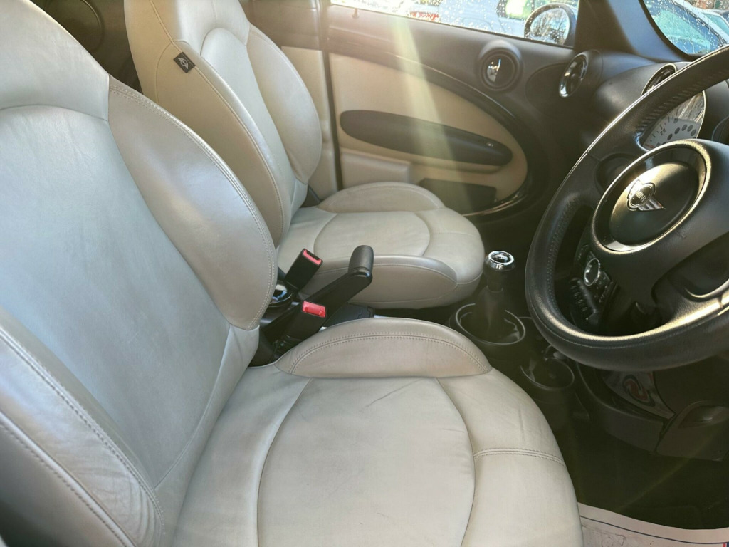 ******** SAME DAY FINANCE AVAILABLE ******** COMES WITH 03 MONTHS FREE WARRANTY ********* **********PERFECT EXAMPLE OF EXCELLENT CAR********* Another Perfect example of 2013 Mini Mini One 1.6 Countryman SE Special Edition 5 dr Hatchback / Estate , 5 Seats 127 bhp with Metallic Black Colour and Full Beige / Black Leather Interior which has just covered 98000 miles (warranted) . M A N U A L , 98000 Miles , 2013 MINI MINI ONE 1.6 COUNTRYMAN SE Special Edition 5dr ESTATE / HATCHBACK , 127 bhp , 5 Seats , 13 Reg , Metallic Black Colour , Excellent Condition , Full Beige / Black Leather Interior , Power Steering , Remote Central Locking , Adjustable Steering Column / Wheel , Front and Rear Head Restraints , Immobiliser ,Front and Rear Fog Lights , Traction Control , Iso-fix child seat , A I R C O N D I T I O N I N G / Climate Control , Anchor Points , A B S ,Body colour Bumpers , Multiple Air - bags , Electric Mirrors , Radio / CD Player , Alloy Wheels , Just been Fully Valeted , Full Service History + Old m.o.ts to Prove Mileage , 4 Good Tyres , M.O.T Till DECEMBER 2026 , Ideal First / Family Car , Very Clean in and out , Cheap to Run and insure , Cheap to Tax , Price for Quick sale . pper pack, 16in alloy wheels - 5-star single spoke light, air conditioning - automatic, seats - sports front, door ellipse and downtubes - piano black, interior light pack, chrome line exterior, anthracite headlining, front fog lights, dashboard trim - piano black, rain sensor and automatic headlight activation, steering wheel - 2-spoke leather, chrome line interior, storage compartment pack, white direction indicators lights, mirror caps in chrome plate, alloy wheels in silver, colour line - polar beige, interior world - carbon black, model badge deletion, leather gravity - polar beige, bluetooth telephone audio connection, on-board computer, comfort access system, headlights - adaptive, warning triangle and first aid kit, 17in alloy wheels - 5-star double spoke light, mirror caps in body colour, heated front windscreen, run-flat tyres, spoiler - roof, cloth-leather parallel lines - light tobacco, dashboard trim - dark silver, flat load floor, floor mats - velour, interior world - polar beige, salt pack, smokers pack, rear centre armrest, passenger seat height adjustable, luggage compartment - separating net, leather lounge - light coffee, sport suspension, 16in steel wheels, 3 seat rear bench, 3rd brake light, air conditioning - manual, airbags - driver, airbags - front passenger, airbags - front passenger with deactivation switch, airbags - front side, airbags - head, alarm - thatcham cat1, anti-lock braking system - abs, aux-in connection, basic bluetooth function with usb audio, bike rack preparation at rear, brake assist, brake pad wear indicator, cbc - cornering brake control, car jack, central bass hi-fi system, centre rail, child seat isofix attachment, cooled glovebox, crash sensor - fuel cut-off, crash sensor - hazard warning flashers and interior light, crash sensor - unlocking doors, cruise control, dab tuner, door handles - chrome plated, door handles - interior - chrome plated, door mirrors - electrically adjustable and heated, door sill finishers - metal look and model dependent lettering, dynamic stability control - dsc, ebd - electronic brake-force distribution, electric windows - front - one touch up and down, electronic power steering, embellisher at bottom edge of all windows - chrome plated, exhaust tailpipe - visible round right with chrome finisher, gearshift lever knob plastic with chrome ring, gearshift and selector lever gaiters in artificial leather, grab handles, halogen lights for low beam and high beam headlights, handbrake-lever grip plastic with central push button on underside of lever, headlight - beam-throw control electrical with manual adjustment, headlights - chrome bezels, headlights - follow me home, headlining - beige, headrests for all seats - manually adjustable, heated rear window with automatic deactivation, hill assist, interior mirror - mechanical anti-dazzle, interior lights - integrated into centre front headliner including two reading lights, lashing eyes in luggage compartment, luggage compartment - light, mini mobility system, microfilter, multi-link rear axle, non smoker package, orange indicators, pdc - park distance control - rear, personal profile functions for each remote key, radiator grille - black, radio boost cd, rev counter, roof rails - silver, seats - 40:20:40 split rear backrests, seats - 60:40 split for fore-aft base adjustment, seats - height adjustable drivers, second radio remote key, sills-bumper edges-wheel arches - black with model-specific bumper trims, single joint spring strut front axle, speedometer centred in instrument panel, steering column height and length adjustment, steering wheel - 2-spoke plastic, storage options in the trim panels of each front panel as well as centre console, sun visors with integrated vanity mirrors on drivers and passengers sides, tpws - tyre pressure warning system, tailgate release incorporated within mini badge, usb audio connection