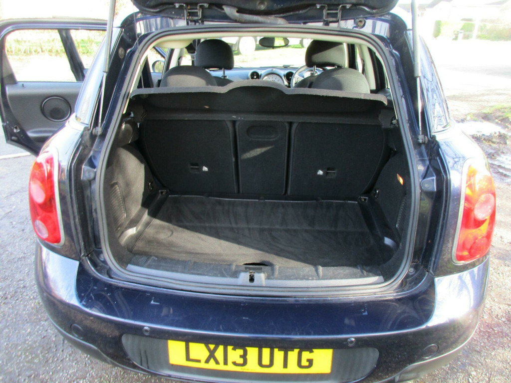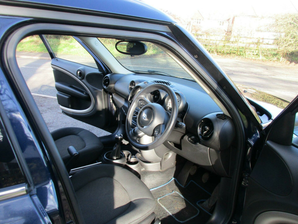 This 2013 MINI Countryman One offers a compelling blend of style and practicality, making it an excellent choice for those seeking a versatile vehicle. Powered by a 1.6 litre petrol engine and meeting Euro 6 emission standards, this model comes equipped with desirable features such as seat heating for both the driver and front passenger, ensuring comfort in all conditions. It also boasts 17 inch 5 Star Double Spoke light alloy wheels, a PEPPER Pack, and run flat tyres, all contributing to its refined presence. The 3 spoke sport leather steering wheel adds a touch of sporty sophistication to the interior.Beyond its appealing features, this MINI Countryman One stands out with its economical running costs. Achieving an impressive 47 miles per gallon, it offers excellent fuel economy, which is better than many similar vehicles. Furthermore, its low CO2 emissions and low insurance group rating indicate that it is a cost effective option to own and run, making it a smart and sensible choice for everyday driving. pper pack, 17in alloy wheels - 5-star double spoke light, air conditioning - automatic, seat heating for driver and front passenger, multifunction controls for steering wheel, 3-spoke sport leather steering wheel, door ellipse and downtubes - dark silver, interior light pack, flat load floor, front fog lights, rain sensor and automatic headlight activation, run-flat tyres, storage compartment pack, white direction indicators lights, alloy wheels in black, colour line - carbon black, interior world - carbon black, cloth cosmos - carbon black, 16in steel wheels, 3 seat rear bench, 3rd brake light, air conditioning - manual, airbags - driver, airbags - front passenger, airbags - front passenger with deactivation switch, airbags - front side, airbags - head, alarm - thatcham cat1, anti-lock braking system - abs, aux-in connection, basic bluetooth function with usb audio, bike rack preparation at rear, brake assist, brake pad wear indicator, cbc - cornering brake control, car jack, central bass hi-fi system, centre rail, child seat isofix attachment, cooled glovebox, crash sensor - fuel cut-off, crash sensor - hazard warning flashers and interior light, crash sensor - unlocking doors, cruise control, dab tuner, door handles - chrome plated, door handles - interior - chrome plated, door mirrors - electrically adjustable and heated, door sill finishers - metal look and model dependent lettering, dynamic stability control - dsc, ebd - electronic brake-force distribution, electric windows - front - one touch up and down, electronic power steering, embellisher at bottom edge of all windows - chrome plated, exhaust tailpipe - visible round right with chrome finisher, gearshift lever knob plastic with chrome ring, gearshift and selector lever gaiters in artificial leather, grab handles, halogen lights for low beam and high beam headlights, handbrake-lever grip plastic with central push button on underside of lever, headlight - beam-throw control electrical with manual adjustment, headlights - chrome bezels, headlights - follow me home, headlining - beige, headrests for all seats - manually adjustable, heated rear window with automatic deactivation, hill assist, interior mirror - mechanical anti-dazzle, interior lights - integrated into centre front headliner including two reading lights, lashing eyes in luggage compartment, luggage compartment - light, mini mobility system, microfilter, multi-link rear axle, non smoker package, orange indicators, pdc - park distance control - rear, personal profile functions for each remote key, radiator grille - black, radio boost cd, rev counter, roof rails - silver, seats - 40:20:40 split rear backrests, seats - 60:40 split for fore-aft base adjustment, seats - height adjustable drivers, second radio remote key, sills-bumper edges-wheel arches - black with model-specific bumper trims, single joint spring strut front axle, speedometer centred in instrument panel, steering column height and length adjustment, steering wheel - 2-spoke plastic, storage options in the trim panels of each front panel as well as centre console, sun visors with integrated vanity mirrors on drivers and passengers sides, tpws - tyre pressure warning system, tailgate release incorporated within mini badge, usb audio connection