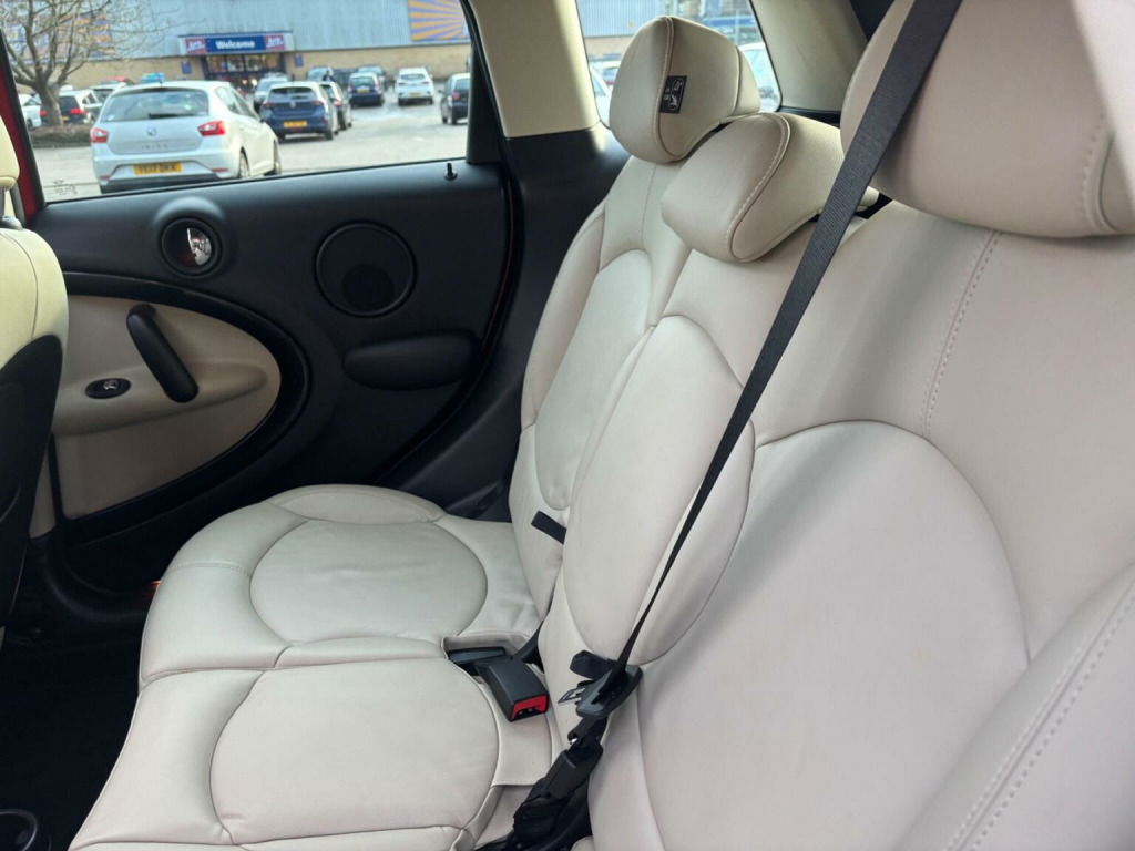 WE ARE PLEASED TO OFFER THIS HIGHLY DESIRABLE HIGH SPECIFICATION WELL MAINTAINED RARE FOUR WHEEL DRIVE AUTOMATIC MINI COUNTRYMAN 2.0 COOPER D ALL 4 FIVE DOOR + FINISHED IN THE BEST COLOUR OF BLAZING RED METALLIC PAINTWORK WITH A BLACK ROOF AND DOOR MIRROR CAPPINGS AND IS COMPLEMENTED WITH A POLAR BEIGE GRAVITY LEATHER UPHOLSTERY + ONLY 79,496 MILES HAS BEEN COVERED IN TOTAL + SERVICE HISTORY + JUST BEEN SERVICED + THE MOT IS TILL THE 11TH OF JANUARY 2027 + EXCELLENT CONDITION THROUGHOUT AND DRIVES SUPERB + 112 BHP MODEL + FULL COOPER SPECIFICATION WITH A HOST OF DESIRABLE FACTORY OPTIONS WHICH INCLUDES A PANORAMIC TILT N SLIDE GLASS SUNROOF / MINI SATELLITE NAVIGATION / FRONT SPORT SEATS / CHILI PACK / MINI CONNECTED / MEDIA PACK / CHROME LINE INTERIOR / FRONT CENTRE ARMREST / MULTI FUNCTION LEATHER 3-SPOKE LEATHER SPORTS STEERING WHEEL / HEATED FRONT SEATS / FLAT LOAD BOOT FLOOR / INTERIOR WORLD - CARBON BLACK / INTERIOR LIGHT PACKAGE / AUTO-DIMMING REAR VIEW MIRROR / VOICE CONTROL / STORAGE COMPARTMENT PACKAGE / FULL BLUETOOTH TELEPHONE PREPARATION WITH USB AUDIO / DARKENED REAR GLASS / 17 MULTI SPOKE UPGRADED ALLOY WHEELS / FULL ELECTRIC PACK PLUS MUCH MORE + HANDBOOK PACK + ANY TRIAL OR INSPECTION IS WELCOMED + HPI CLEAR WITH CERTIFICATE + SIX MONTHS NATIONWIDE WARRANTY IS INCLUDED + VIEWING IS ESSENTIAL TO APPRECIATE THIS MUCH SOUGHT AFTER EXAMPLE OF THIS POPULAR FOUR WHEEL DRIVE MODEL. We have been established in Baildon for over 20 years. All our vehicles are fully inspected, prepared and valeted. We are finance specialists. Part exchange is welcome. All major credit and debits accepted. Open 7 days. Our postcode is BD177EX.