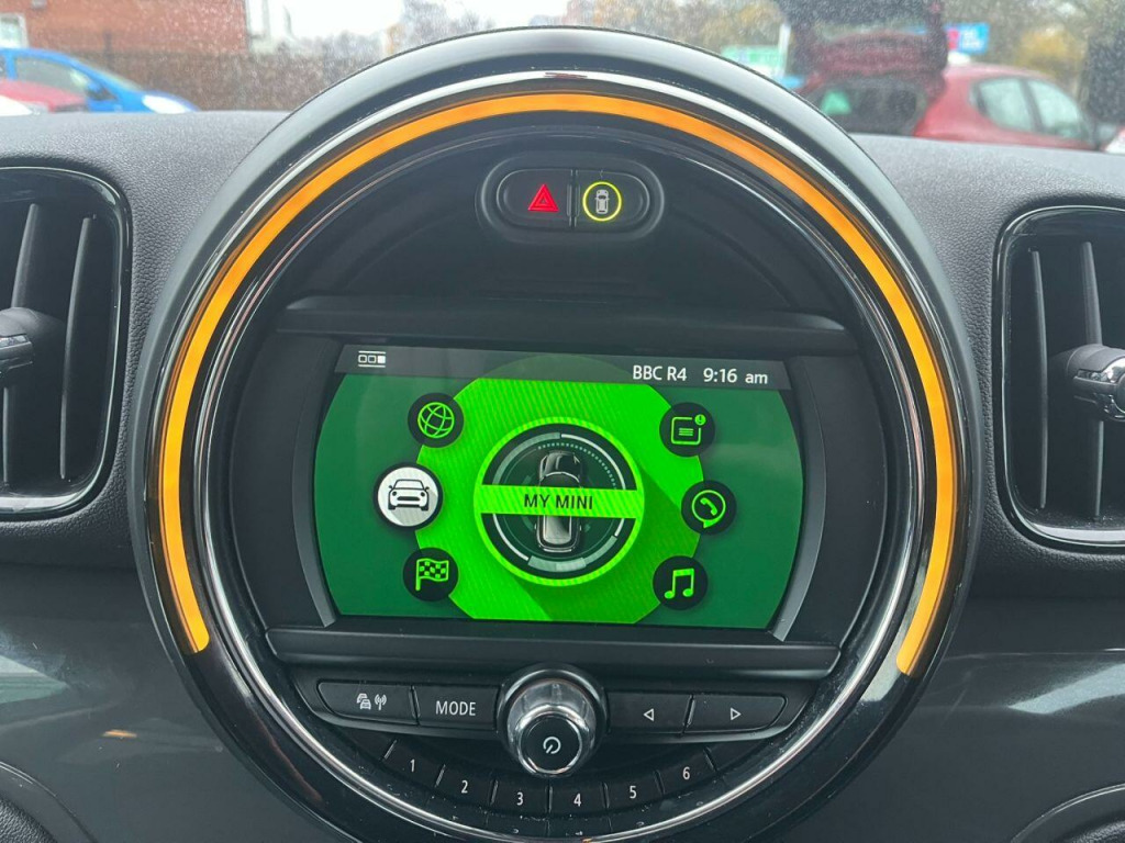. 12 Volt Socket in Front Centre Console, 16in Alloy Wheels - Revolite, 3 Point Seatbelts on all Seats, 3rd Brake Light, Air Conditioning - Manual, Airbags, Alarm and Immobiliser - Thatcham CAT 1, Anti-Lock Braking System - ABS, Body Coloured Fuel Filler Cap in Rear Right Side Panel, Brake System, Brand Logo Mini, CBC - Cornering Brake Control, Child Seat ISOFIX Attachment, Chrome Contents Exterior, Chrome Contents Interior, Circulating Stainless Steel Waist Seal Finishers, Colour Line - Carbon Black, Condition Based Service, Crash Sensor, Cruise Control with Brake Function, Cupholders - Two in Front Centre Console, DAB Tuner, Daytime Driving Lights, Door Sill Finishers - Metal Look and Model Dependent Lettering, Driving Dynamic Control Systems, Dynamic Brake Lights, Dynamic Stability Control - DSC, EBD - Electronic Brake-Force Distribution, Electric Windows, Electronic Power Steering, Electronic Vehicle Immobiliser, Exhaust Tailpipe - Left with Chrome Finisher, Exterior Mirrors - Aspheric on Drivers Side - Electrically Adjustable, Foldable Rear Backrest 40:20:40, Gear Knob - Plastic Grained Badge and Clasp High-Gloss, Gear Shift Recommendation, Gearshift-Selector Lever and Handbrake Lever Gaiters in Leatherette, Halogen Lights for Low Beam and High Beam Headlights, Headliner, Headrests - All Seats, Heat Protection - Sun Protection Glazing, Heated Front Windscreen Washer Jets, Heated Rear Window, Heated Windscreen Washer Jets, Incorrect Fuelling Prevention, Instrument Cluster, Interior Light Pack, Interior Mirror - Mechanical Anti-Dazzle, Interior Trim - Hazy Grey, Lashing Eyes in Luggage Compartment, Locking System with Central Locking, Mechanical Seat Adjustment for Drivers Seat and Passengers Seat, MINI Excitement Pack, Mirror Caps in Body Colour, Model Logo Countryman in Chrome, Multifunction Controls for Steering Wheel, Navigation Pack, On-Board Computer, Passenger Seat Height Adjustable, PDC - Park Distance Control - Rear, Pedals - Rubberised Pad, Personal Profile, Radiator Grille - Chrome Border and Three Slats in Black, Radio MINI, Rain Sensor and Automatic Headlight Activation, Rear Fog Light, Rear Lights - LED, Rear Window Wiper, Roof in Body Colour, Roof Rails - Silver, Roof Spoiler Painted in Roof Colour, Runflat Indicator, Security Locking Wheel Bolts, Side Scuttles Black with Integrated Turn Indicator, Sills - Bumper Edges - Wheel Arch Cover in Black Band in Matt Black, Single-Tone Fanfare, Speakers - 2 Central Bass Speakers under the Front Seats, Speakers - 4 Broadband Speakers in the Trim Panels of Each Front and Rear Door, Sport Leather Steering Wheel, Start-Stop Toggle including Keyless Go, Steering Column Adjustment - Infinitely Variable in Height and Length, Storage Options, Tailgate Gas Struts Assist When Opening and Holding In An Opened Position, Tailgate Handle - High Gloss Black, Tool Kit in Luggage Compartment, Tyre Pressure Indicator, Visual Boost Radio, White Indicators, Firework Cloth - Carbon Black, Moonwalk Grey, Parking Assistant, Rear View Camera, Tyre Repair Kit.