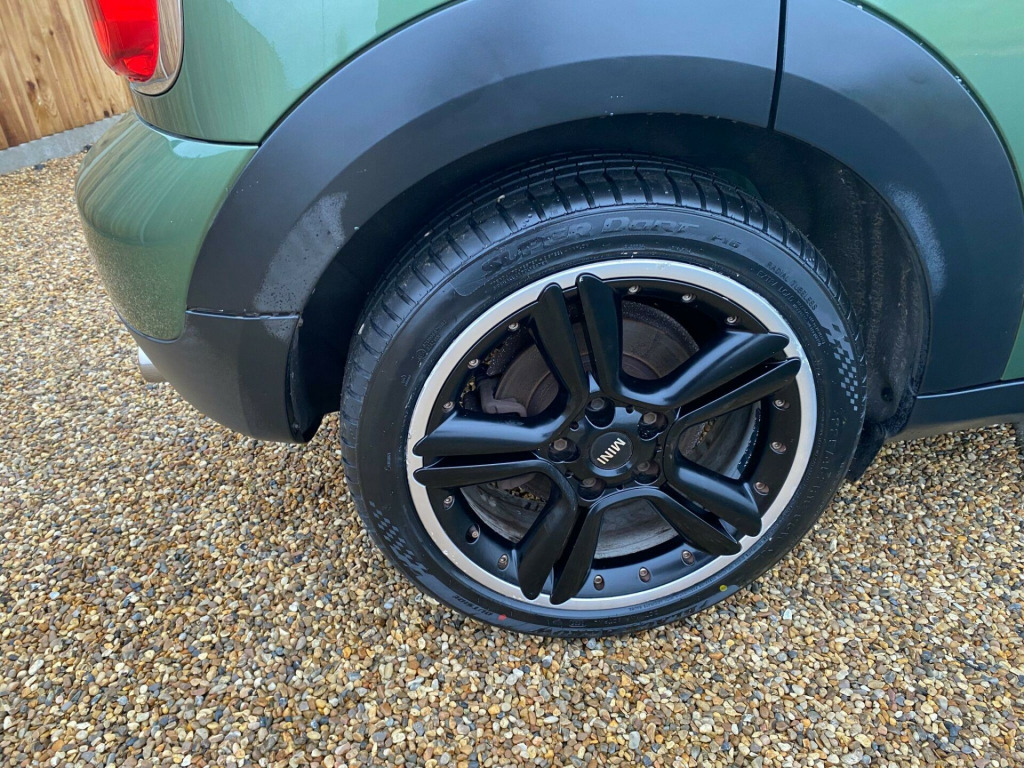 . 16in Alloy Wheels - 5-Star Air Spoke, 3rd Brake Light, ASC+T - Automatic Stability Control and Traction, Air Conditioning - Manual, Airbags - Driver, Airbags - Front Passenger, Airbags - Front Passenger with Deactivation Switch, Airbags - Front Side, Airbags - Head, Alarm - Thatcham CAT1, Anti-Lock Braking System - ABS, Aux-In Connection, Basic Bluetooth Function with USB Audio, Bike Rack Preparation at Rear, Brake Assist, Brake Pad Wear Indicator, CBC - Cornering Brake Control, Central Bass Hi-Fi System, Central Locking - Activated At 10mph, Central Locking - Remote, Centre Rail, Child Seat ISOFIX Attachment, Cooled Glovebox, Cupholders - Two in Front, DAB Tuner, Daytime Running Lights - LED, Door Handles - Chrome Plated, Door Handles - Interior - Chrome Plated, Door Mirrors - Electrically Adjustable and Heated, Dynamic Stability Control - DSC, EBD - Electronic Brake-Force Distribution, Electric Windows - One Touch Up and Down Front and Rear, Electronic Power Steering, Frame Chrome-Plated Radiator-Grille Bars Silver, Front Fog Lights - LED, Grab Handles, Halogen Lights for Low Beam and High Beam Headlights, Headlight - Beam-Throw Control Electrical with Manual Adjustment, Headlights - Chrome Bezels, Headlights - Follow Me Home, Headlining - Beige, Heated Front Windscreen Washer Jets, Hill Assist, Interior World - Carbon Black, Lashing Eyes in Luggage Compartment, MINI Mobility System, Microfilter, Mirror Caps in Body Colour, PDC - Park Distance Control - Rear, Passenger Seat Height Adjustable, Piano Black Exterior Trim, Radio BOOST CD, Roof Rails - Silver, Roof in Body Colour, Seats - 40:20:40 Split Rear Backrests, Seats - Height Adjustable Front, Second Radio Remote Key, Security Locking Wheel Bolts, Side Scuttles with Integrated Indicators, Start-Stop Button, Steering Column Height and Length Adjustment, Sun Visors with Integrated Vanity Mirrors on Drivers and Passengers Sides, TPWS - Tyre Pressure Warning System.